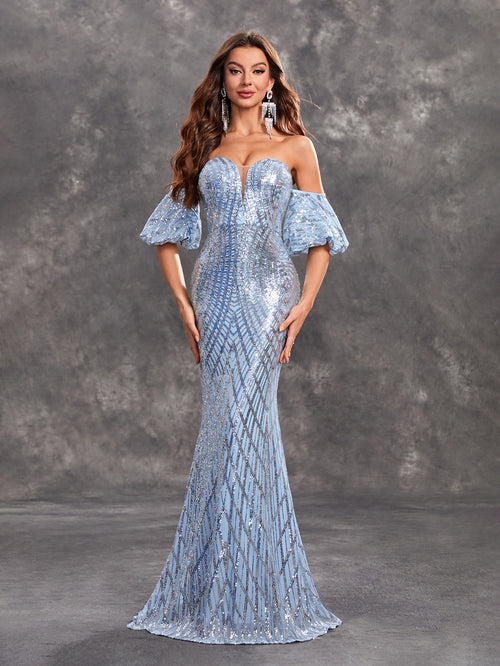 Large Ruffled Chest Wrapped off Shoulder Dress Hip Wrapped Split Evening Dress -