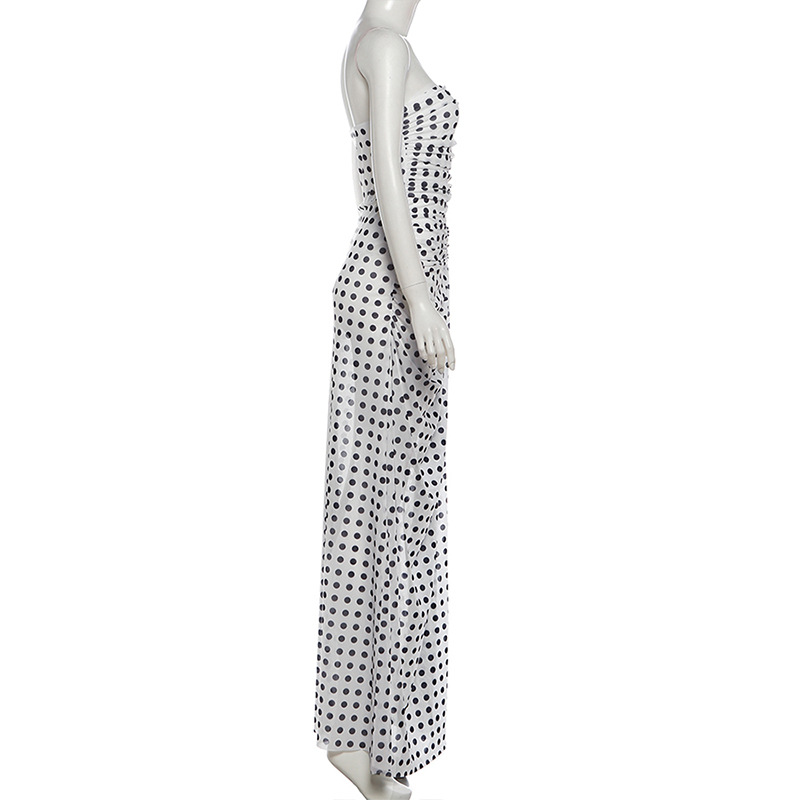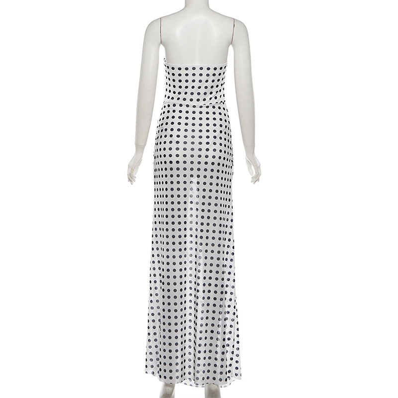 Autumn Winter Women Clothing Sexy Slim Sleeveless Tube Top Backless Slit Polka Dot Dress