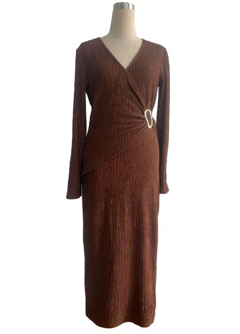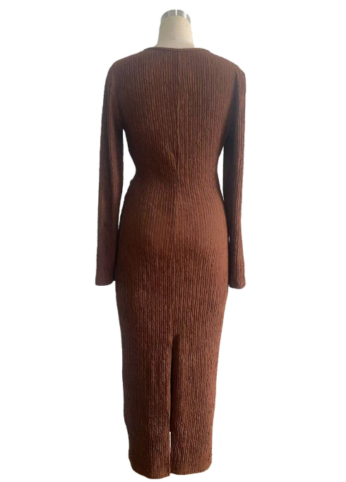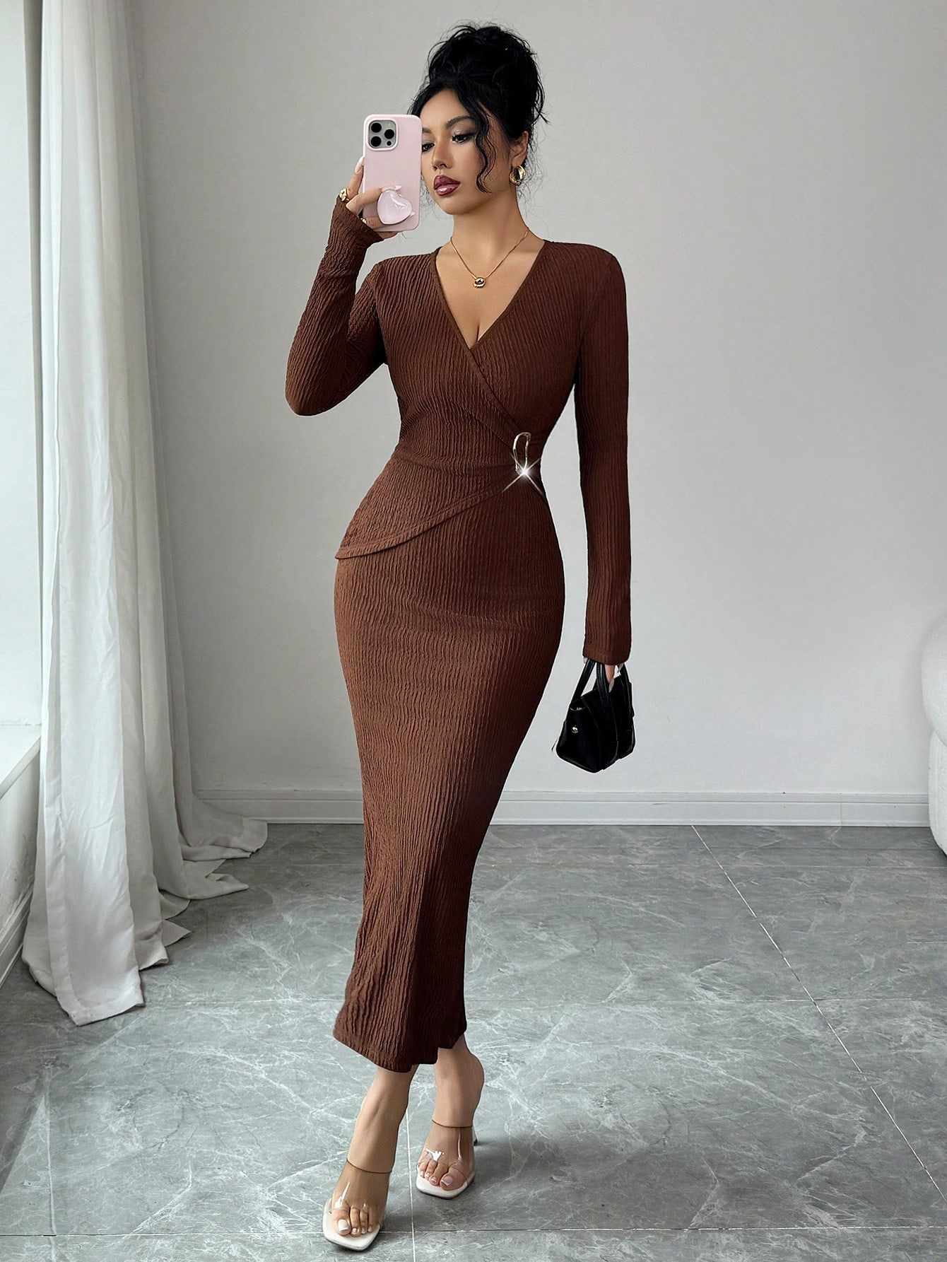 Cross Collar Knitted Texture Solid Color Slim Slimming Dress Women Winter