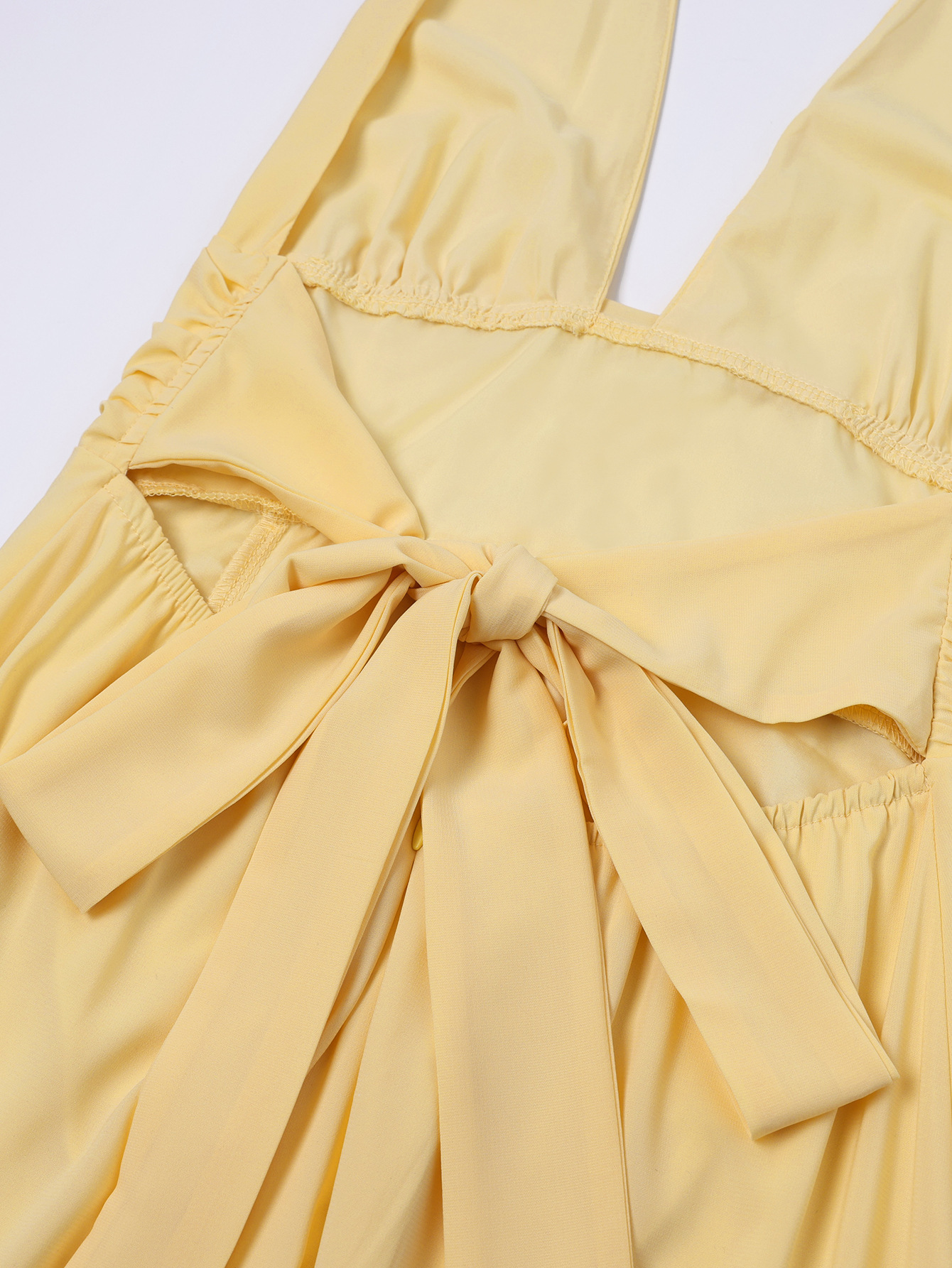 Elegant Halter Lace up Chiffon Dress Sexy Sexy Deep V Plunge neck Backless Slit Formal Dress Maxi Dress