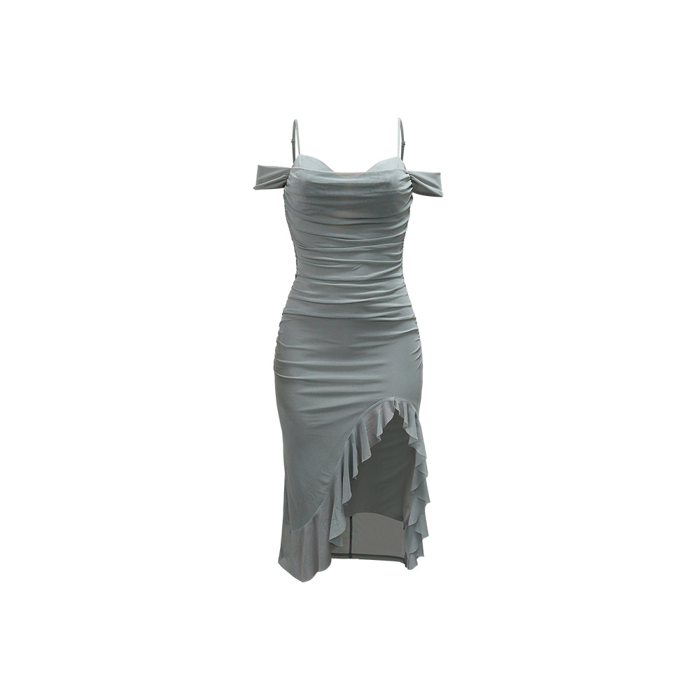 Ruffled Split Sexy Cami Dress Solid Color Dress Maxi Dress Women Clothing