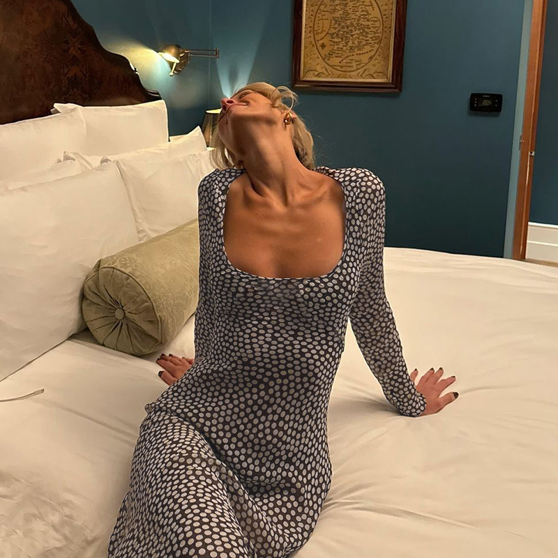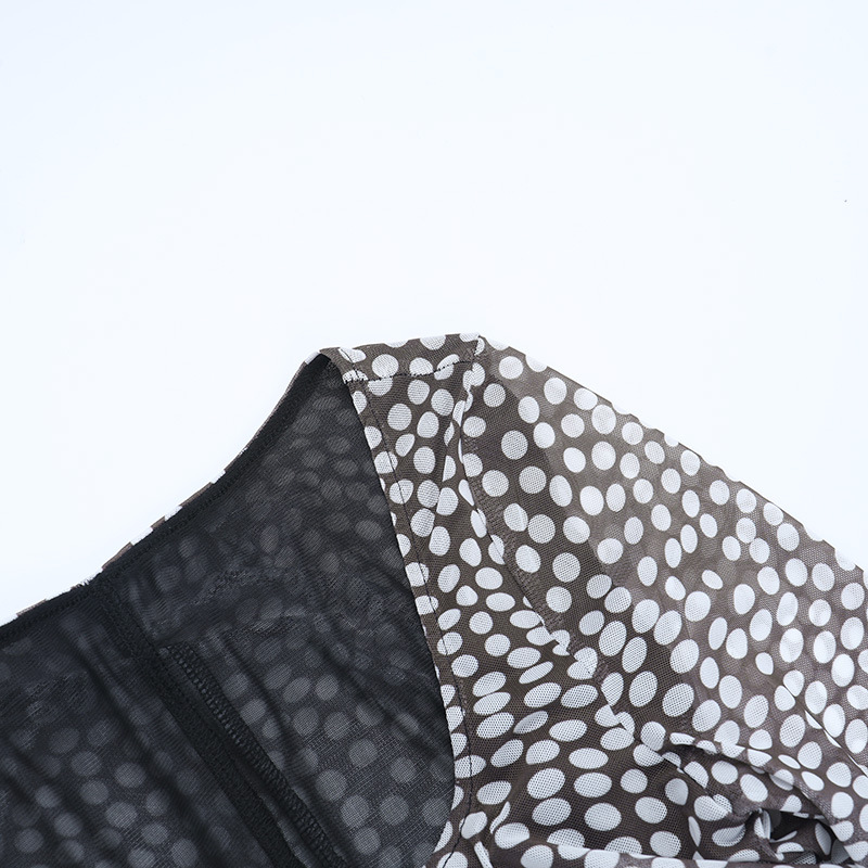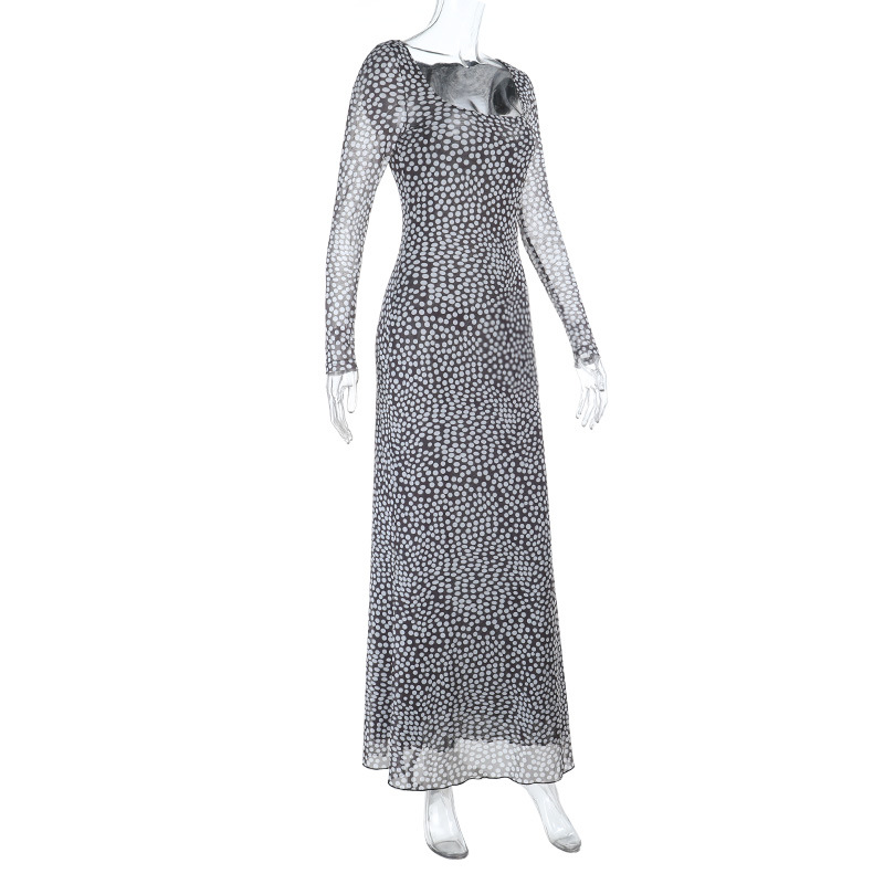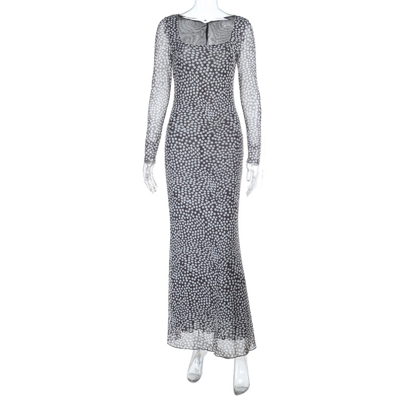 Sexy Square Neck Polka Dot Dress Autumn Winter Elegant Slim Fit Long Sleeve Dress