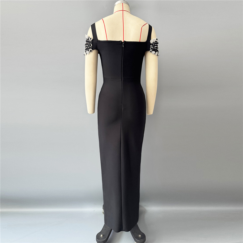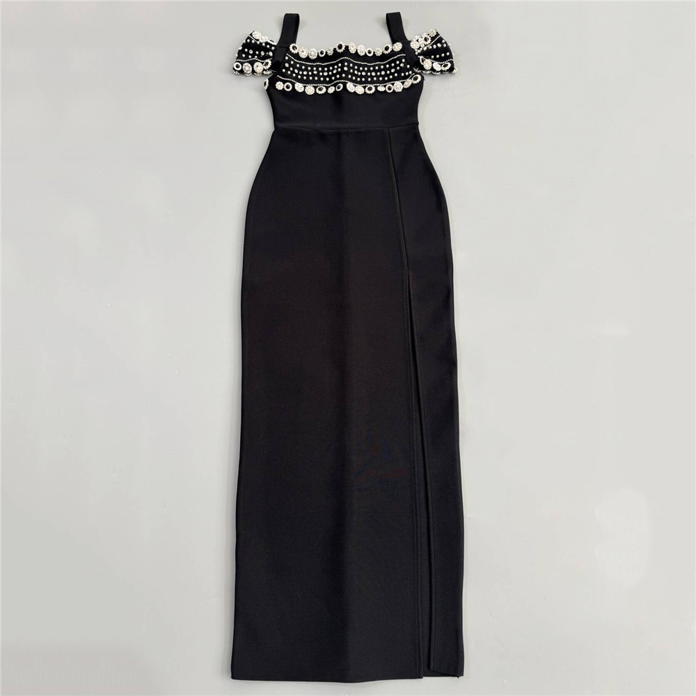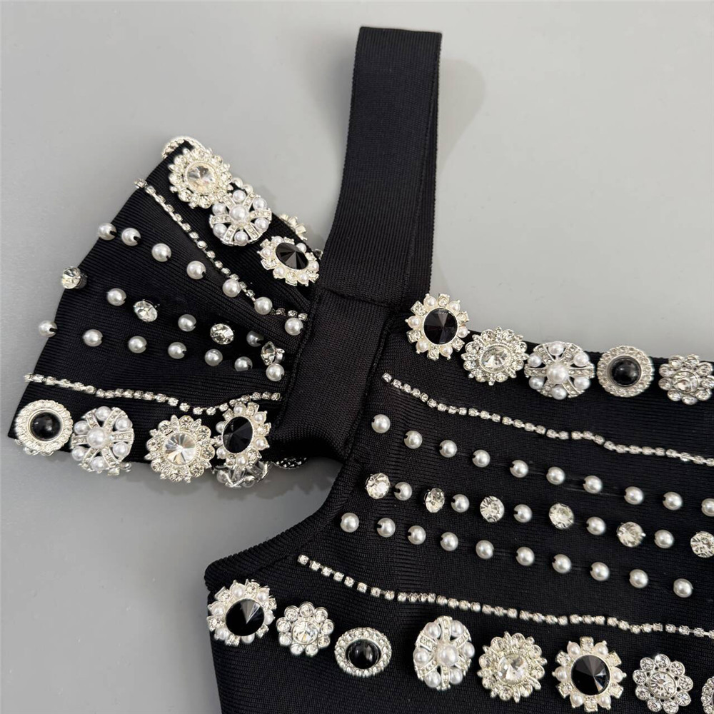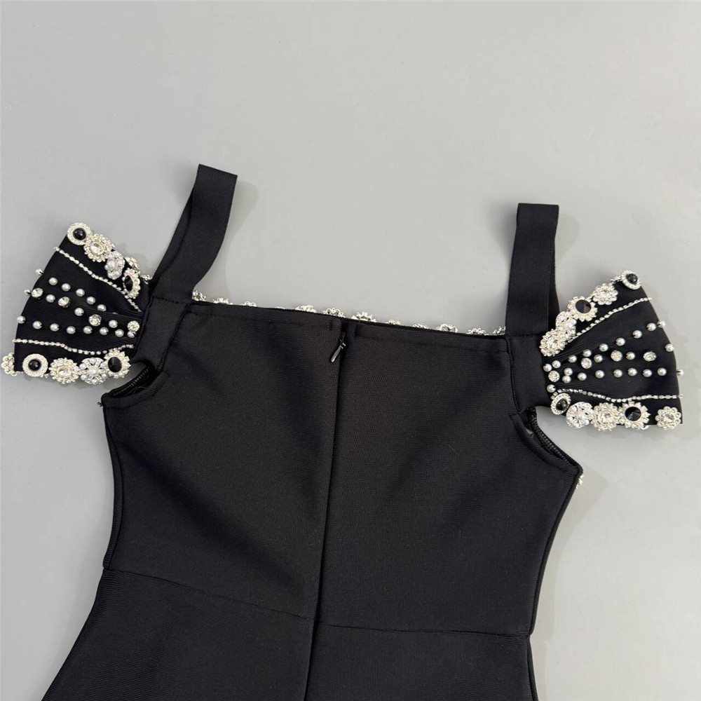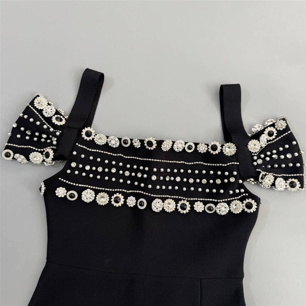 Sexy Strap Handmade Beads Rhinestones Bandage One Piece Dress Ladies Party Party Evening Dress