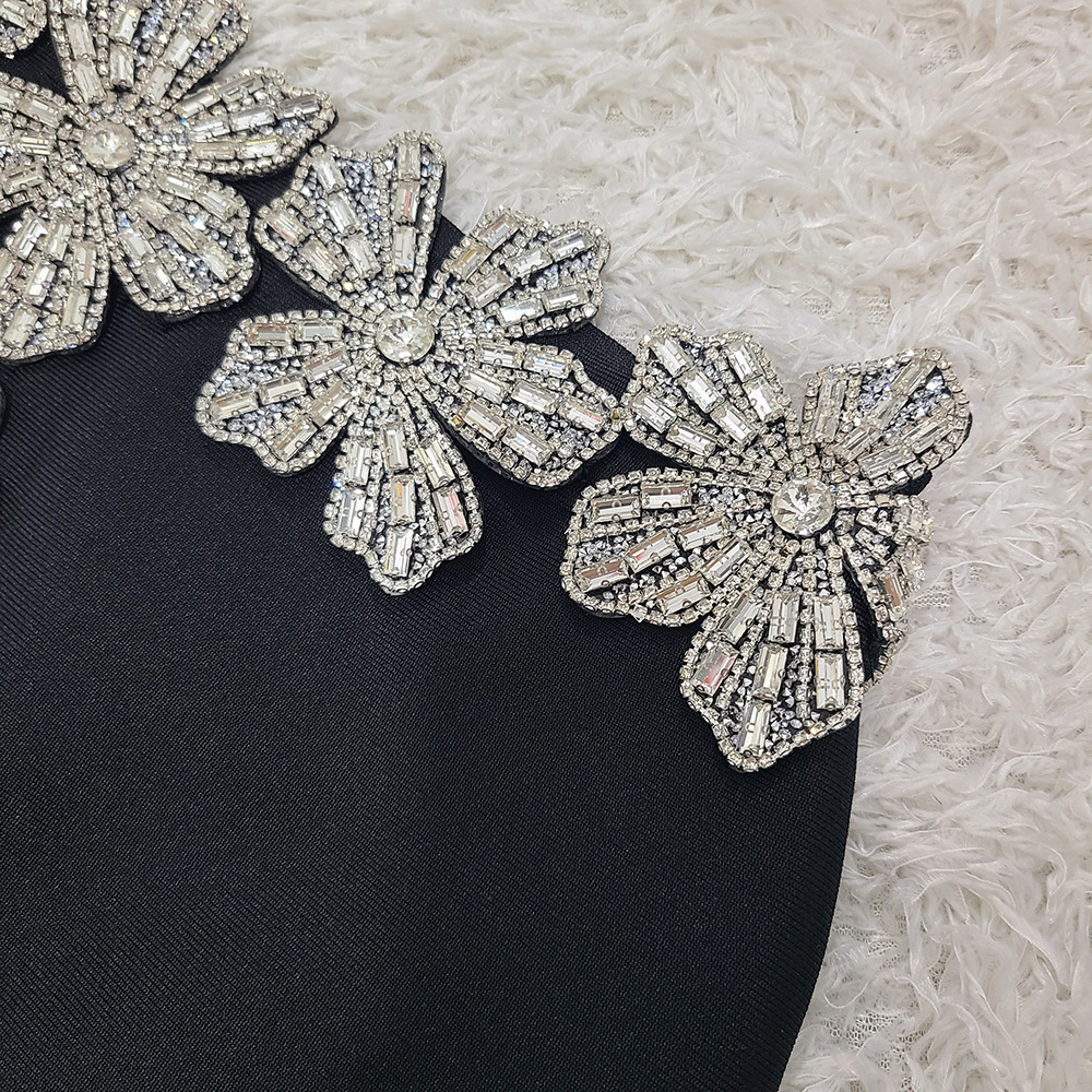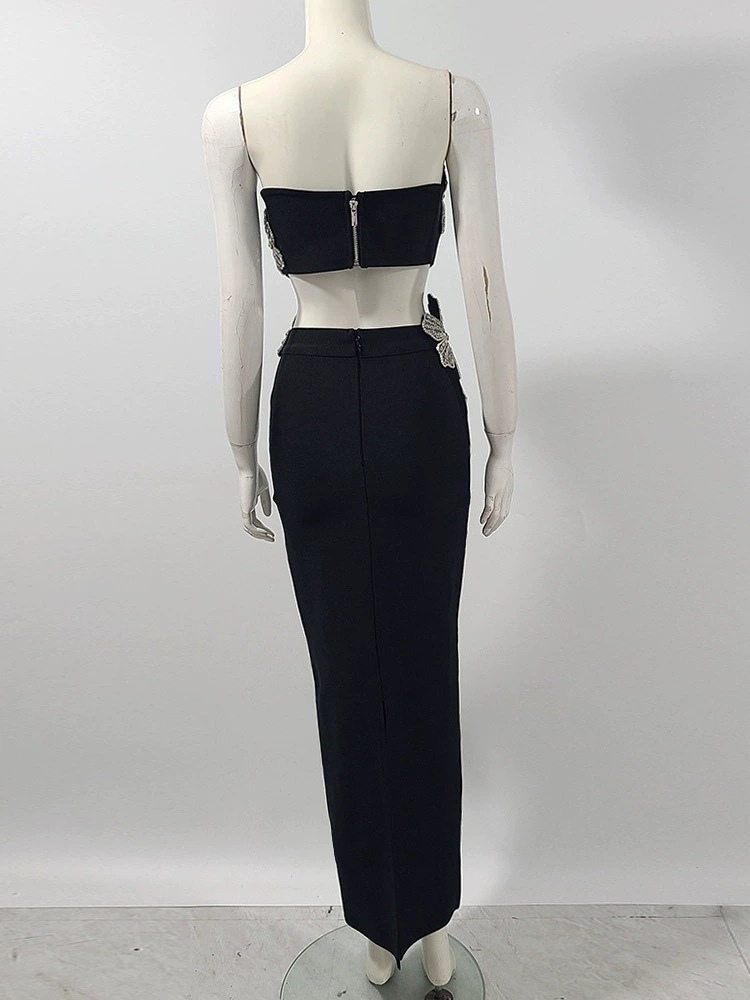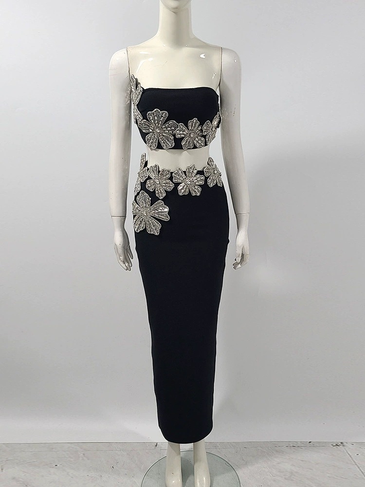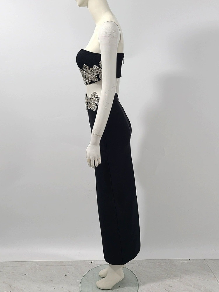 Summer Heavy Industry Light Diamond Floral Decoration High Sense Slim Fit Skirt Two Piece Sets Women