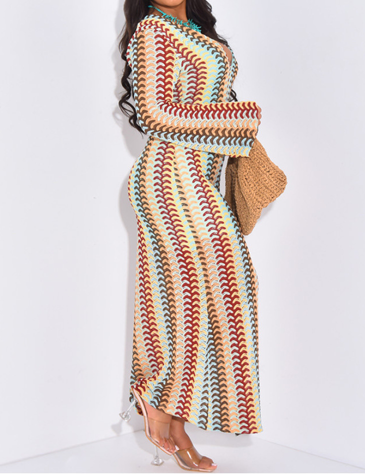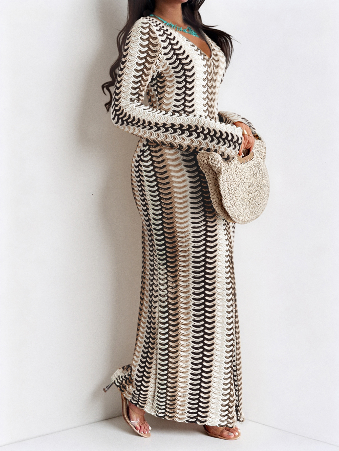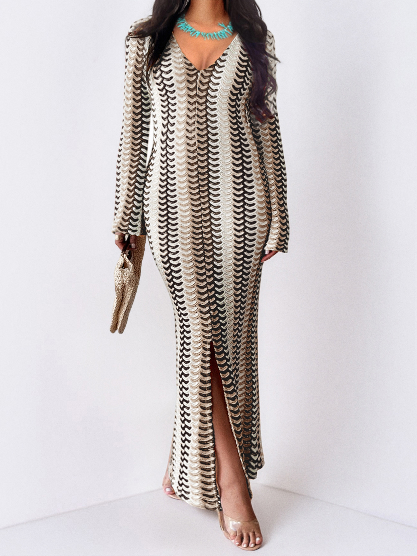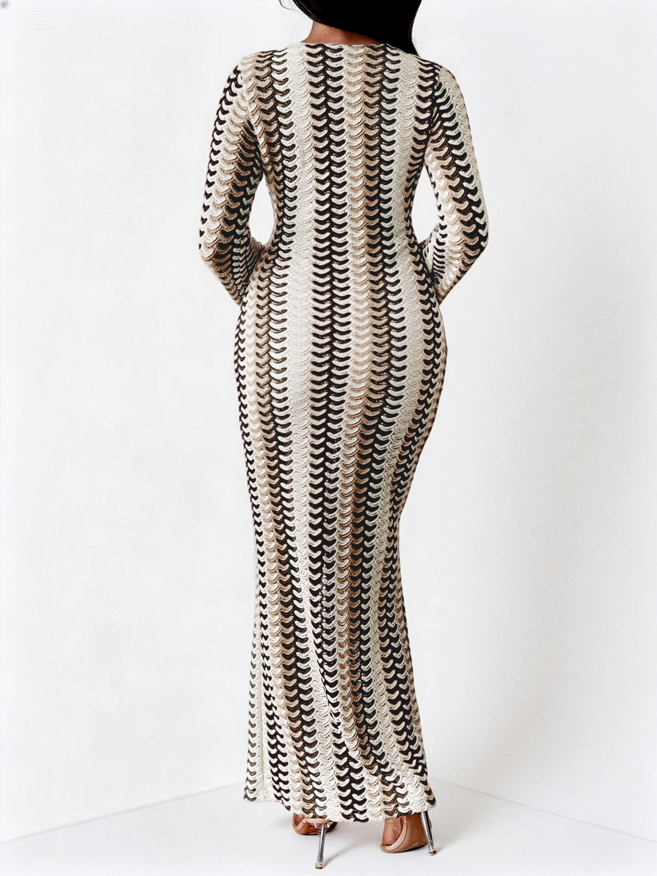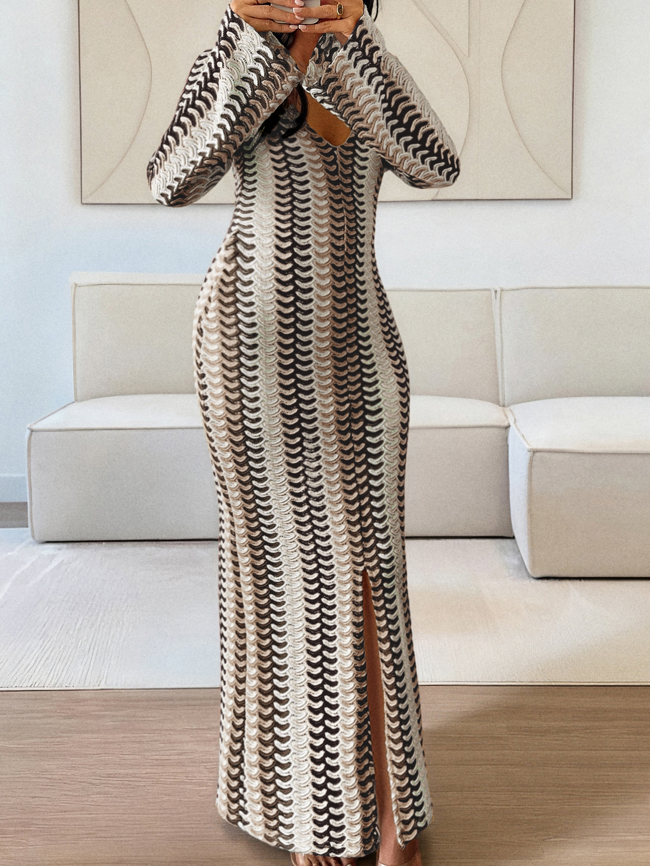 Vacation Elegant Long Sleeve Narrow Maxi Dress Women Clothing Autumn Winter