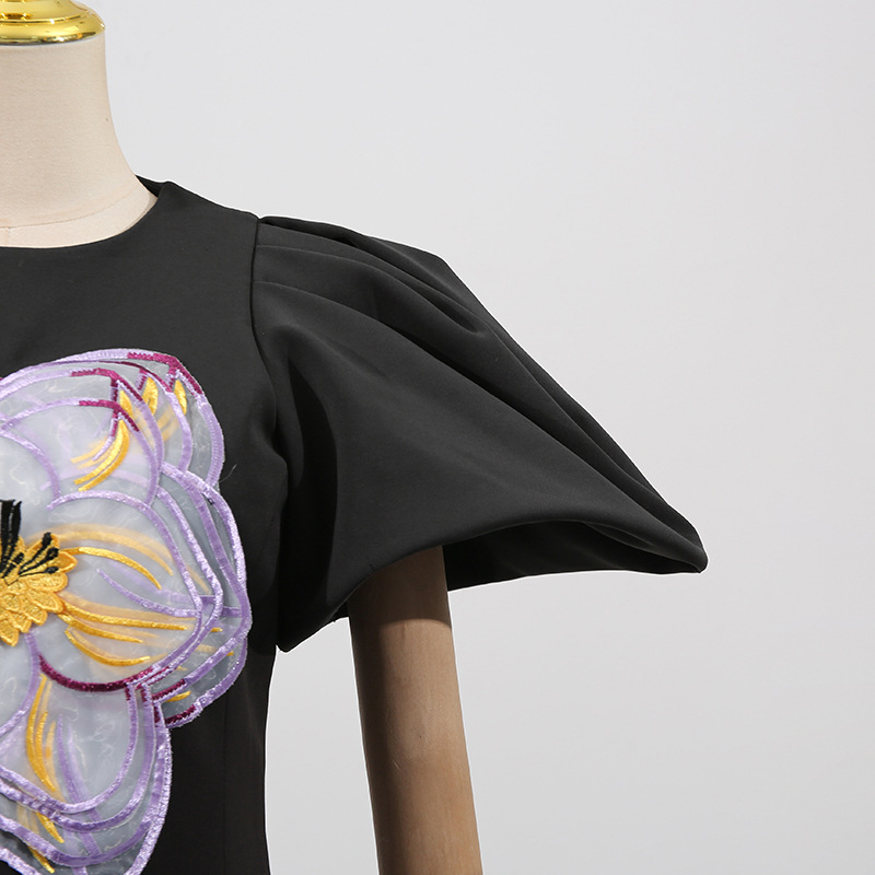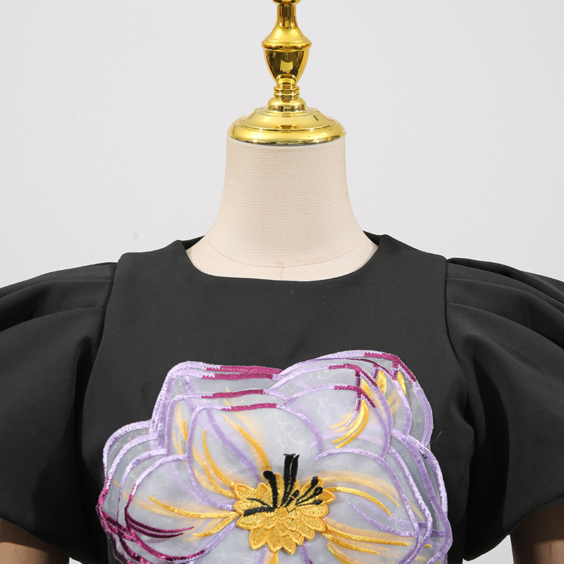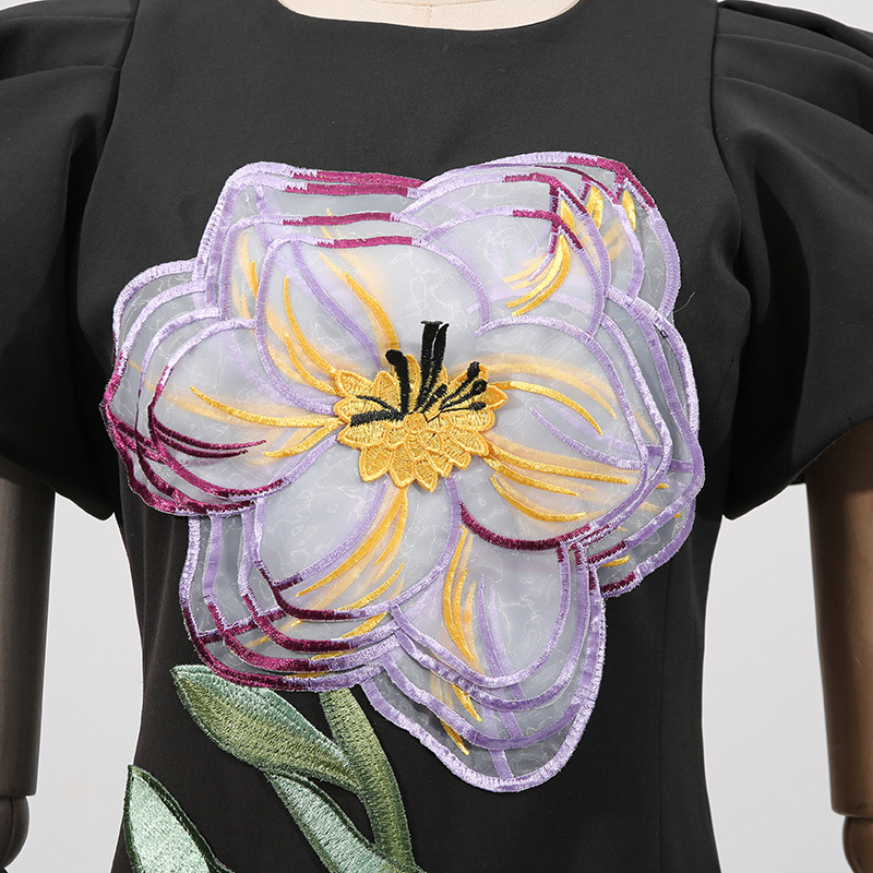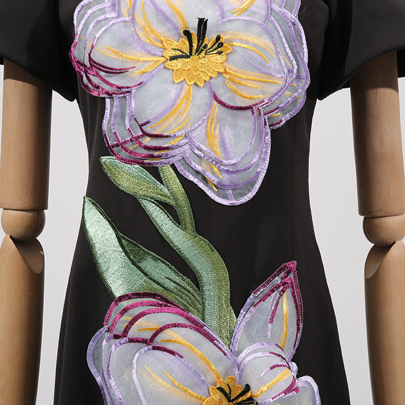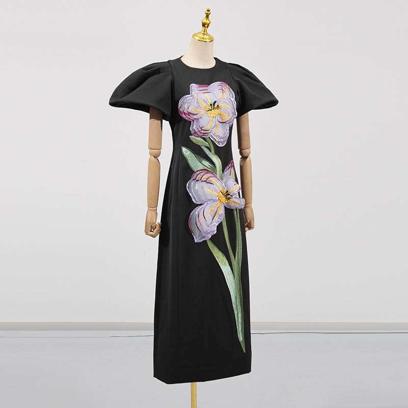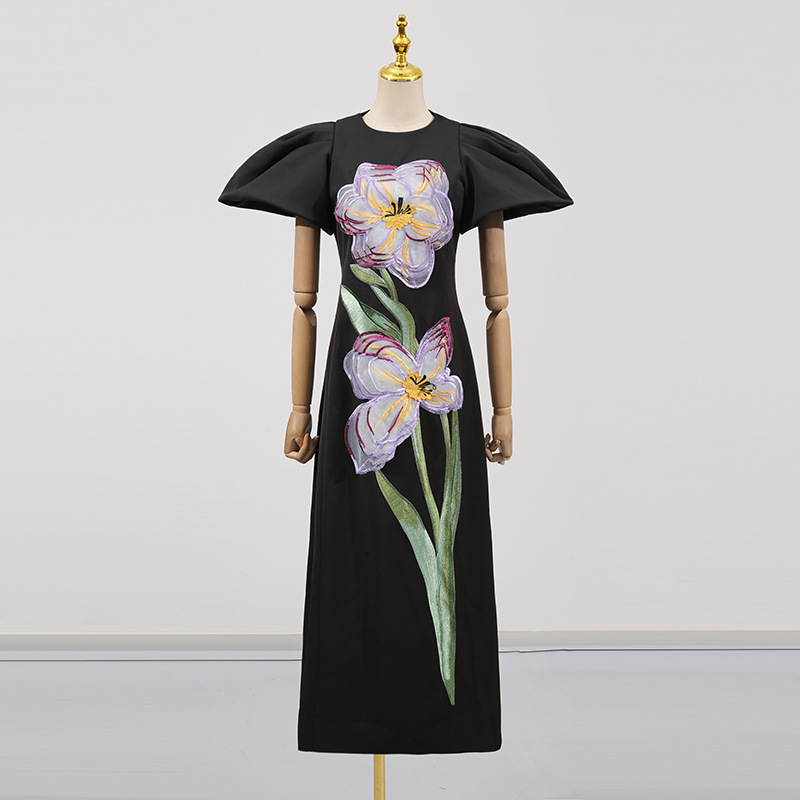 Vietnam Elegant Graceful Maxi Dress Summer Patchwork Floral Puff Sleeve Slim Fit Slimming Dress Women