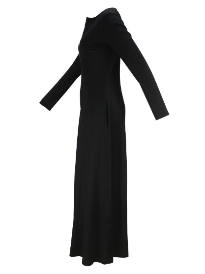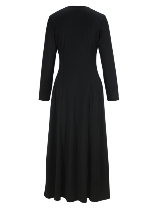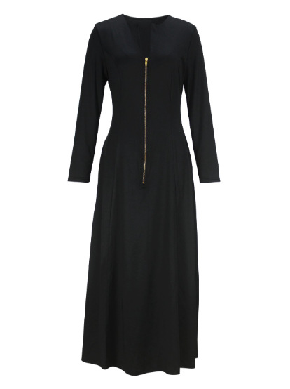 Women Clothing A line Dress round Neck Long Sleeve Zipper Pocket Maxi Dress Simple Elegant