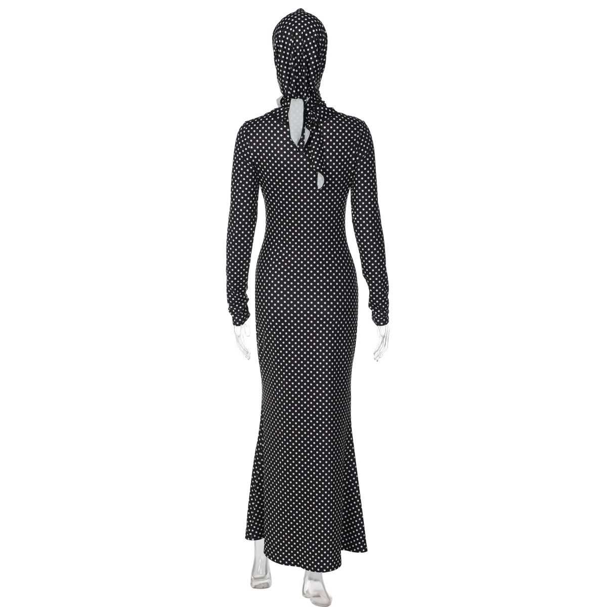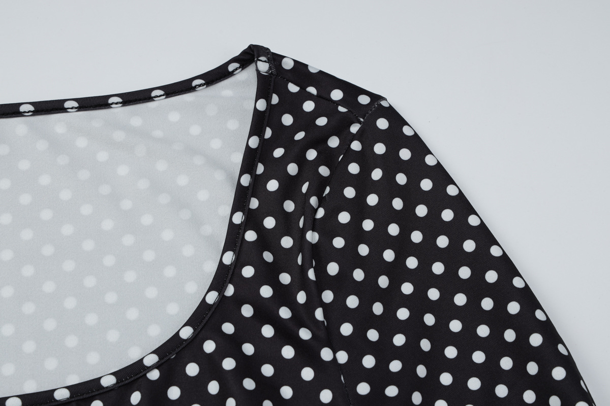 Women Clothing Autumn Winter Printed Elegant Slim Polka Dot Long Sleeve Dress
