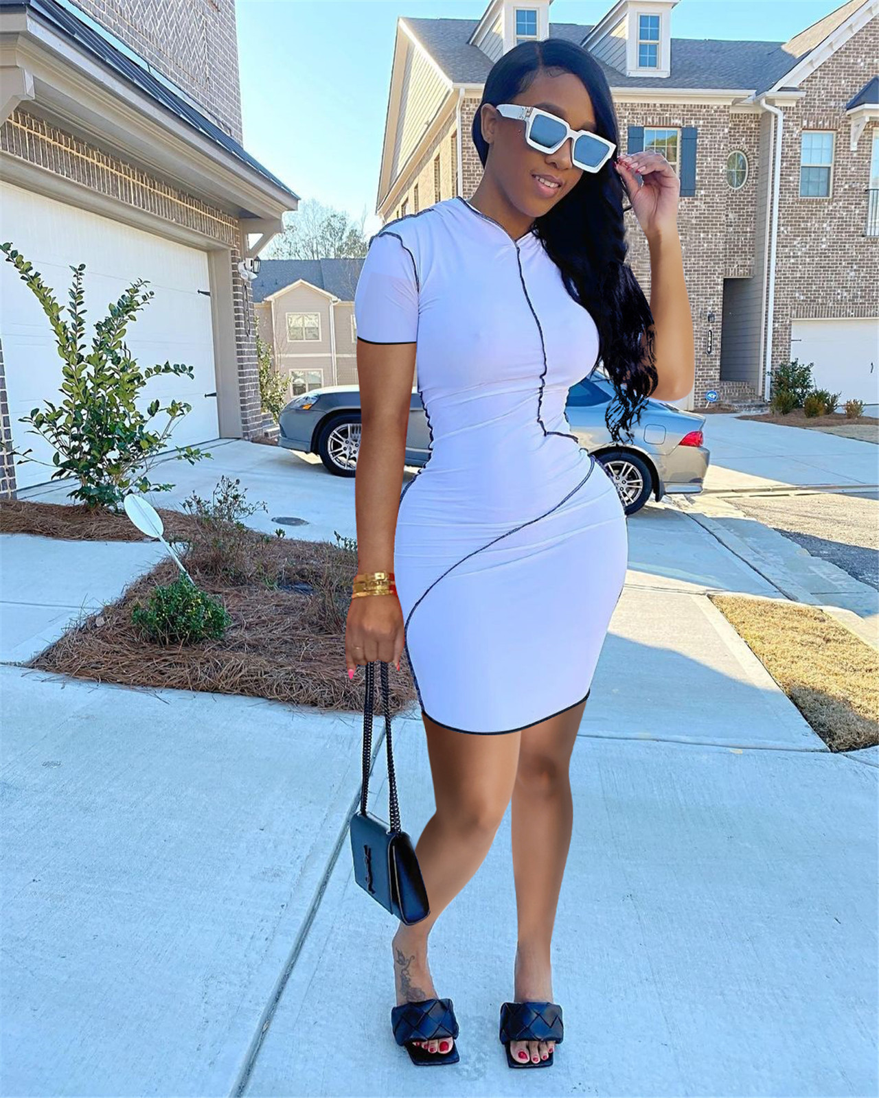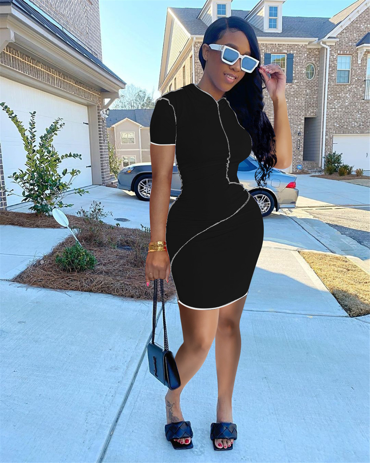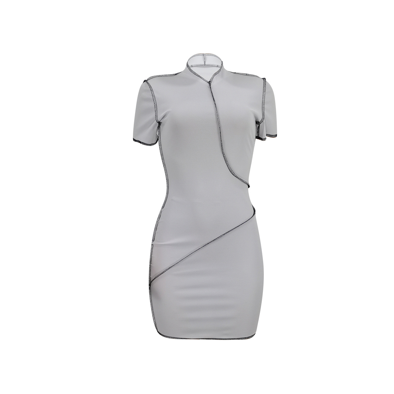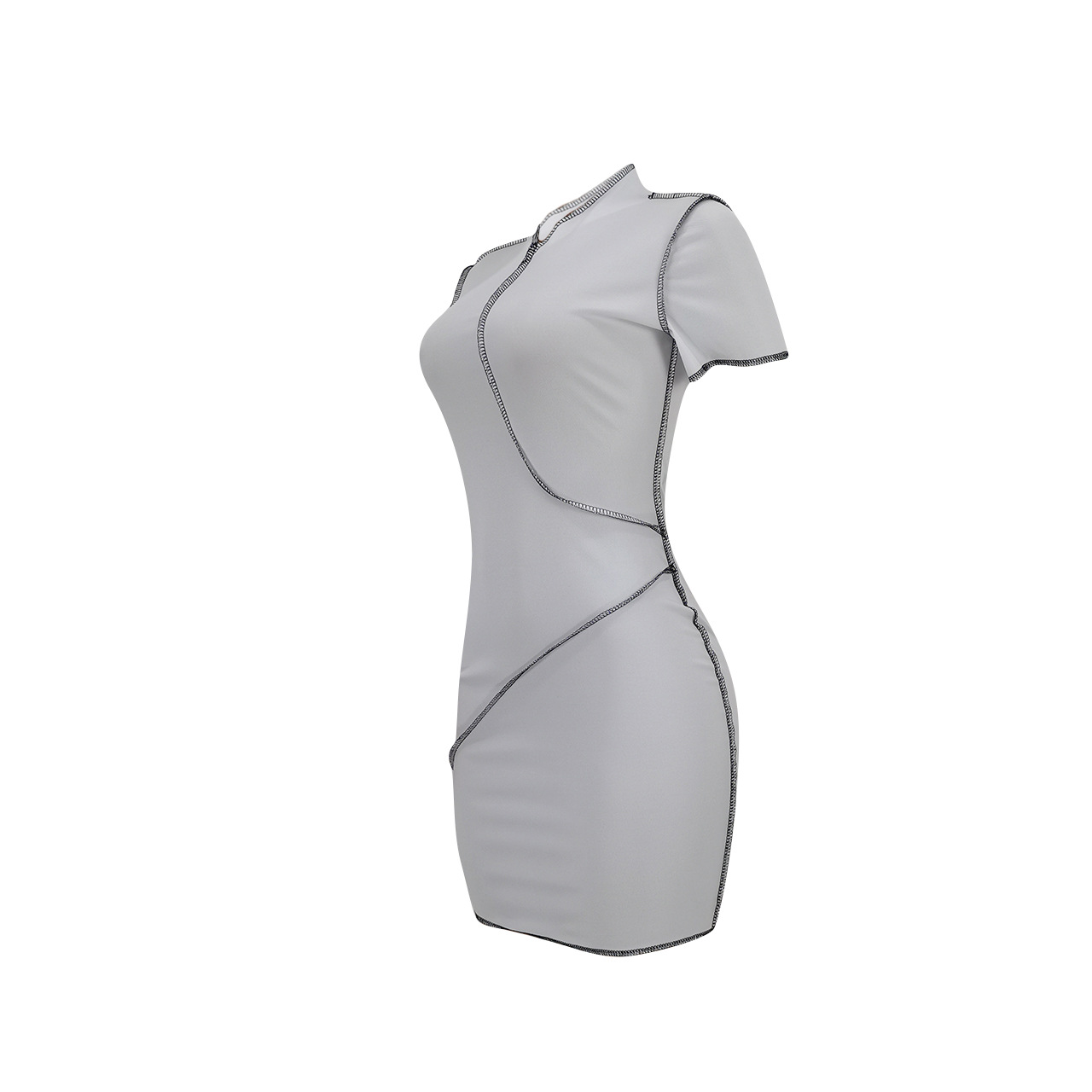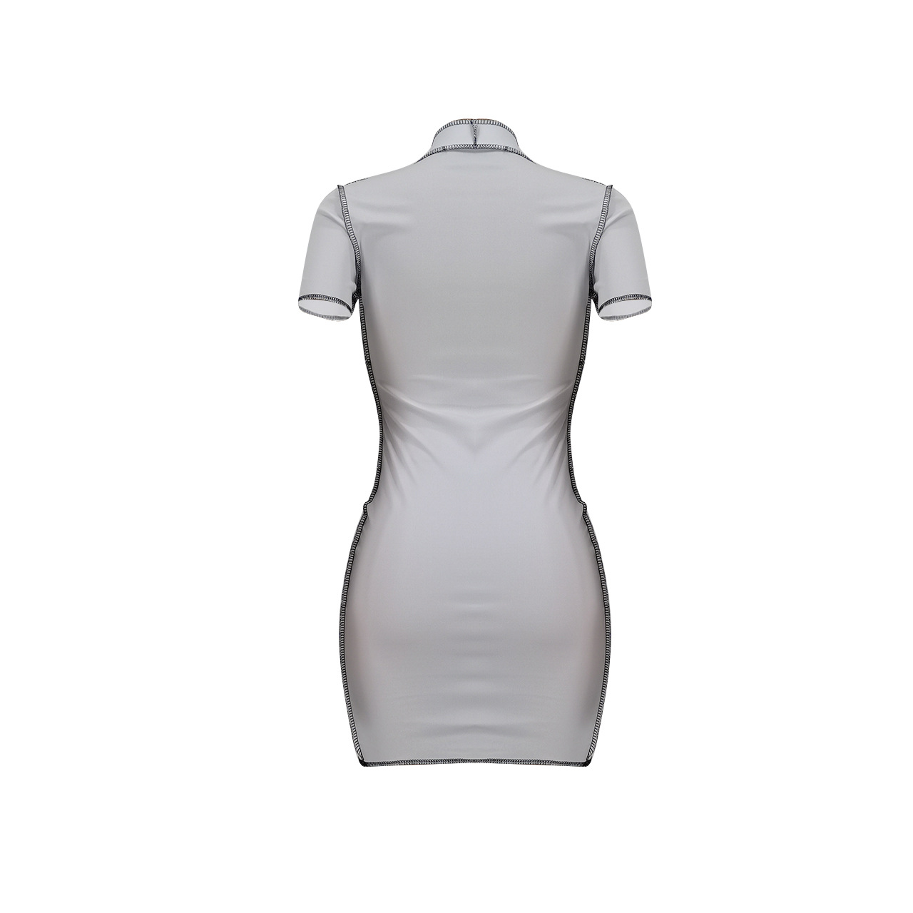 Vestido corto ajustado de color liso con cuello alto y manga larga de 7Fall