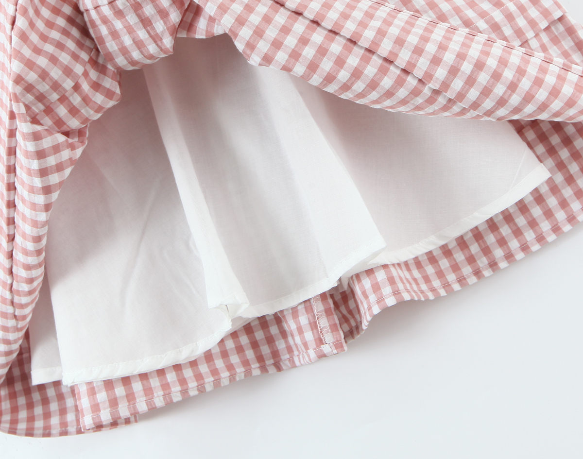 Women Clothing Spring Sweet Youthful Short Slim Plaid Waist Tight A line Dress
