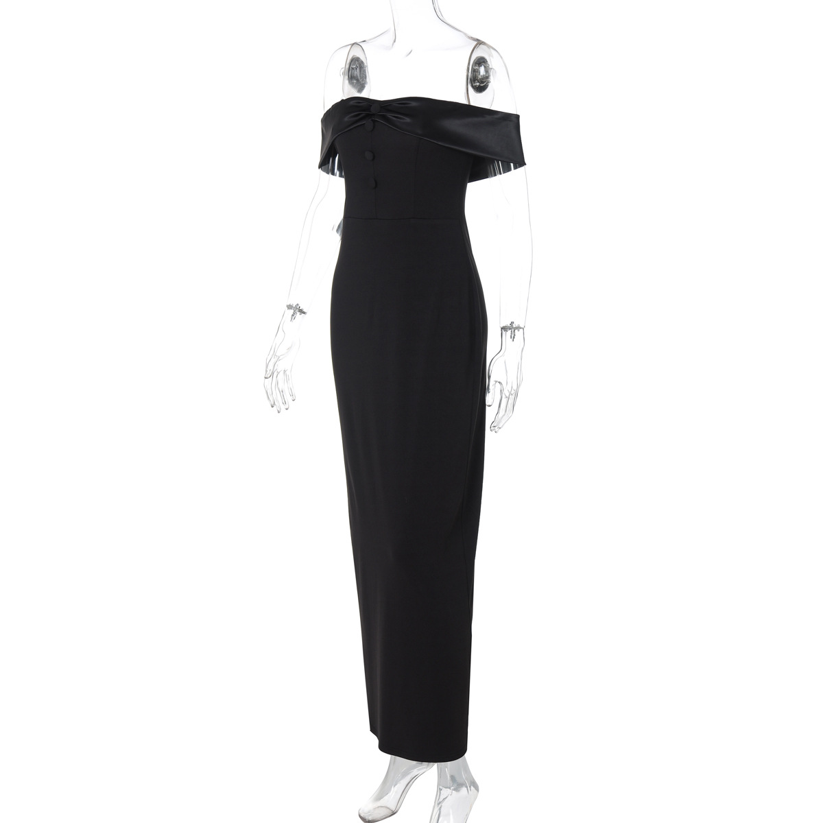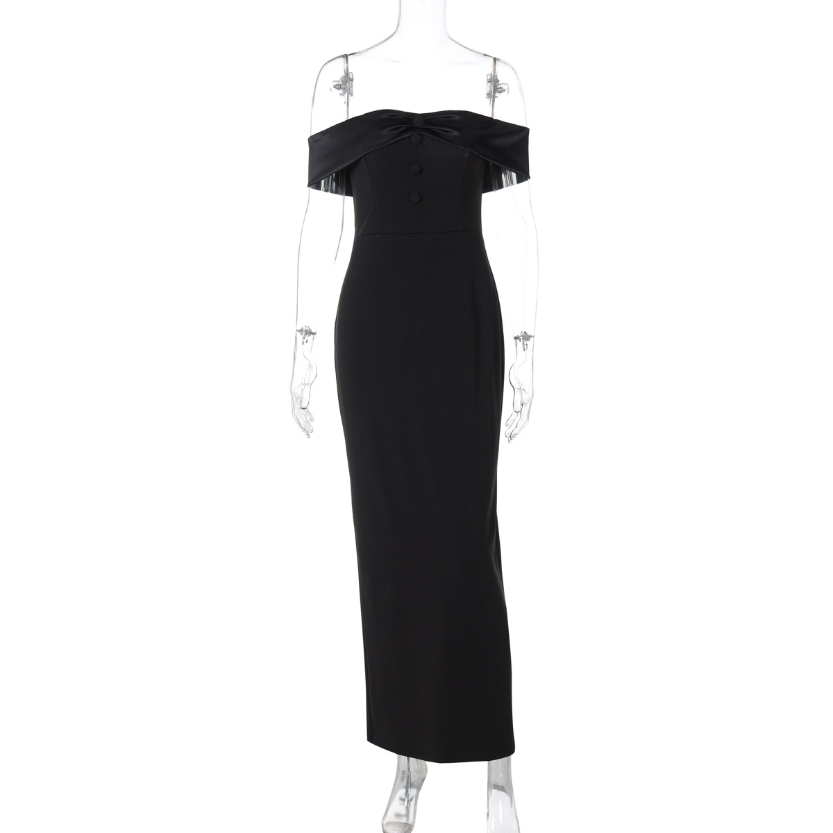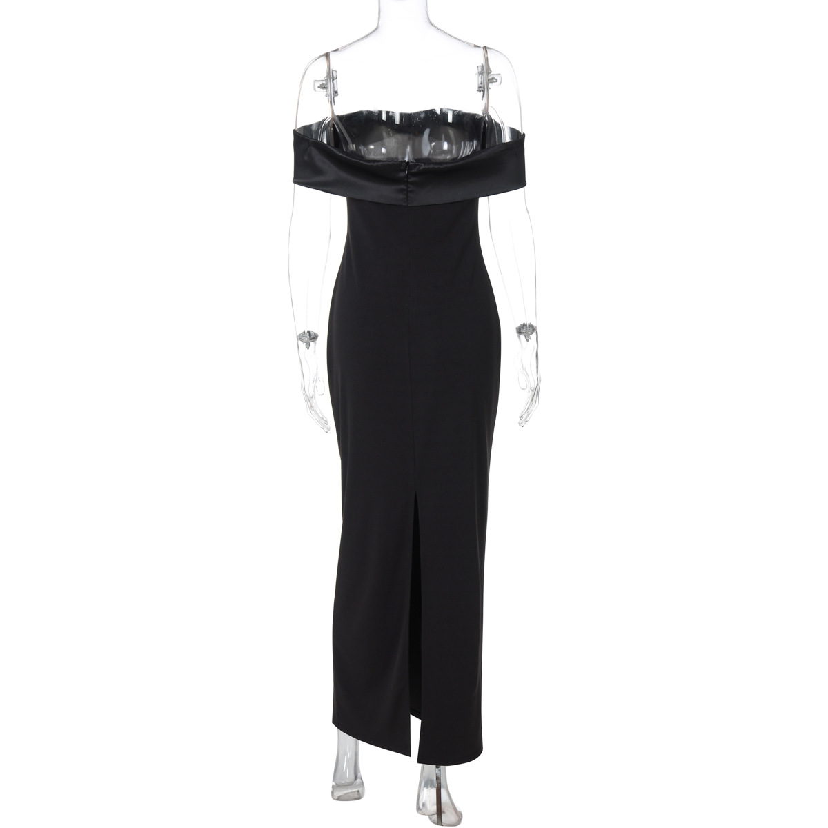 Women Clothing Summer off the Shoulder Gown Back Slit Slim Fit Maxi Dress