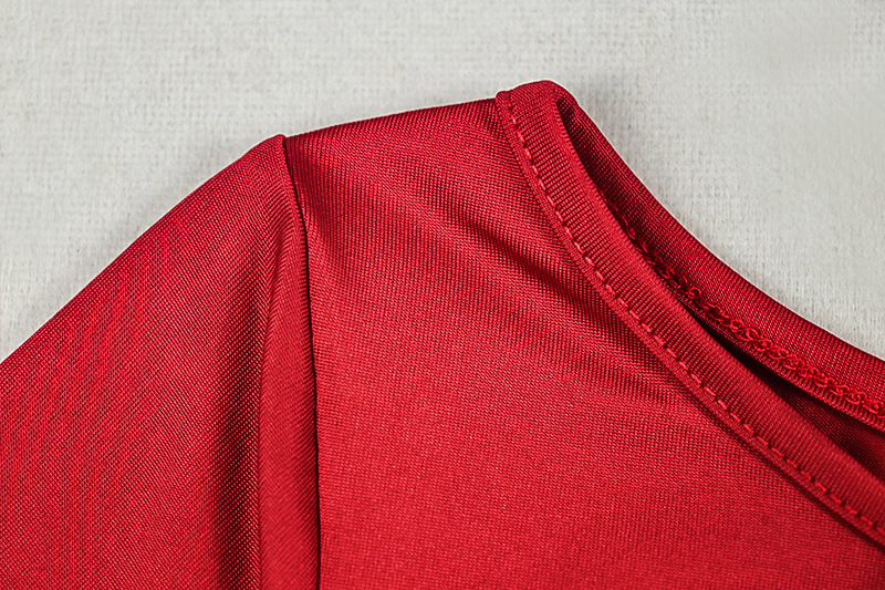 Arrival Lace up Slimming Pleated round Neck Dress Solid Color Tight Long Sleeve Tight Waist Hip Dress