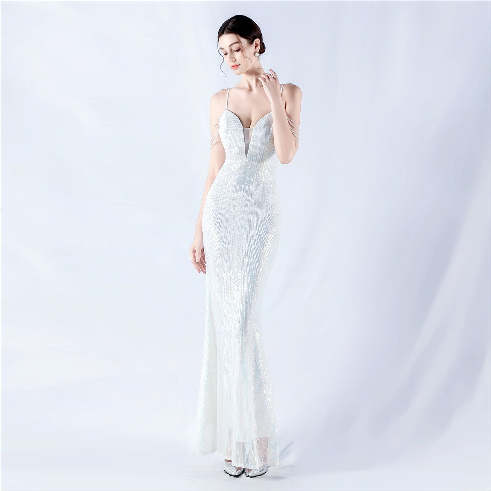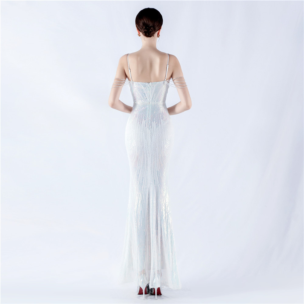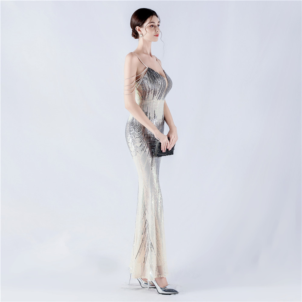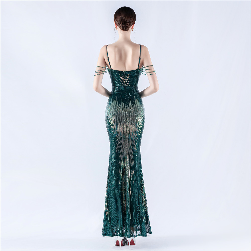 Dress Positioning Floral Sequin Craft Beaded Strap Evening Dress