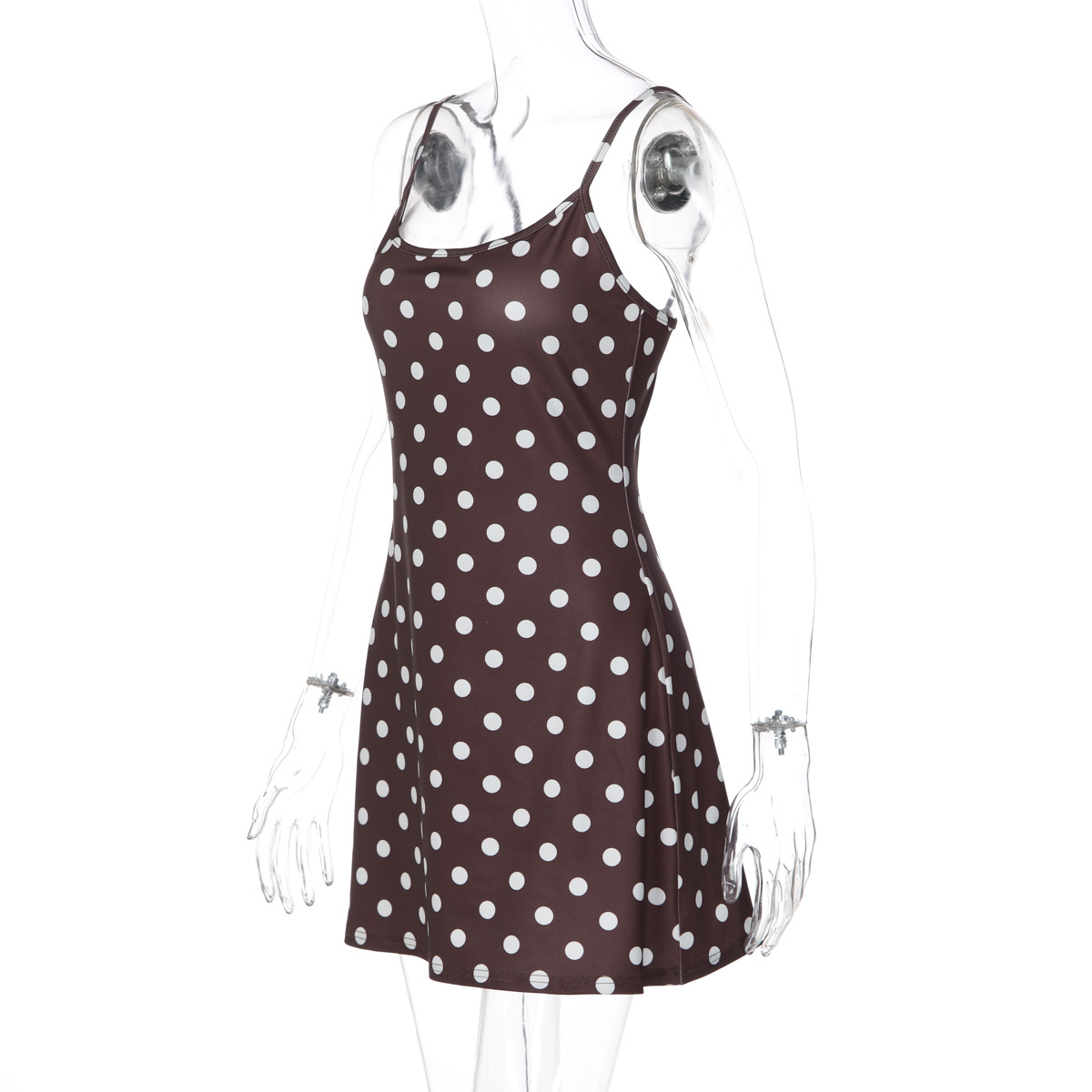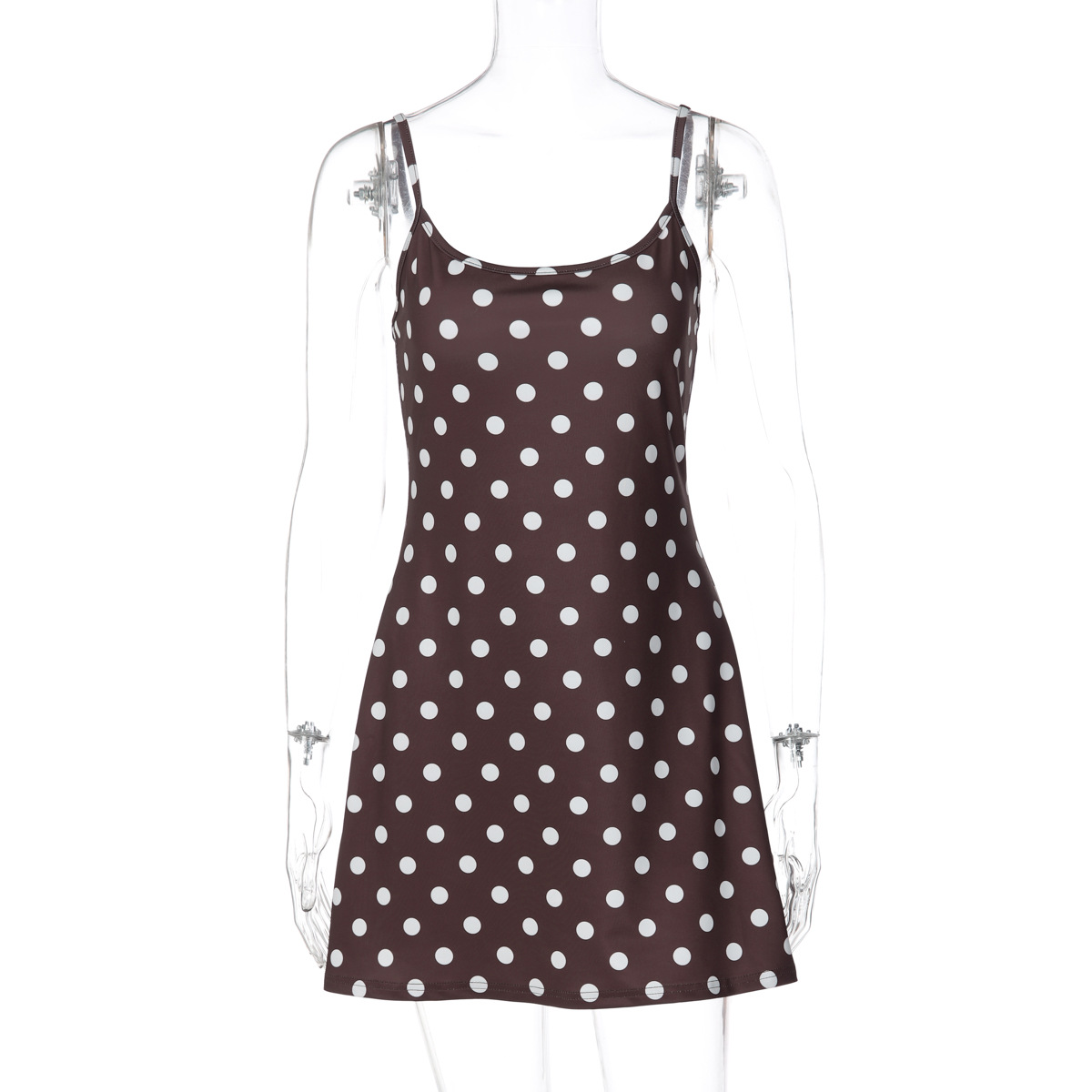 French Women Clothing Winter Printed Polka Dot Slim Fit Slimming Sheath Strap Dress for Women
