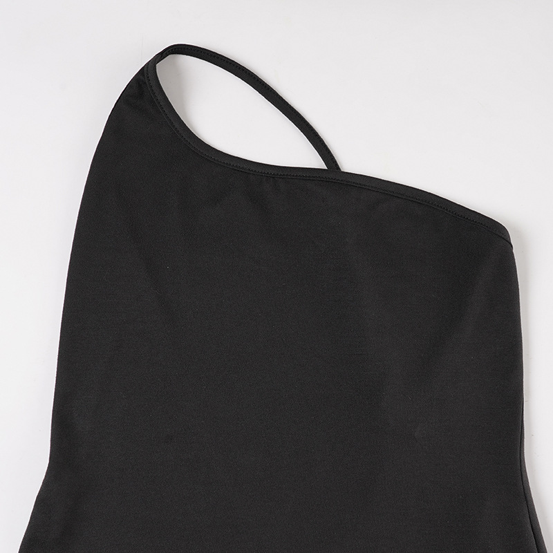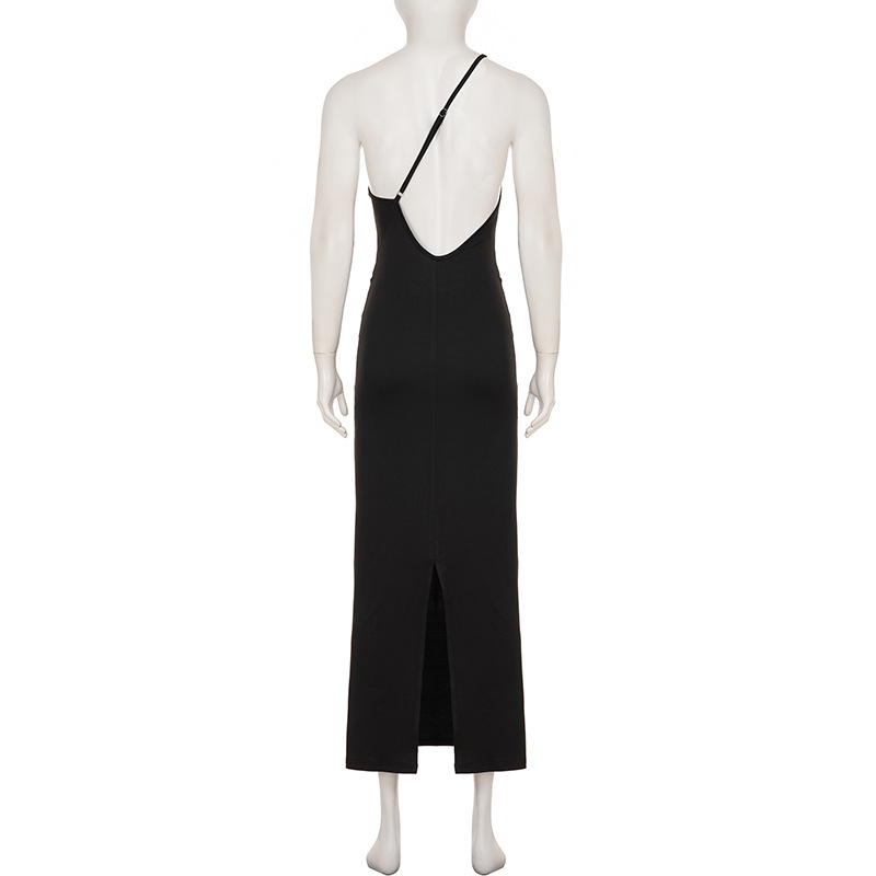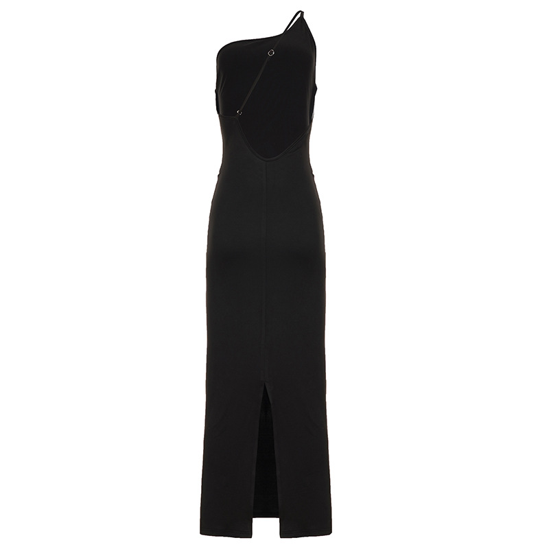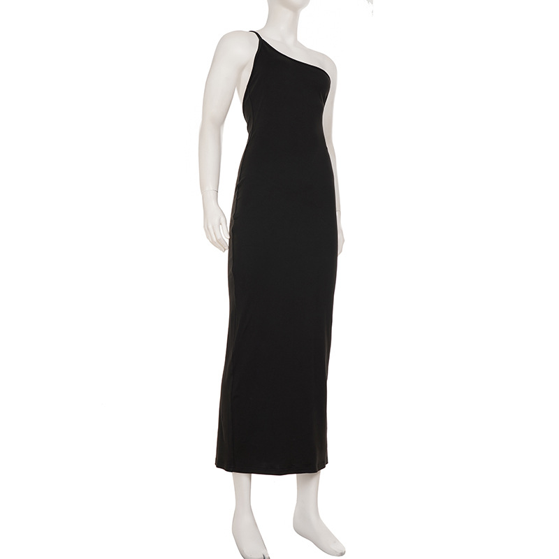 Sexy Lace up Big Back Exposure Dress Design Solid Color One Shoulder Slim Fit Maxi Dress