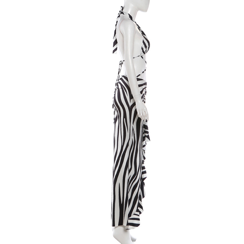 Spring Sexy Backless Halter Bandage Split Stringy Selvedge Dress Women