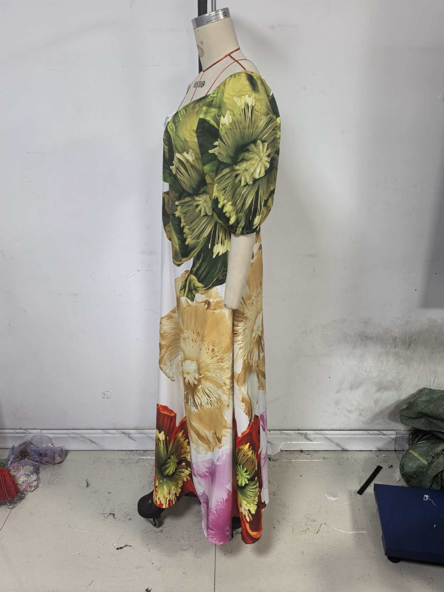 Spring Summer Oblique Shoulder Positioning Printed Dress Casual Vacation Loose Dress