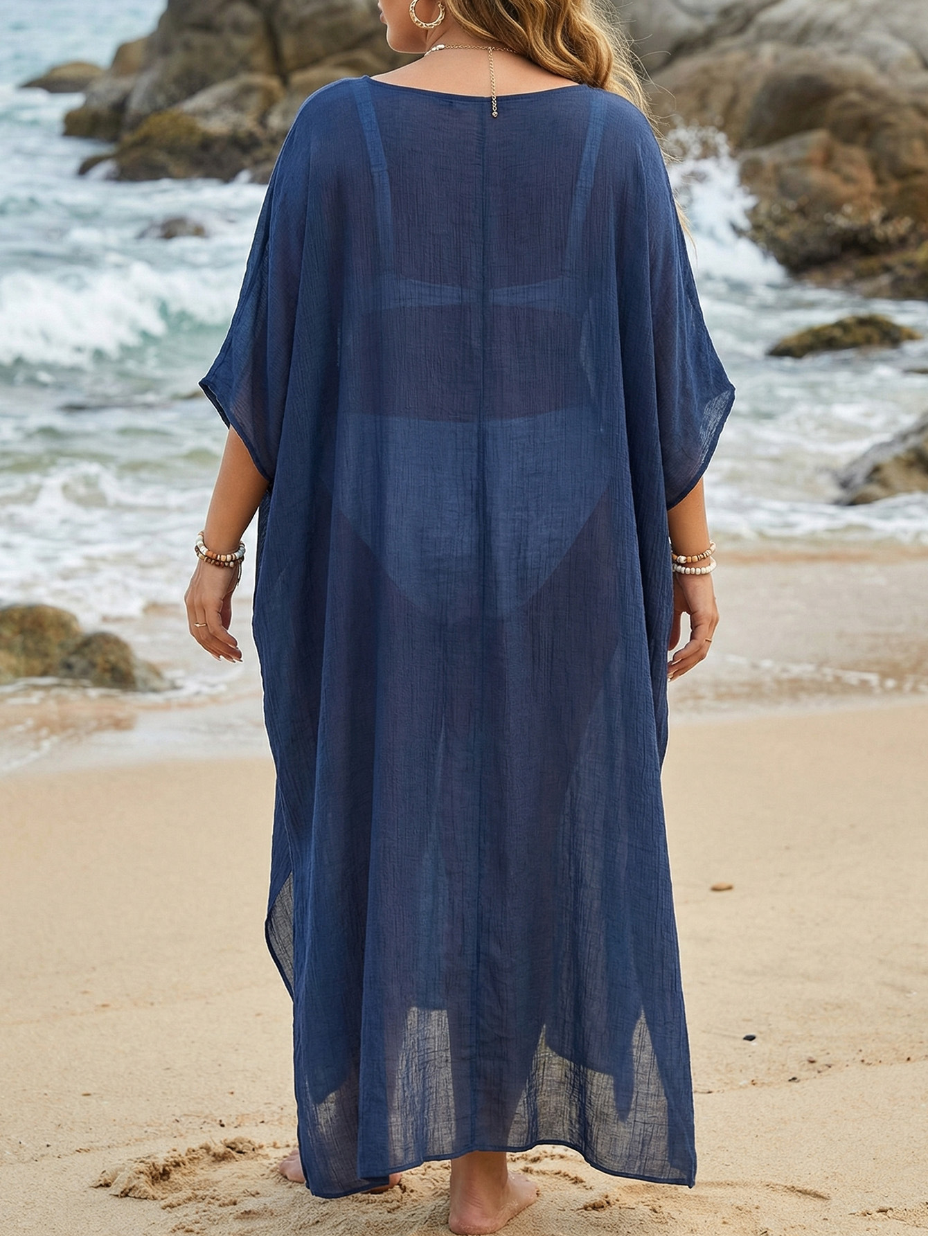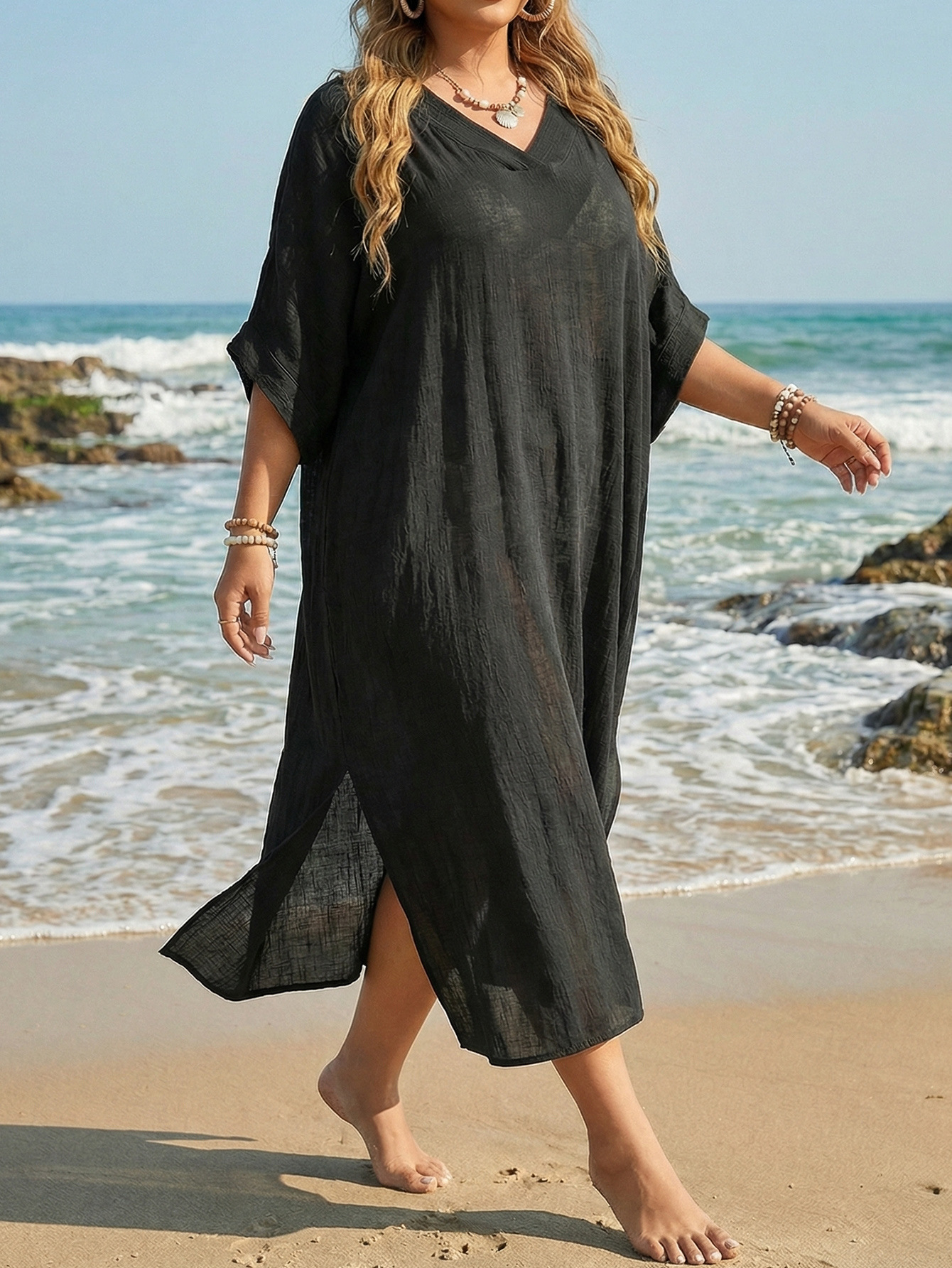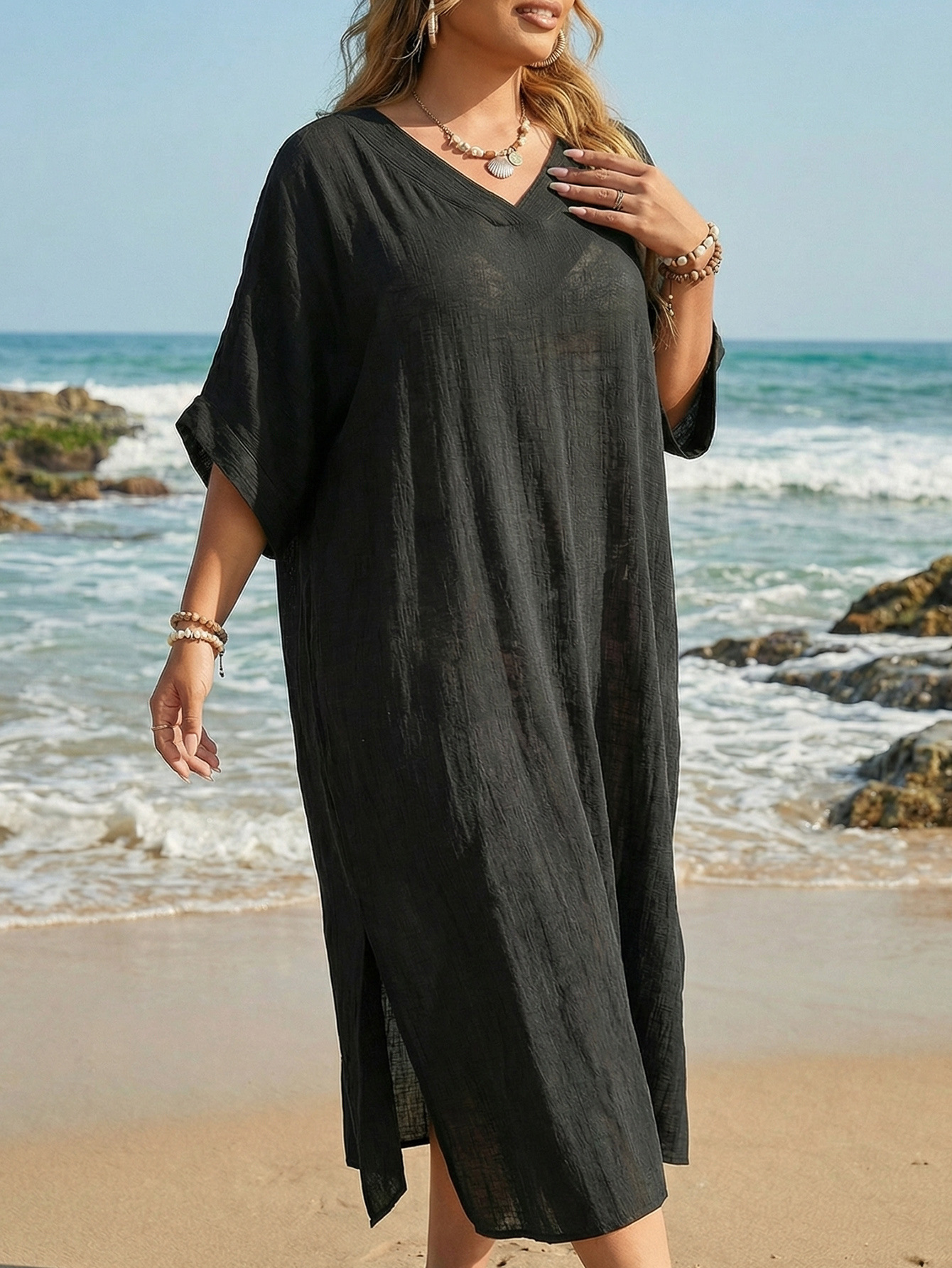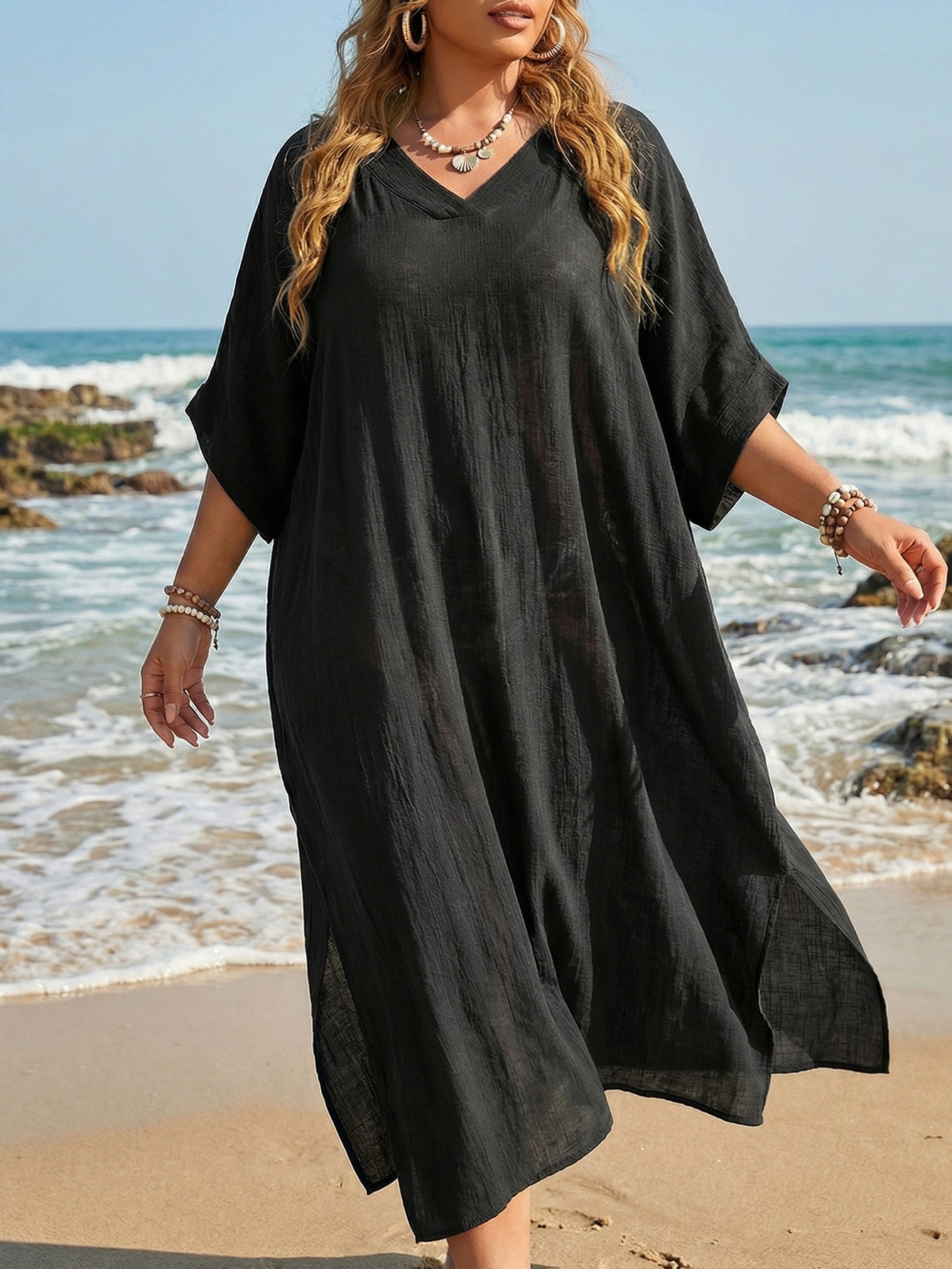 Women Beach Cover up Summer Women Clothes V neck Loose Casual Dress Split Mop Dress