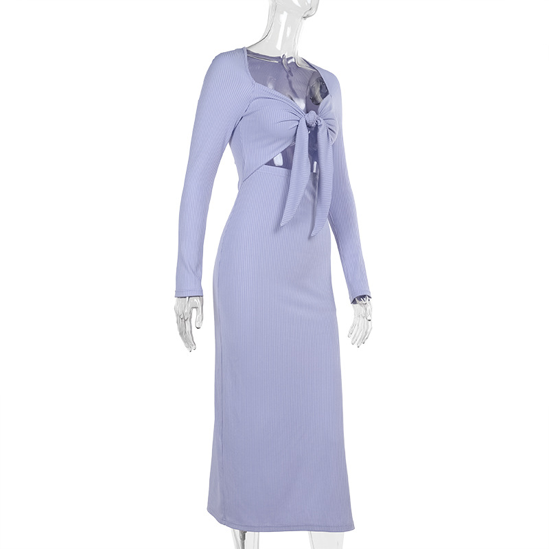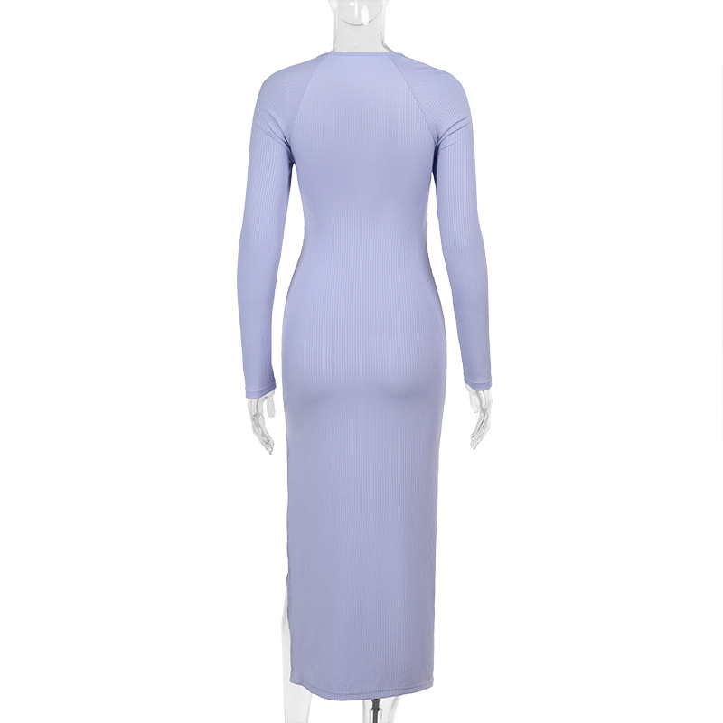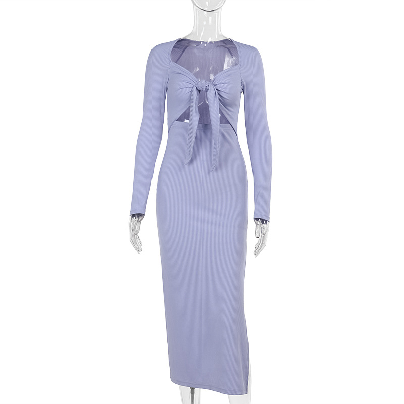 Women Dress Fashionable, Elegant Sexy Slim Hollow Out Cutout out Long Sleeve Split Maxi Dress