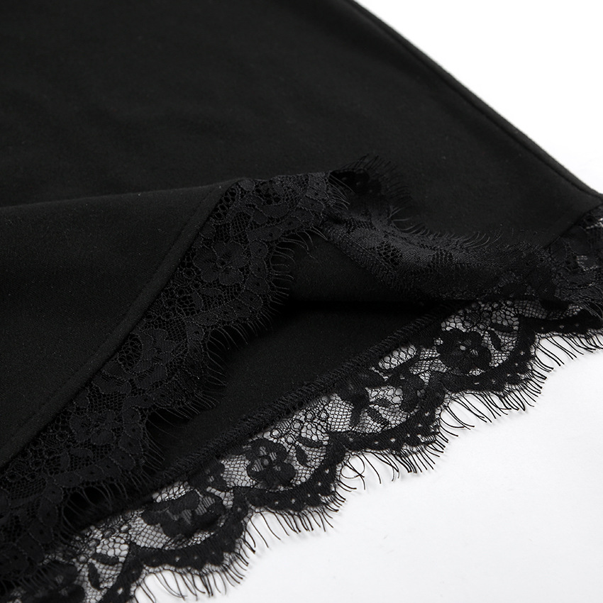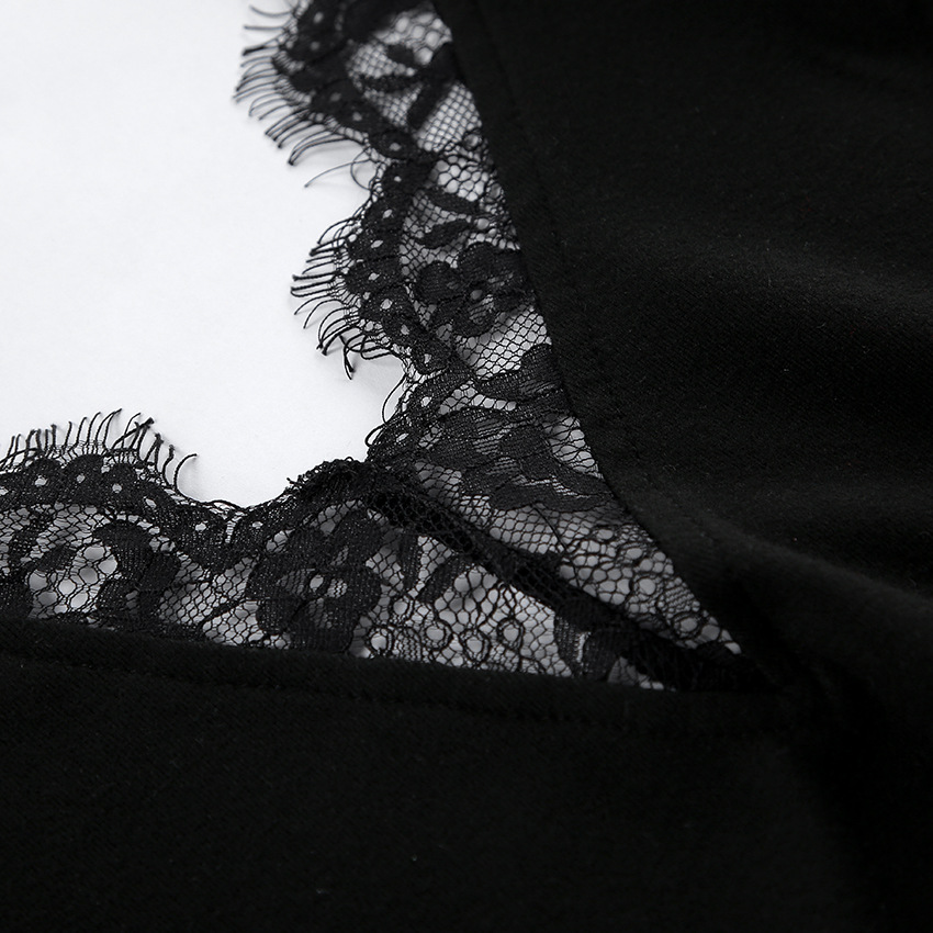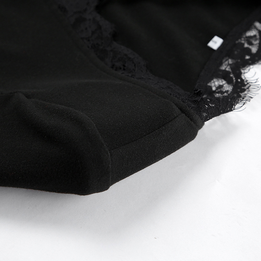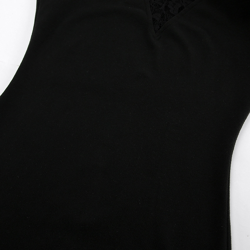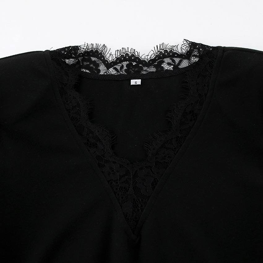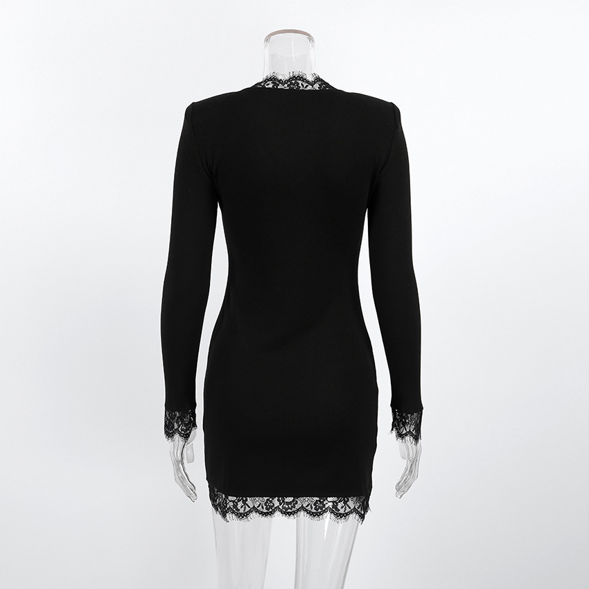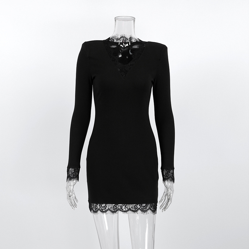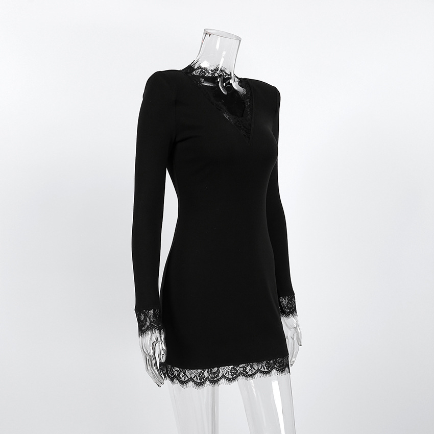Adult Lady like Woman Autumn Winter V neck Lace Stitching Black Sexy Tight Milk Silk Hip Elegant Dress