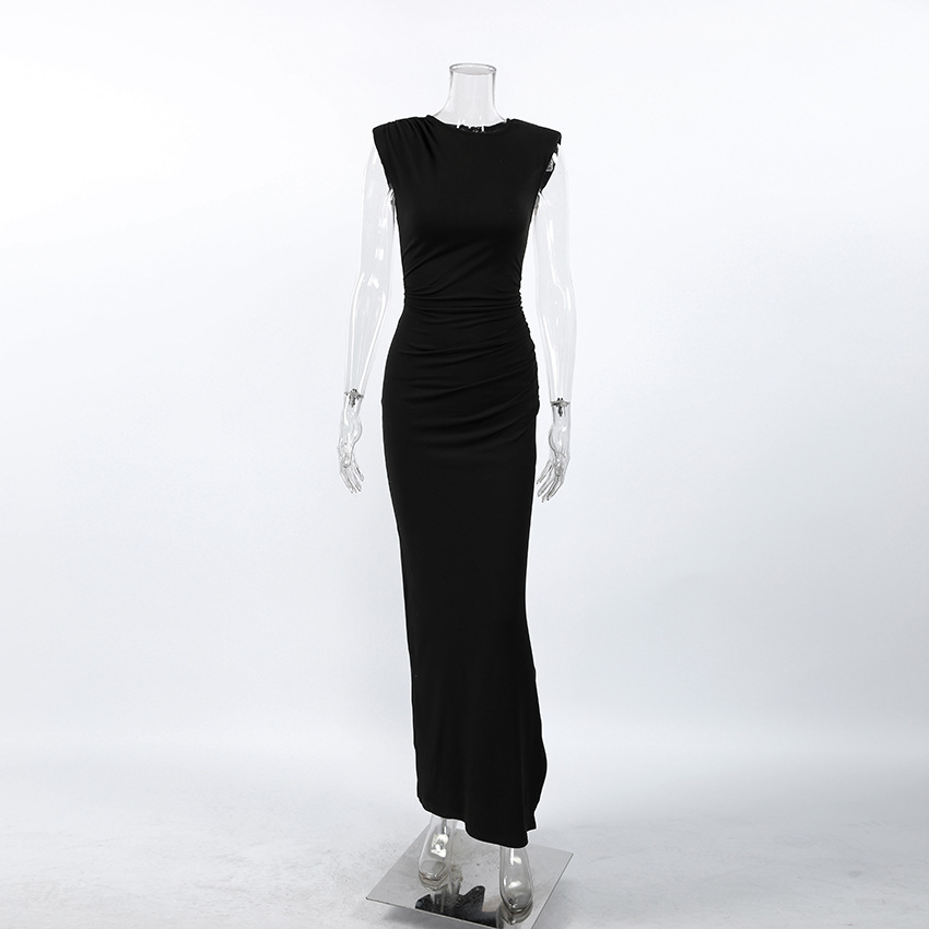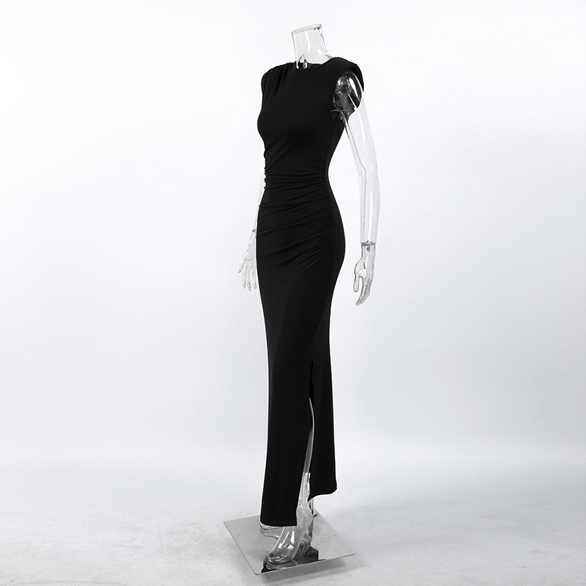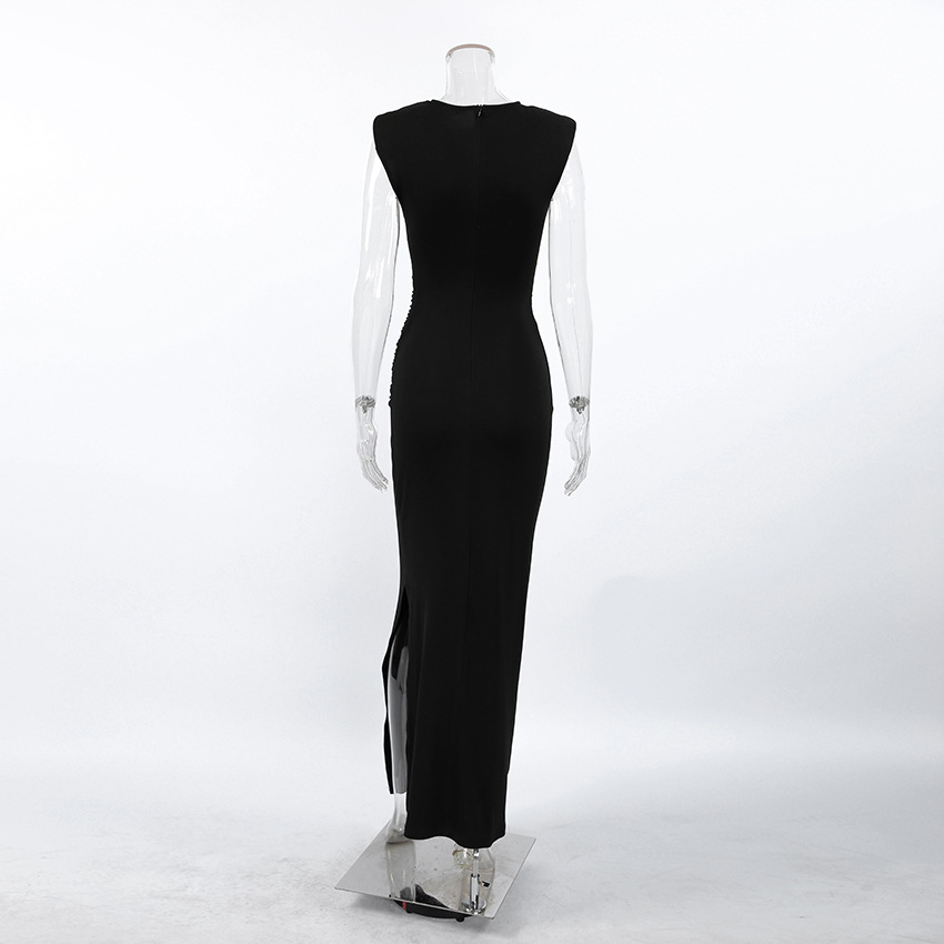 Adult Lady like Woman Wind Black Sleeveless Padded Shoulder Slim Fit Slit Sexy Dress Women Clothing Slimming Elegant Dress