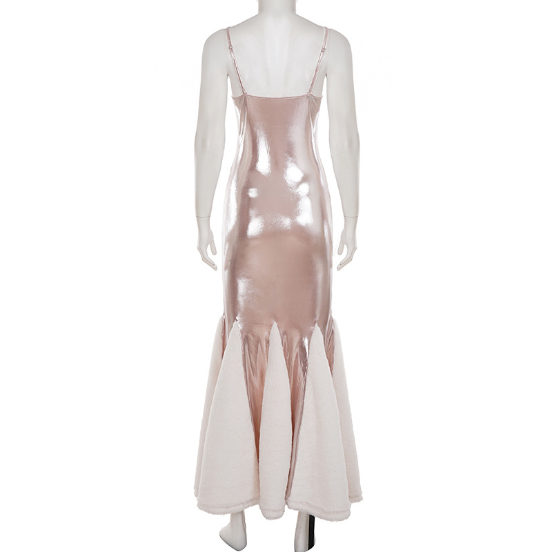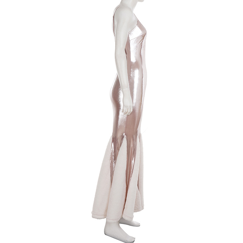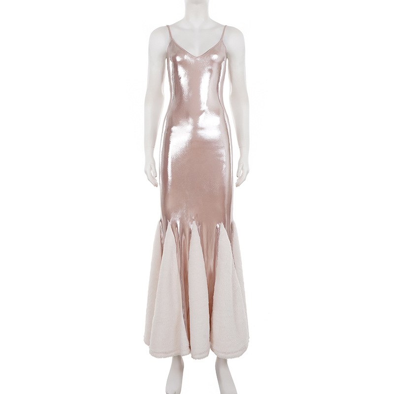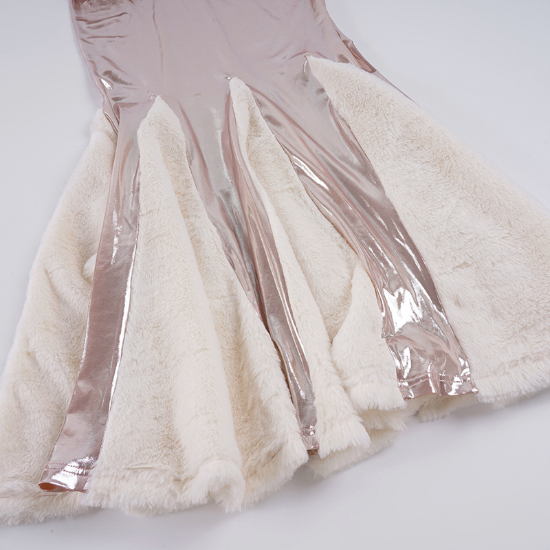 Arrival French Elegance Cocktail Dress Women Glossy Furry ert Slim Fit Patchwork Dress