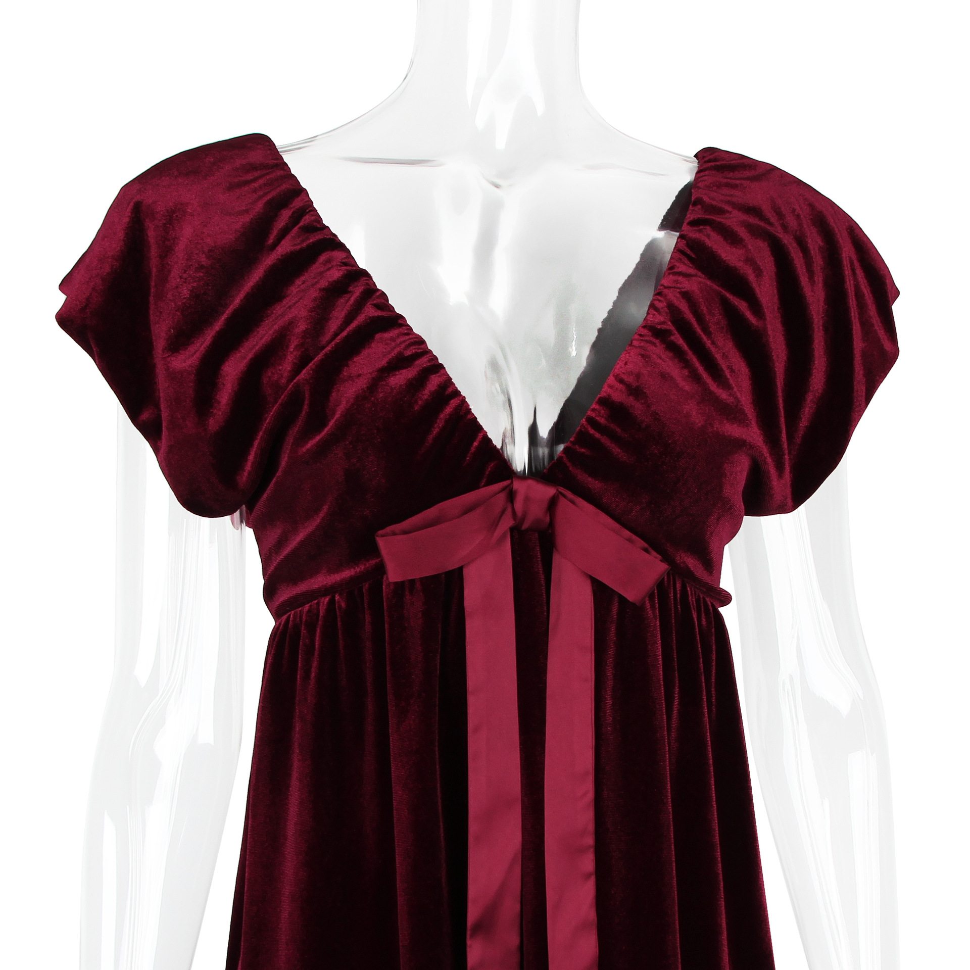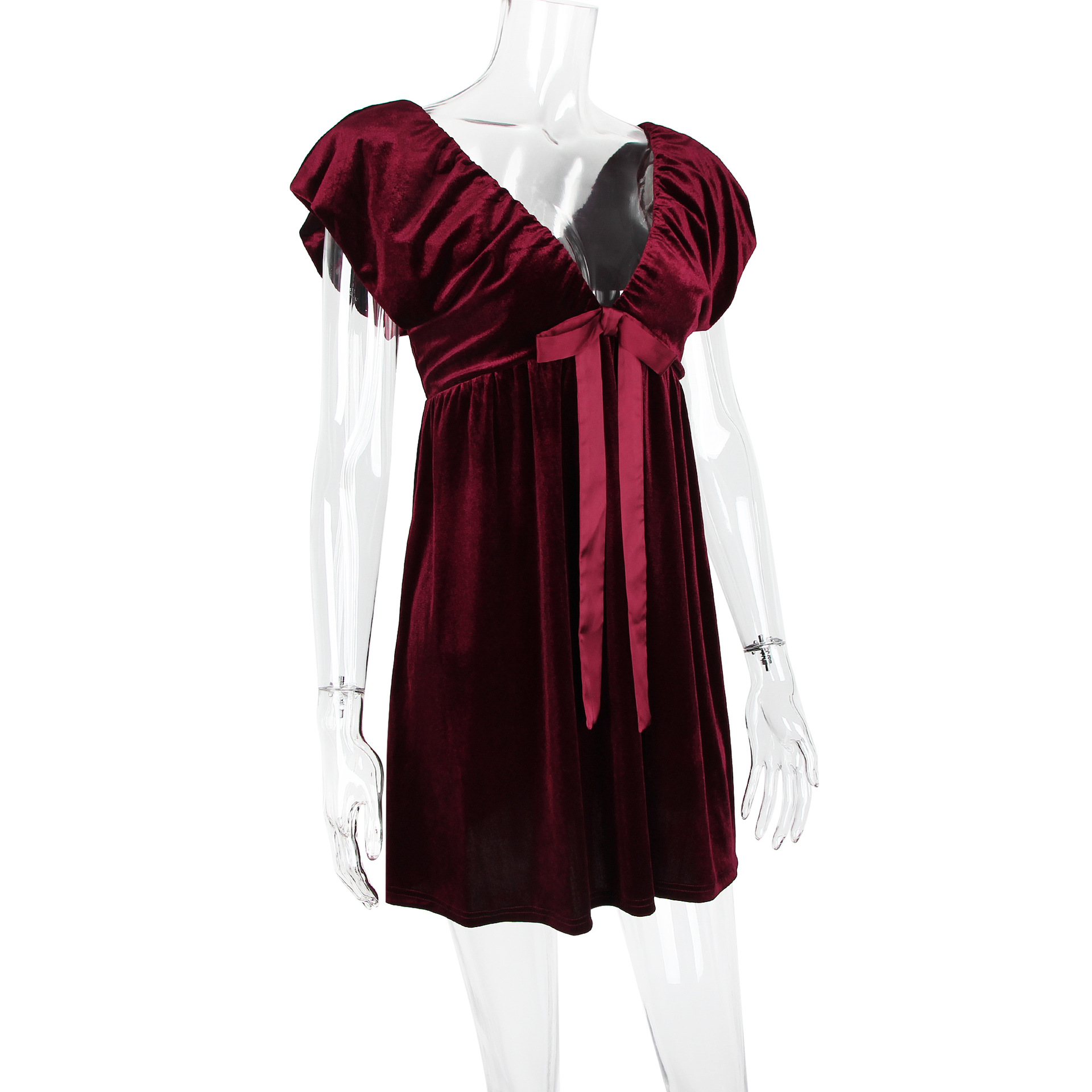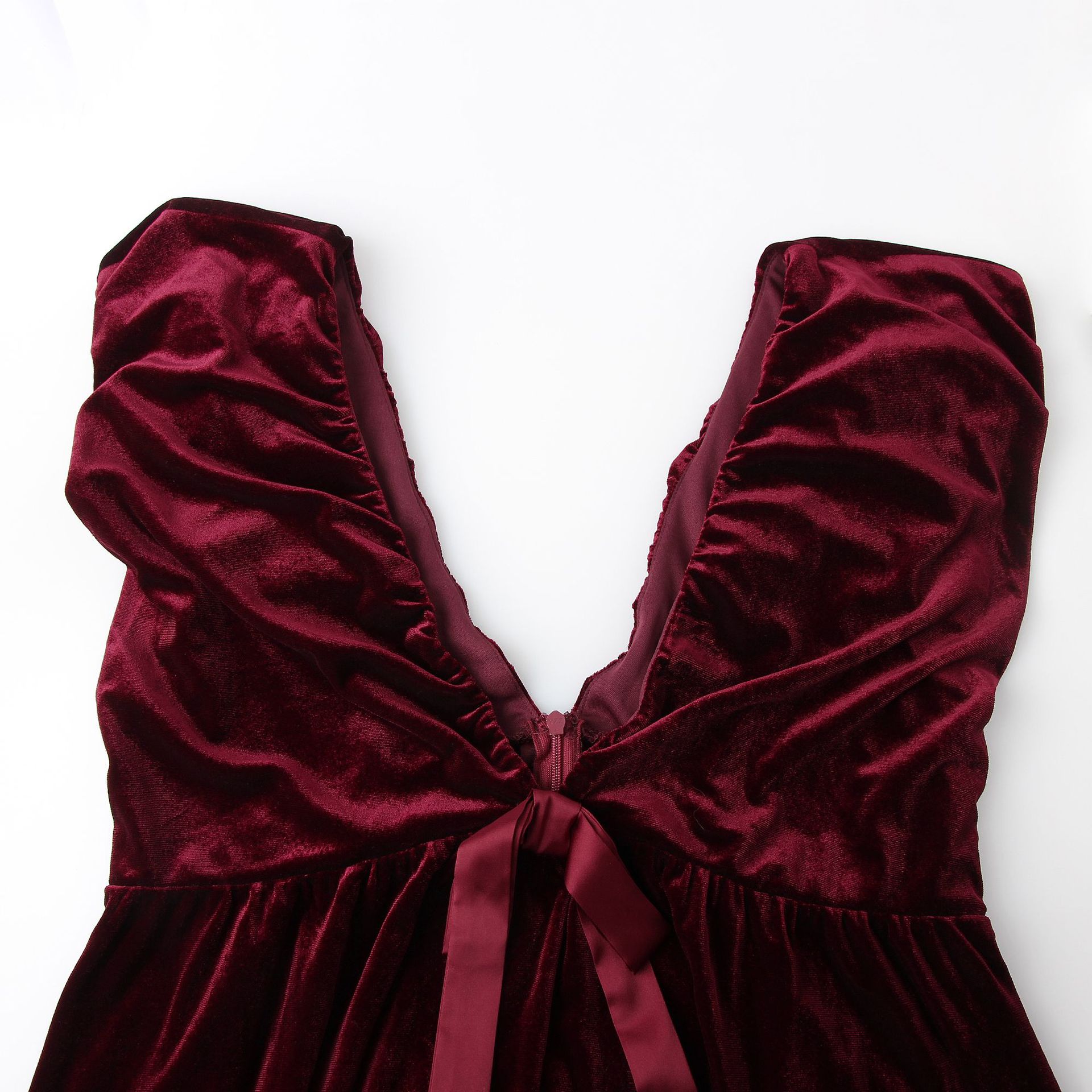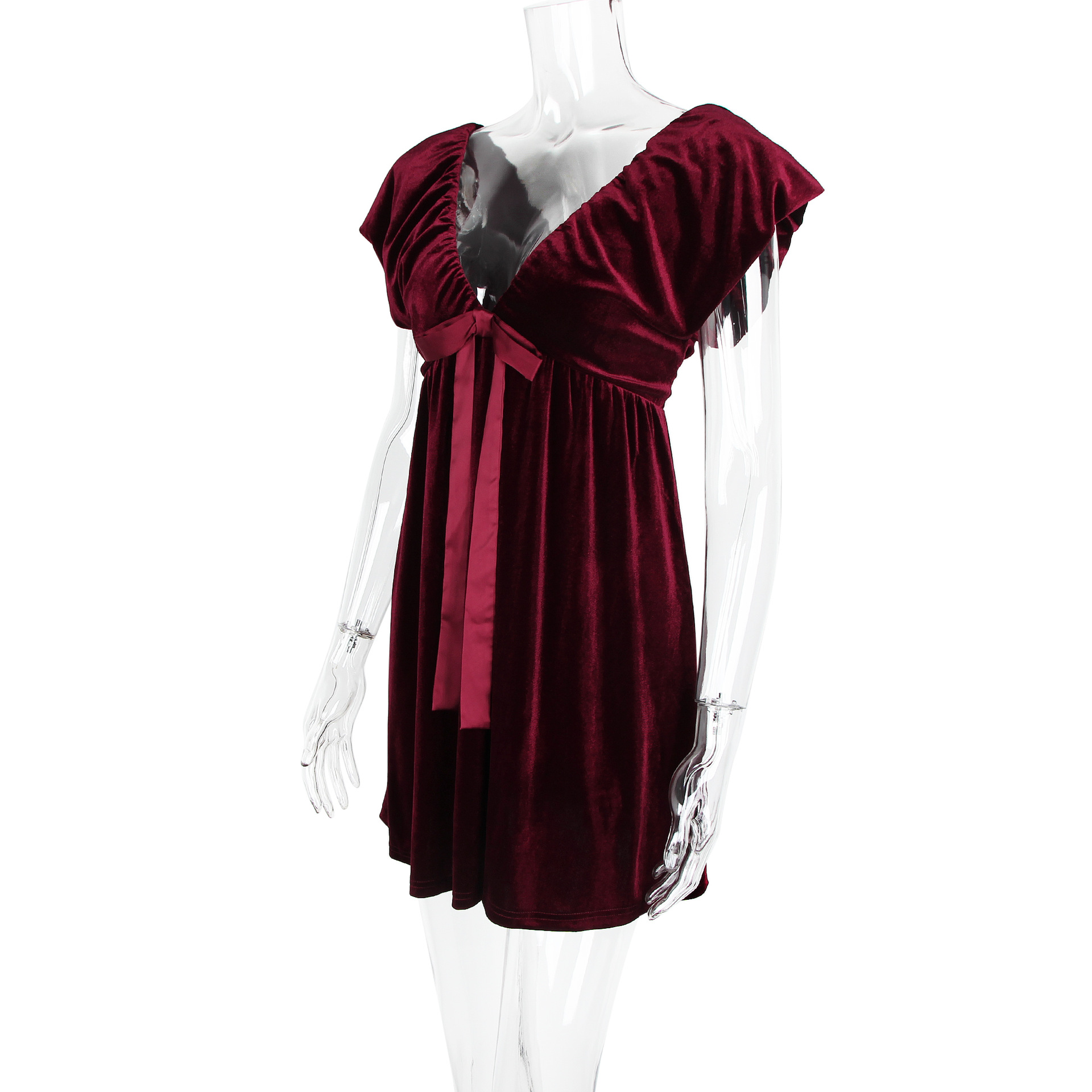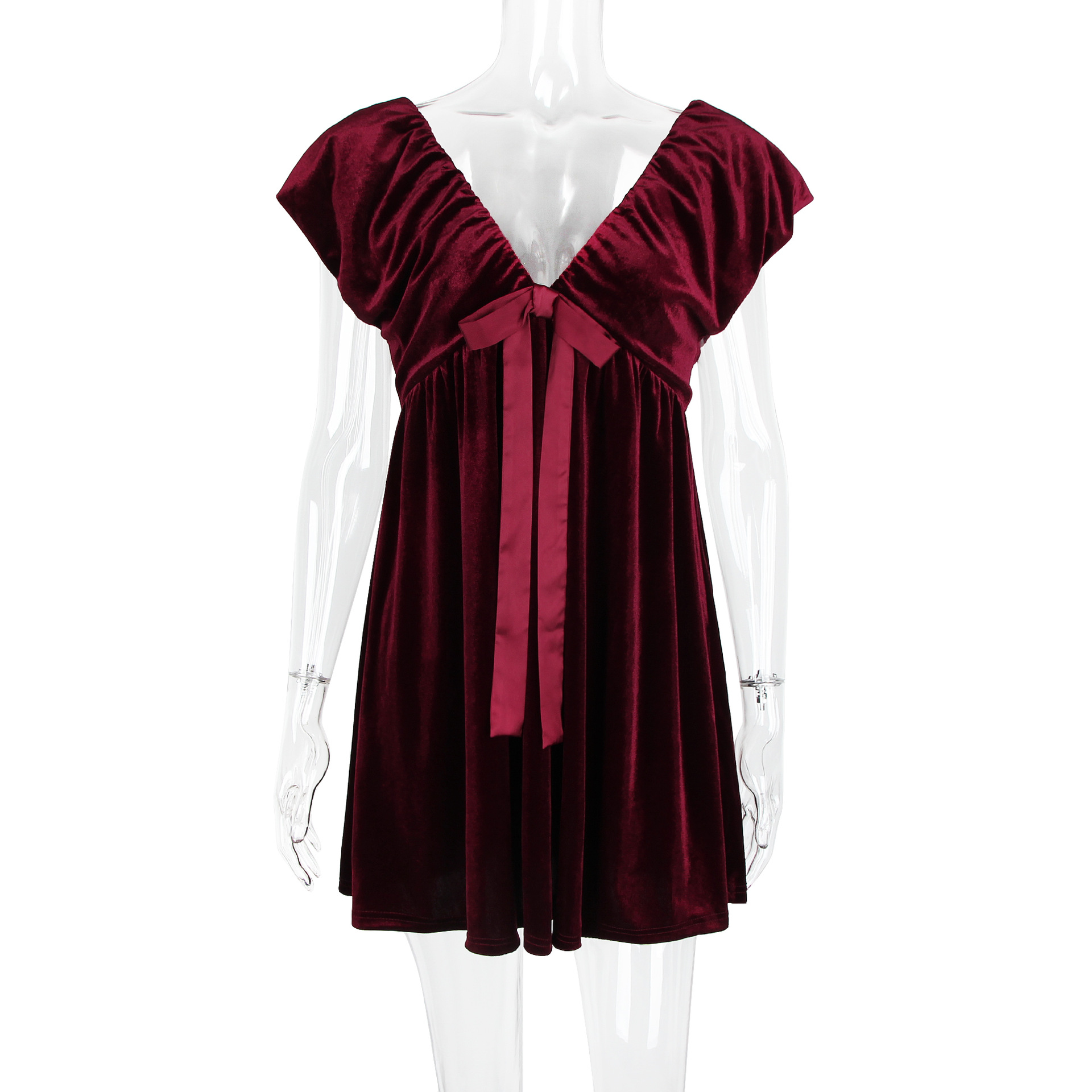 Autumn Winter V neck Bow Pleuche Party Women Dress