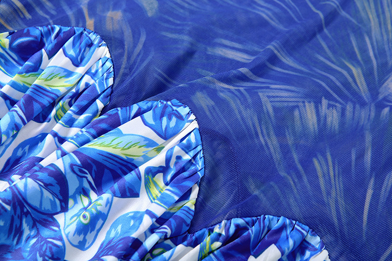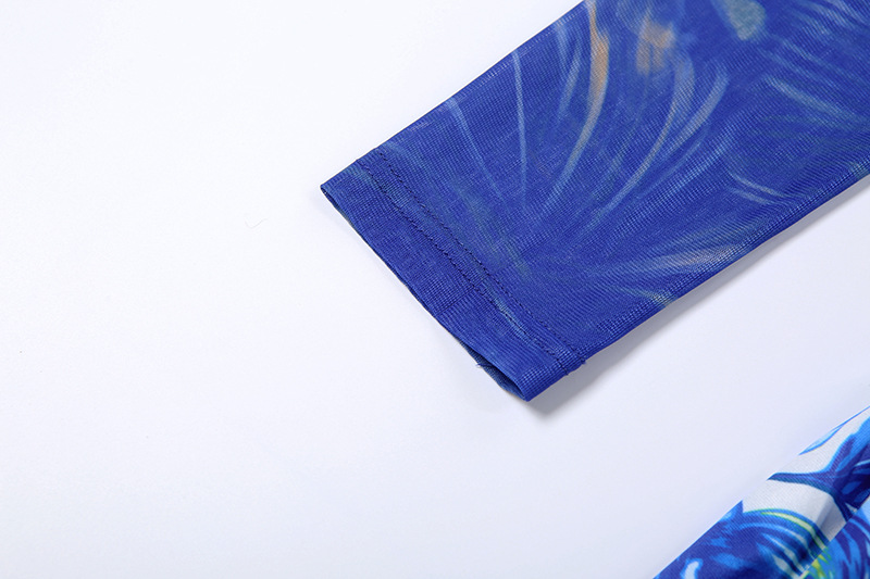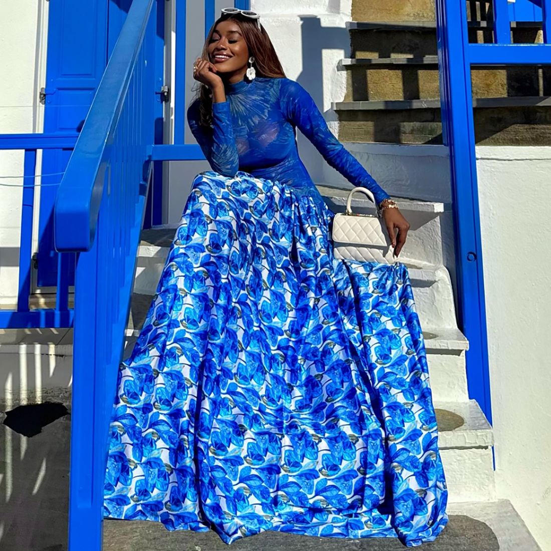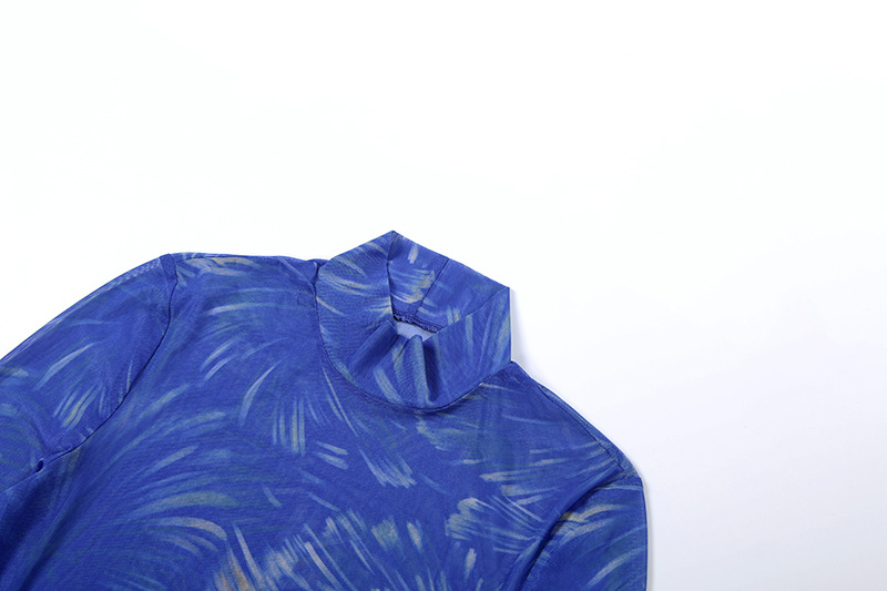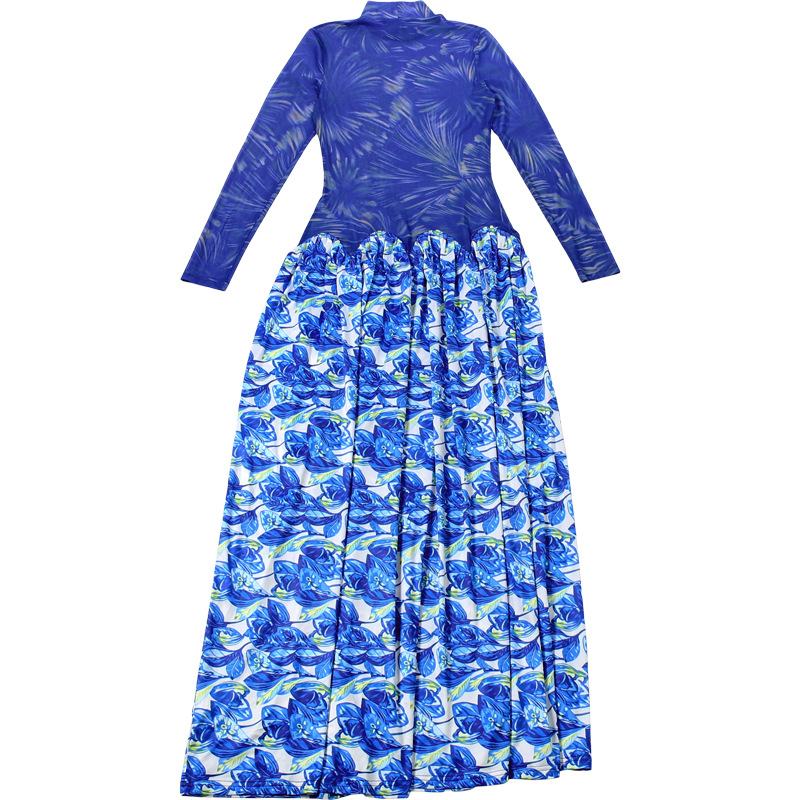 Autumn Winter Women Blue Enchantress Mesh Stitching Long Sleeves Half Turtleneck A line Dress