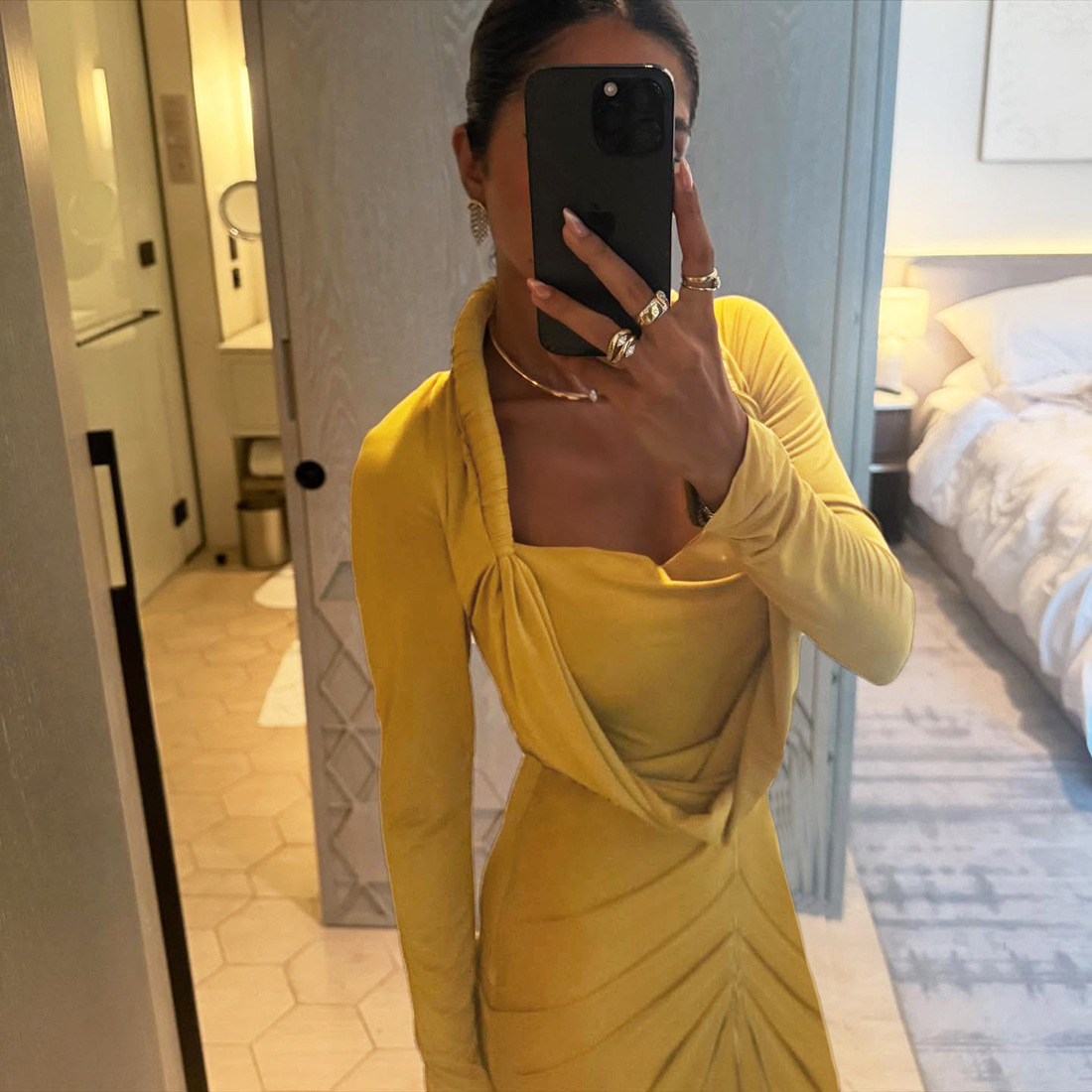 Autumn Winter Women Clothing Fashionable High Grade Solid Color Elegant Pile Collar Sexy Slim Fit Maxi Dress