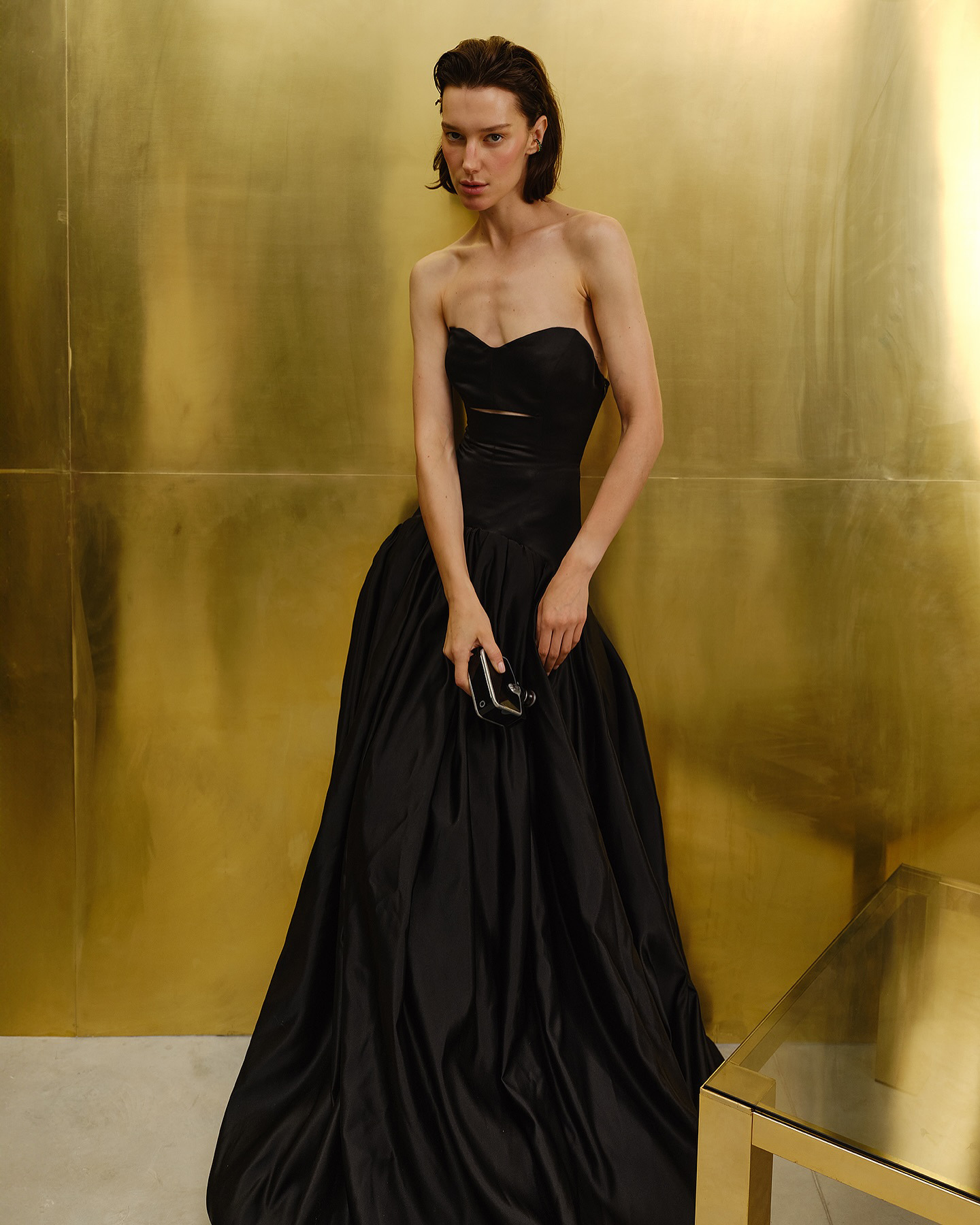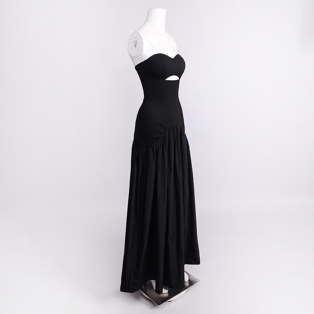 Black Tube Top Evening Dress Women Annual Meeting Dress High End Host Art Exam Maxi Dress A Hemline