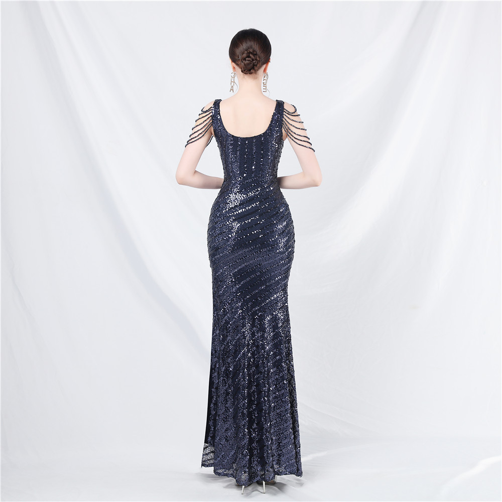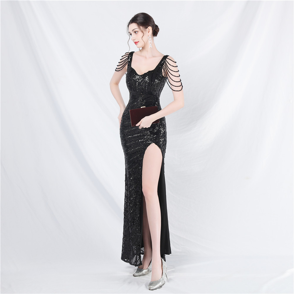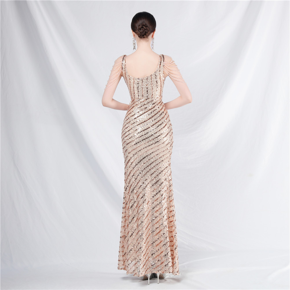 Craft Sequin Velvet Bottom Handmade Beaded Long Elegant Light Luxury Evening Dress