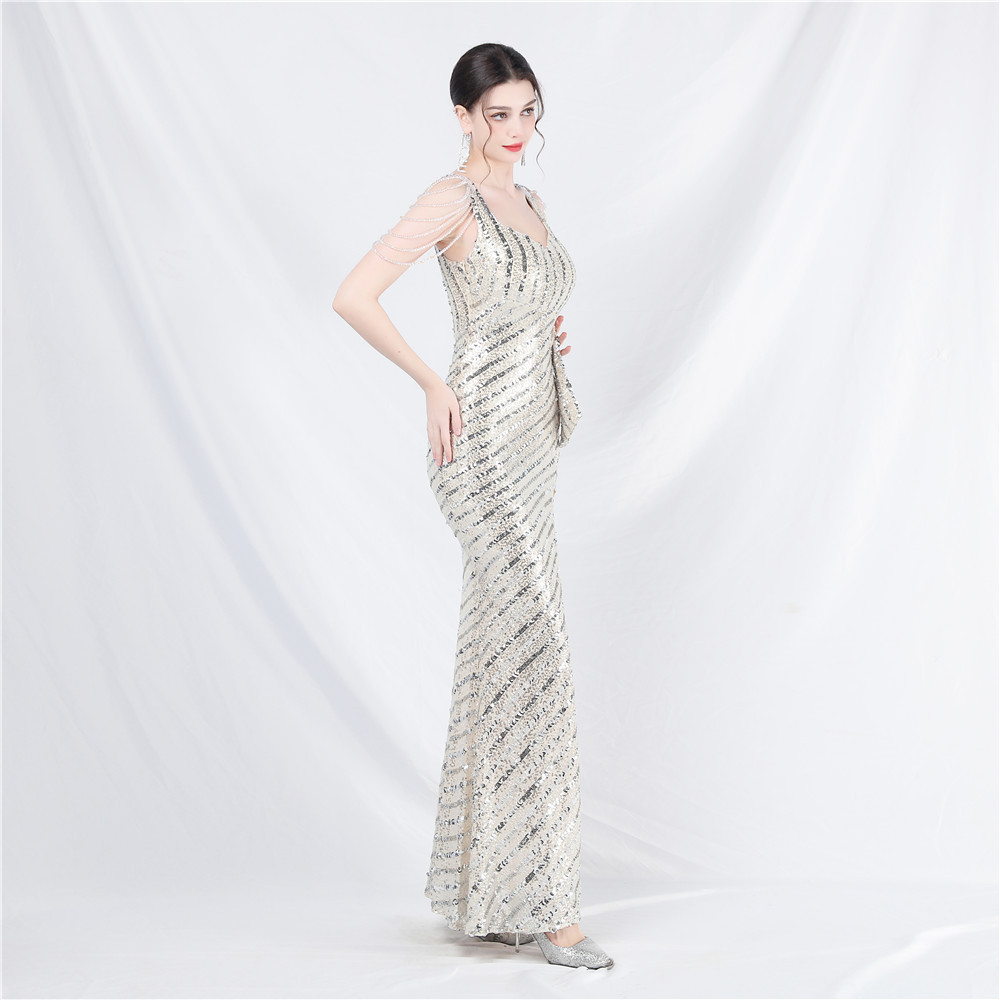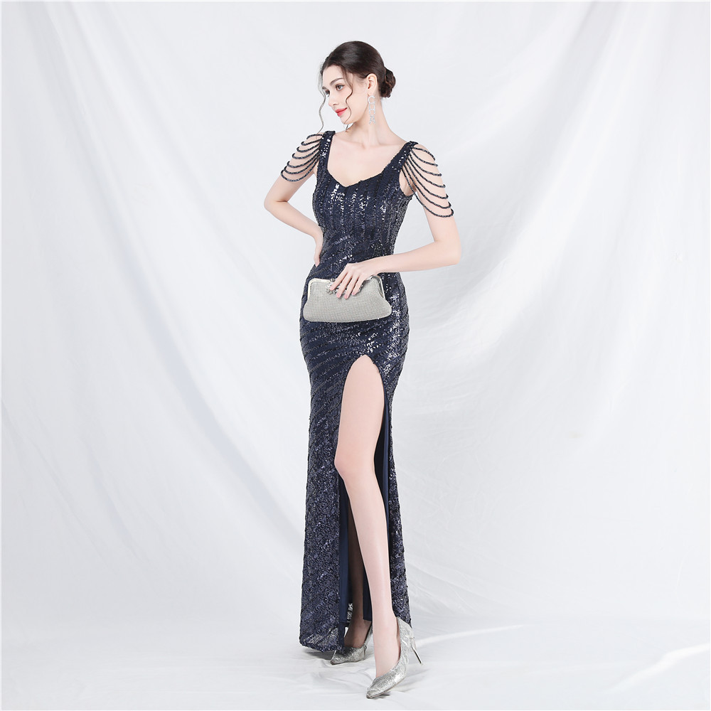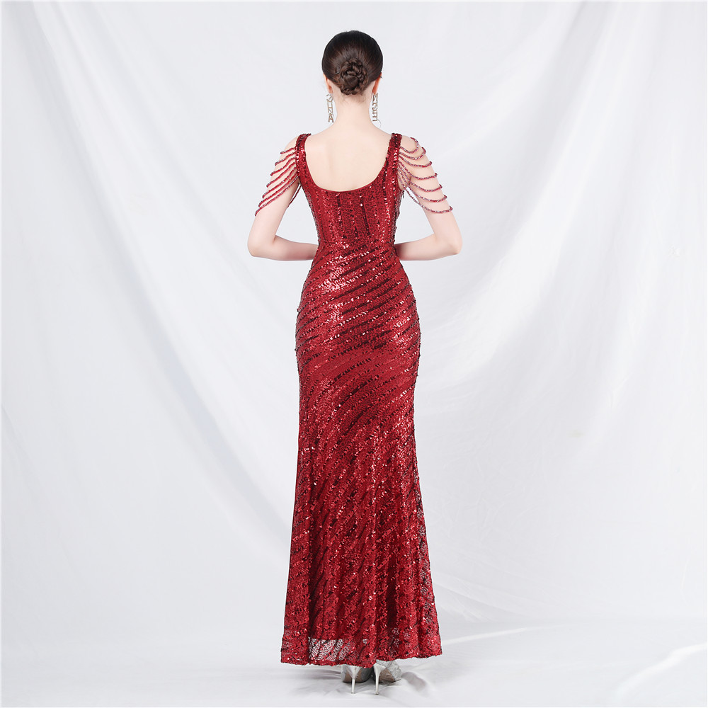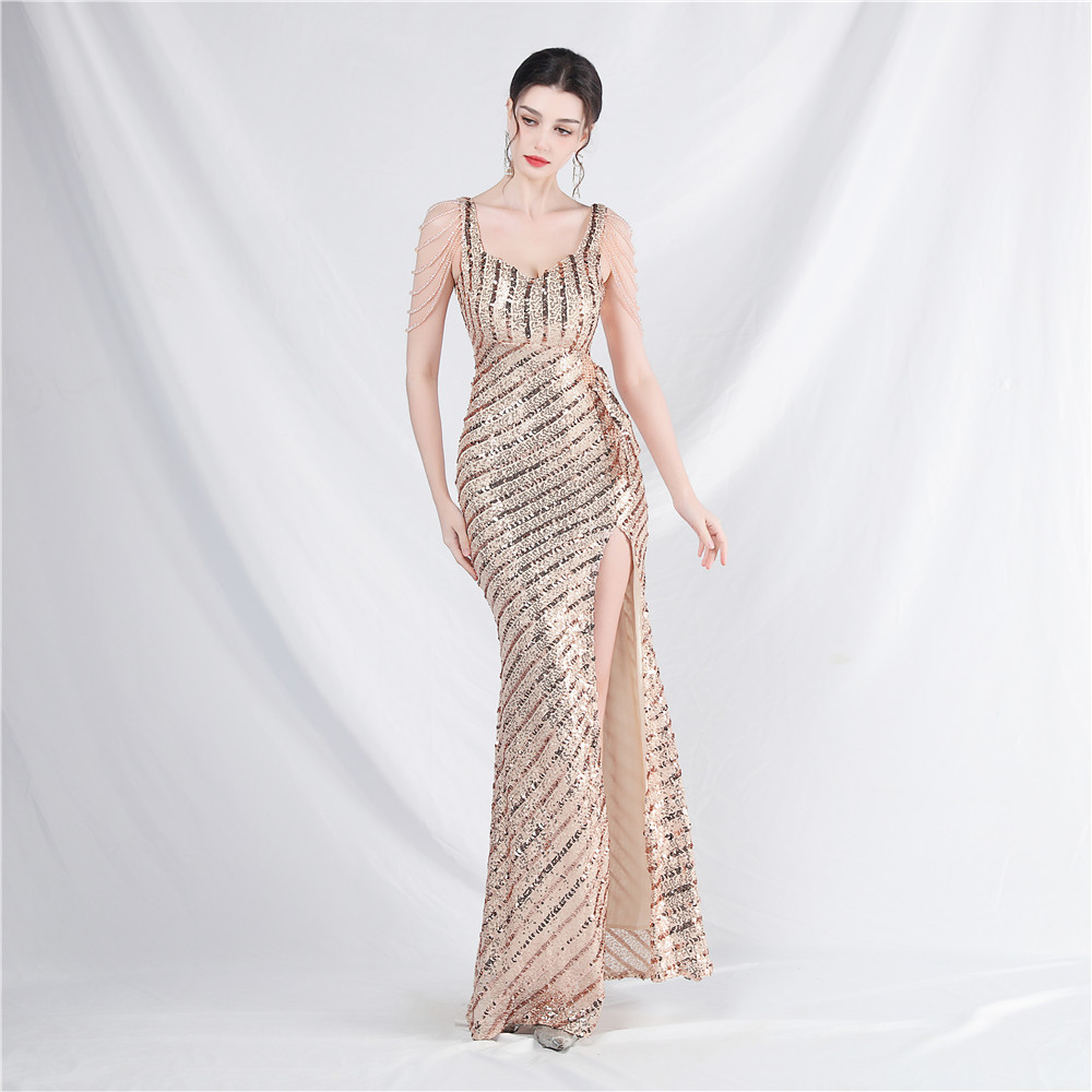 Craft Sequin Velvet Bottom Handmade Beaded Long Elegant Light Luxury Evening Dress