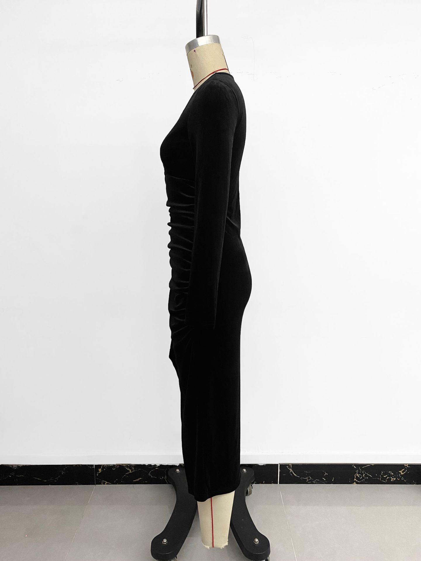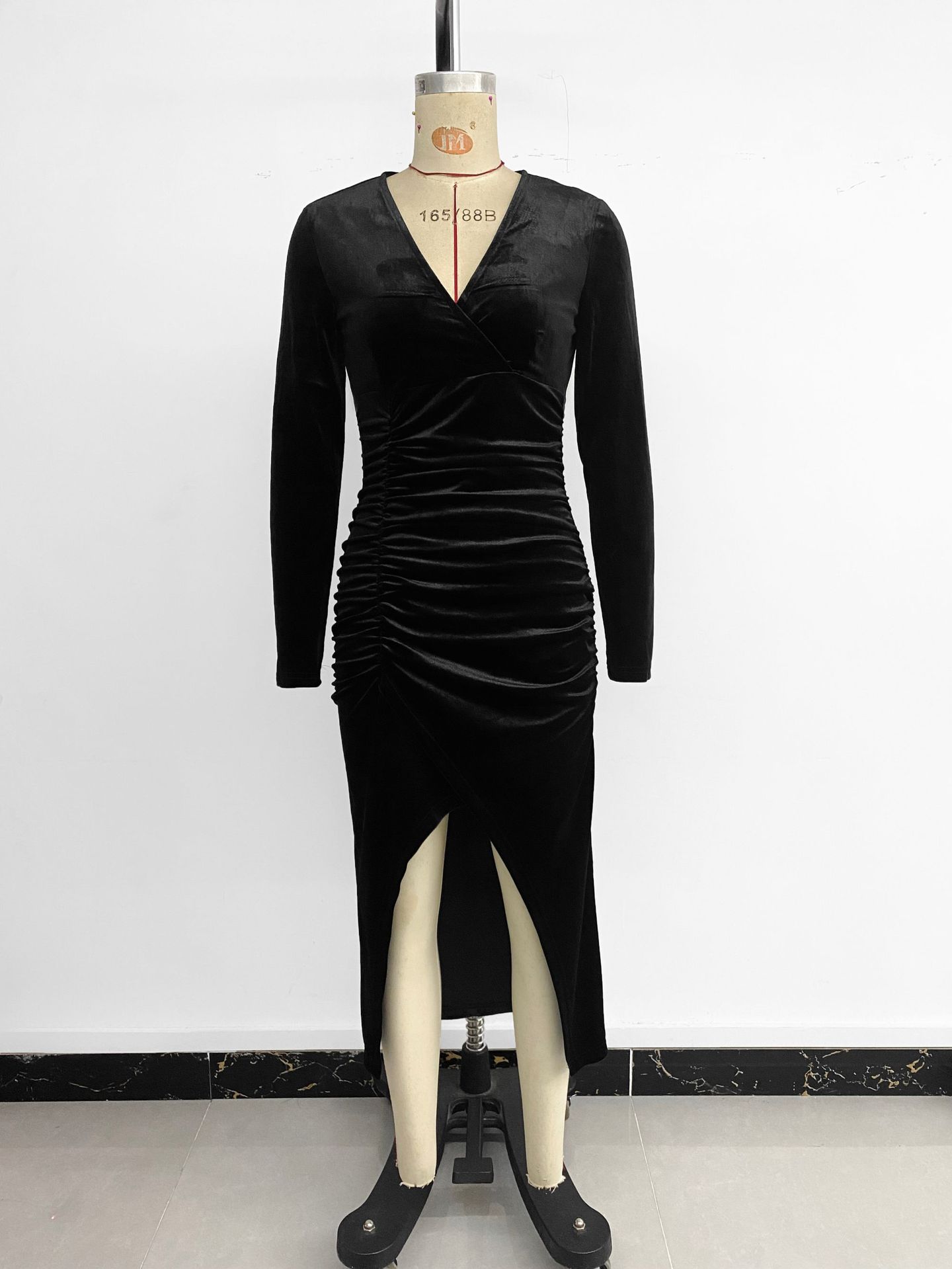 Dress V neck Dress Women Sheath Irregular Asymmetric Slit Midi Dress Slim Fit Dress