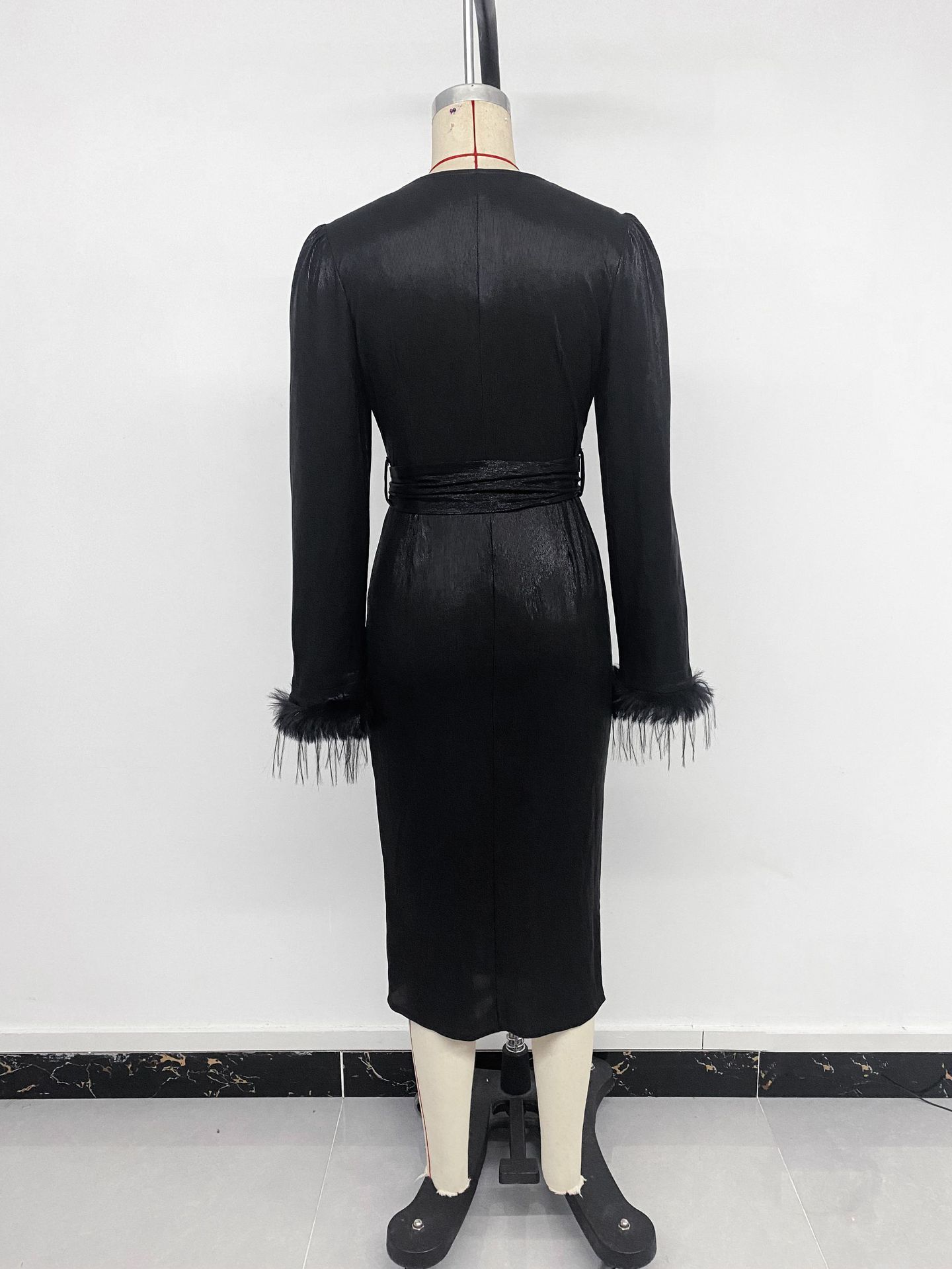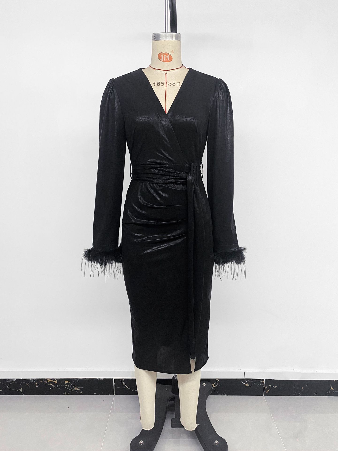 Fall Retro Party Sexy Elegant Deep V Plunge neck Black Slit Dress