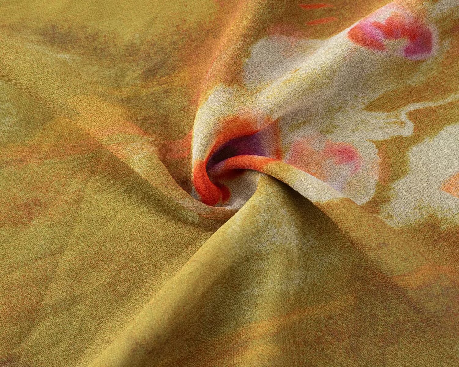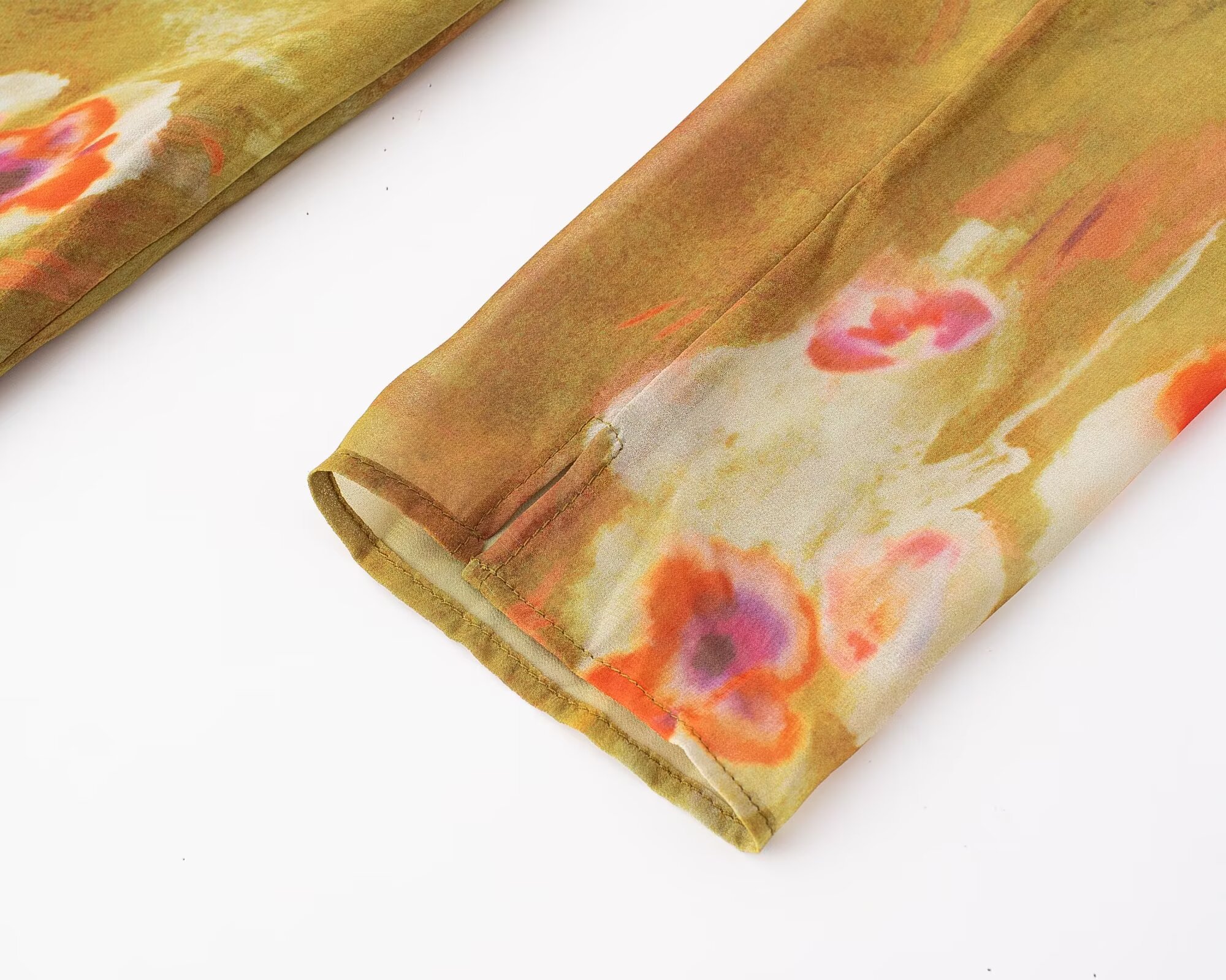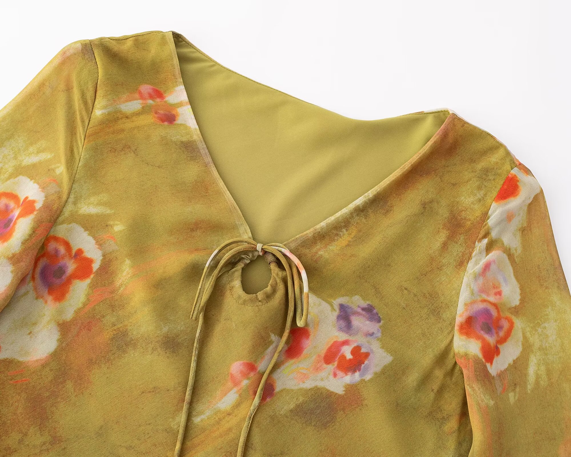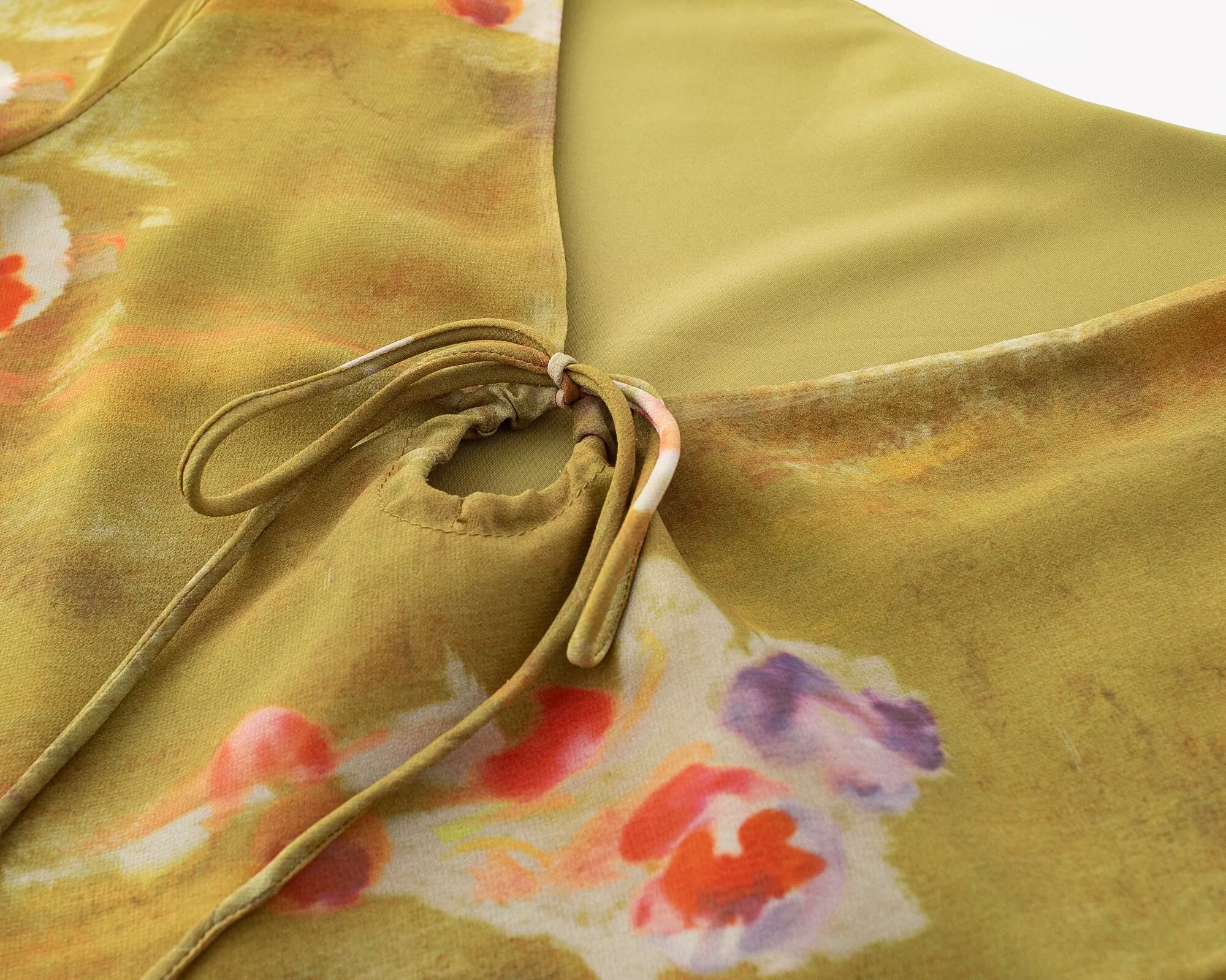 Floral Mid Length Dress Printed Yellow Summer Women Clothing Picture Color Stitching Midi Dress