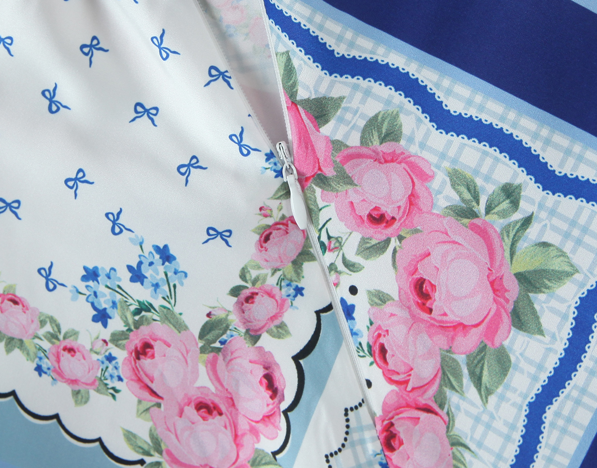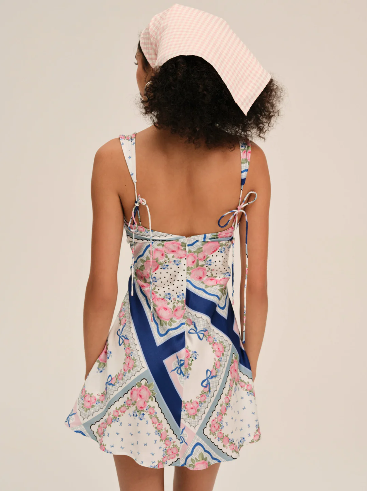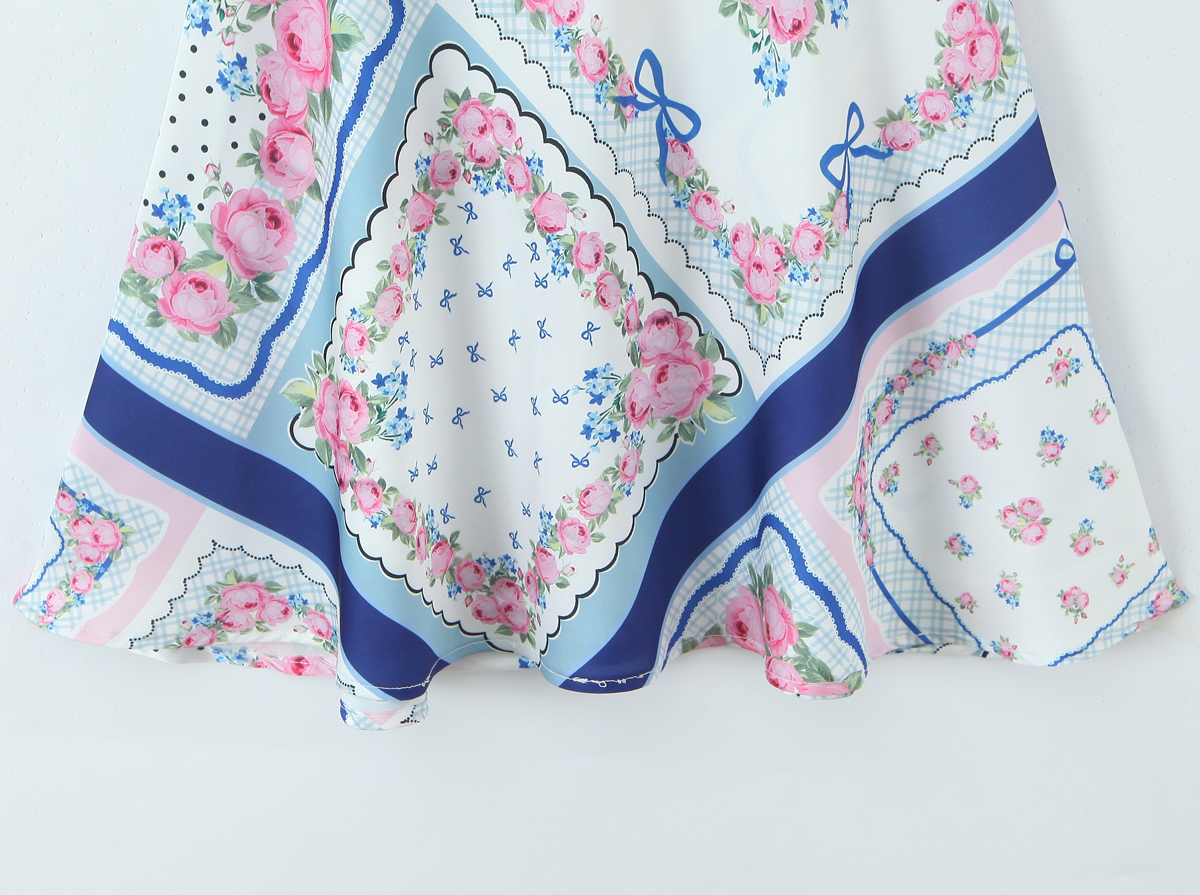 French Romantic Printed Satin Mini Strap Dress Women Bow A line Dress