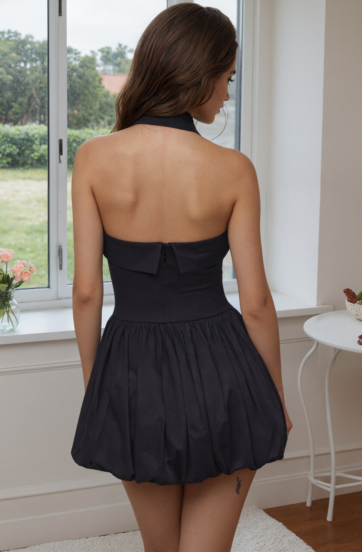 Graceful Fashionable Dress Slim Fit Pleated Bud Short Dress Halter Mini Dress Women Clothing