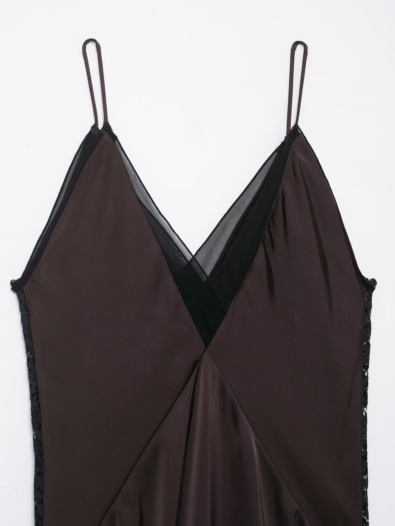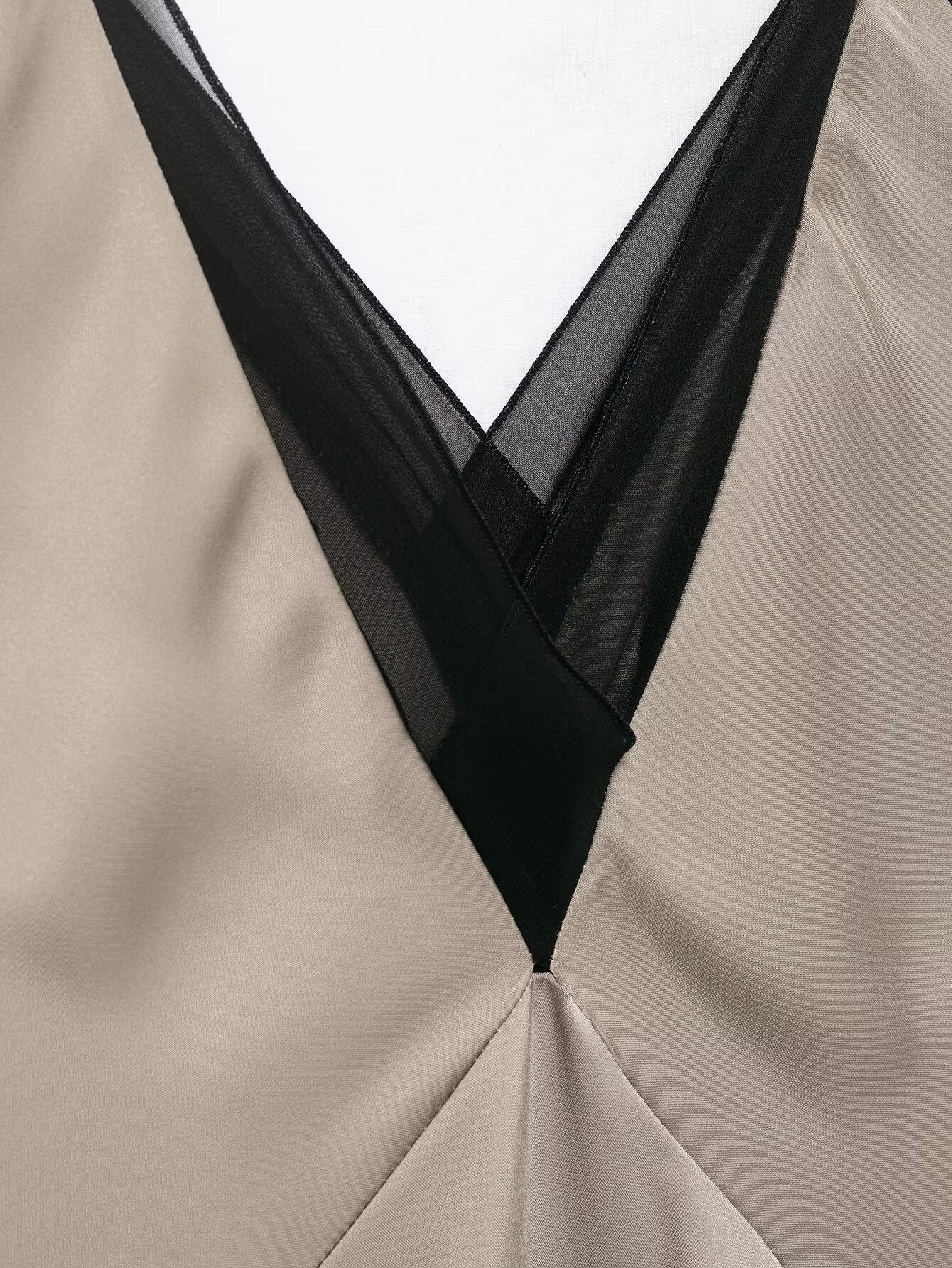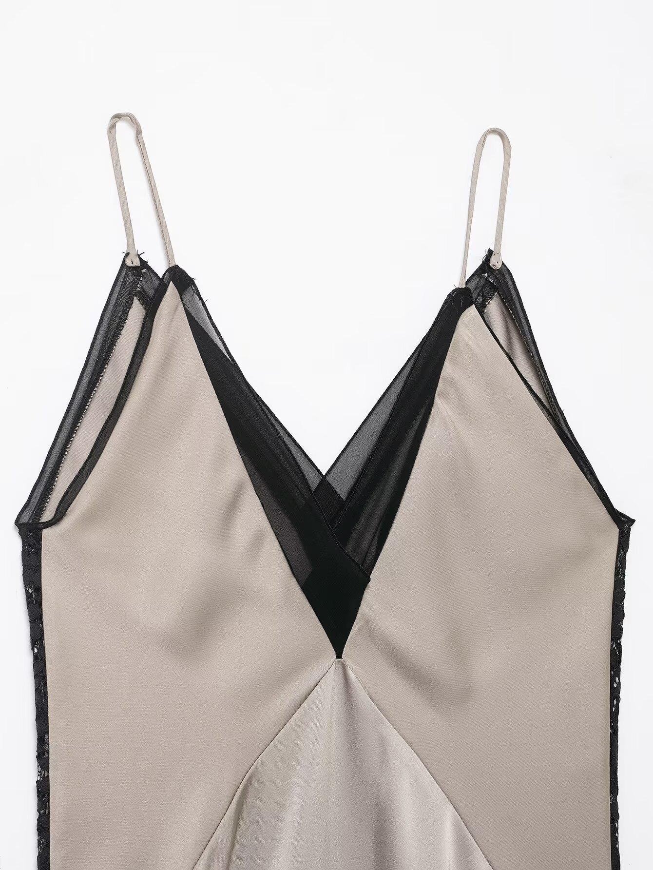 Graceful Satin Asymmetric V neck Strap Midi Dress