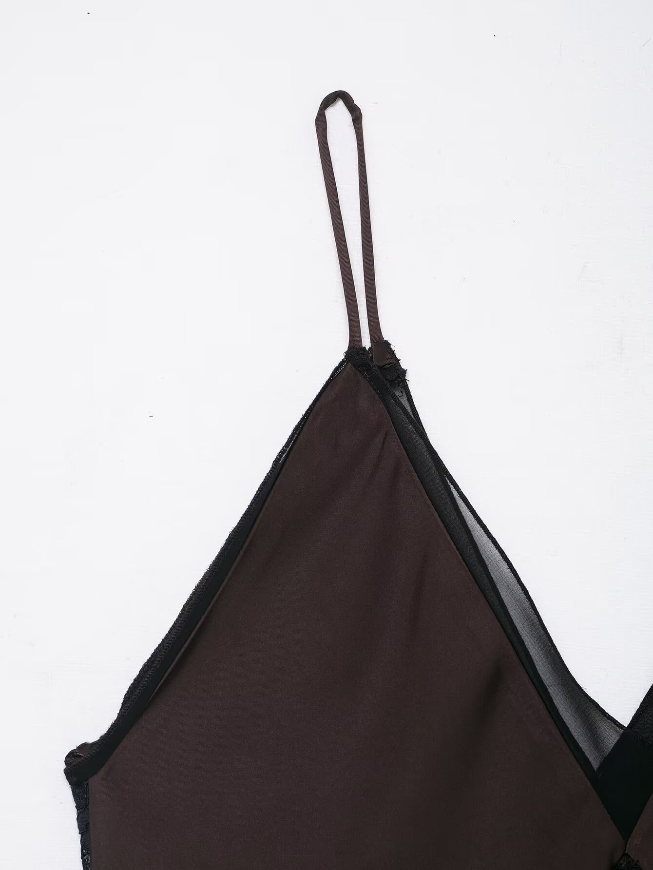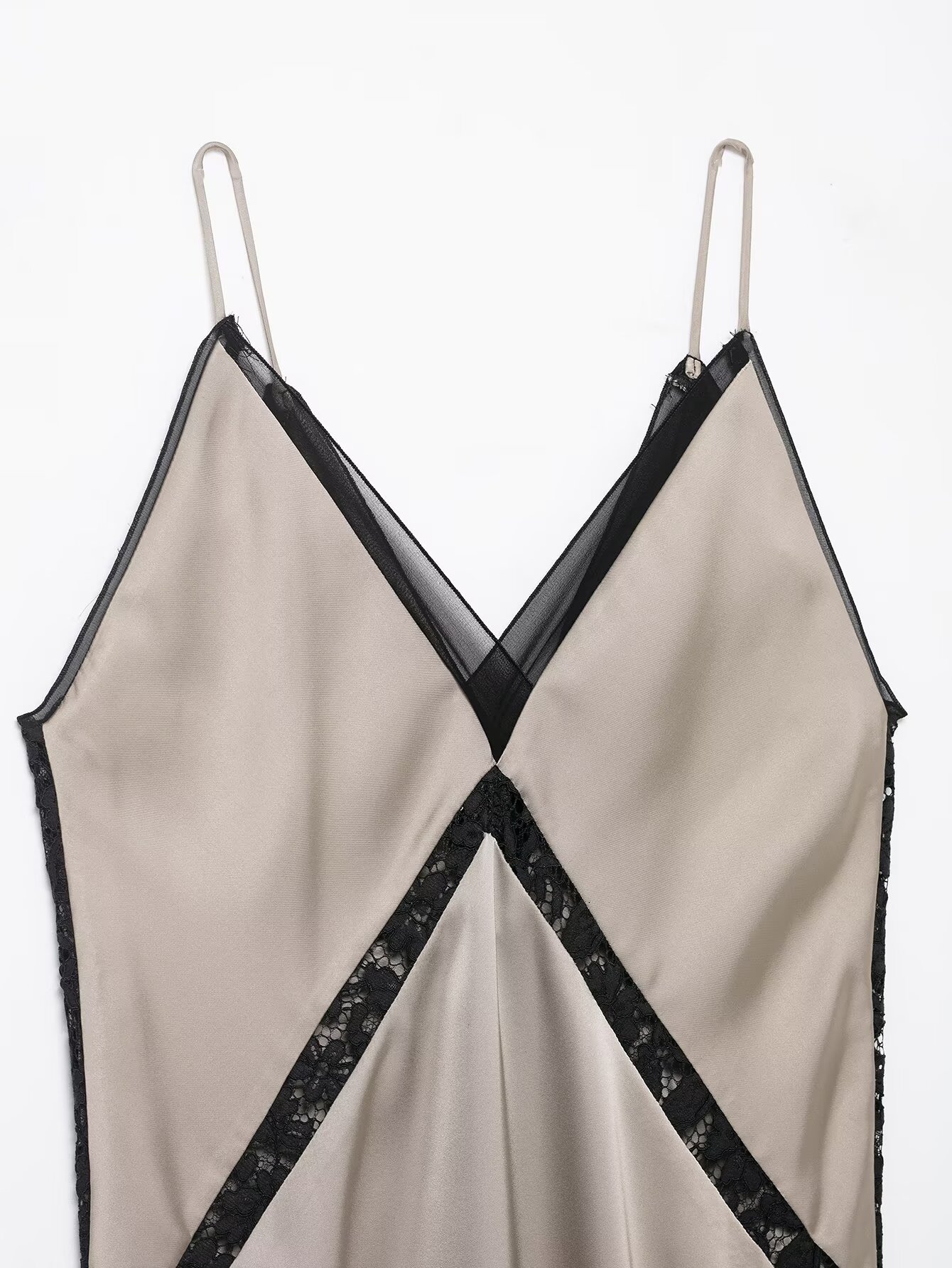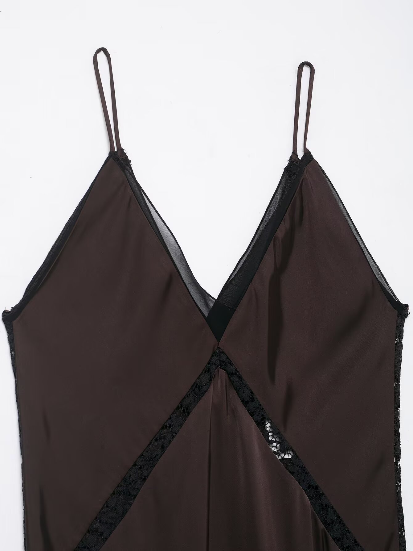 Graceful Satin Asymmetric V neck Strap Midi Dress