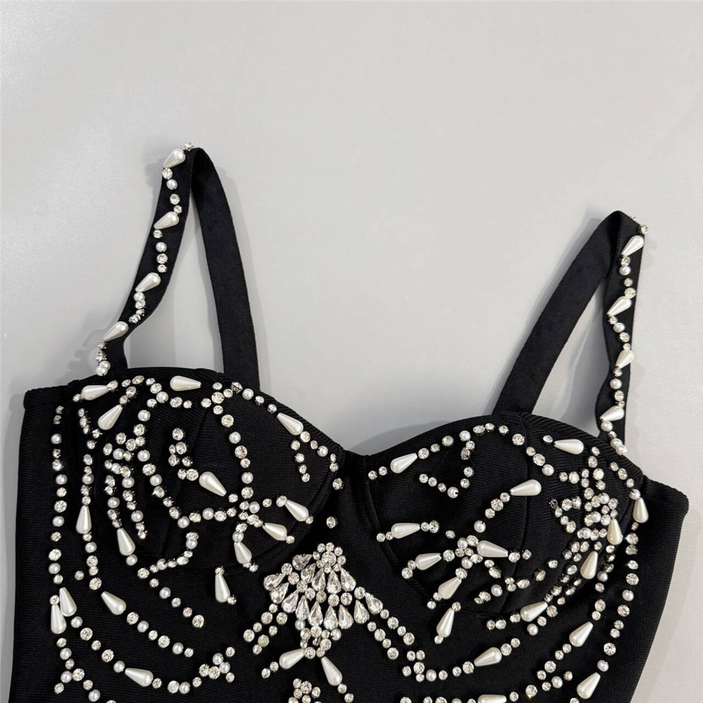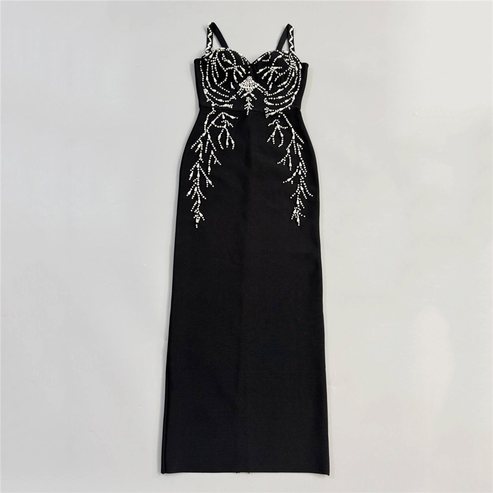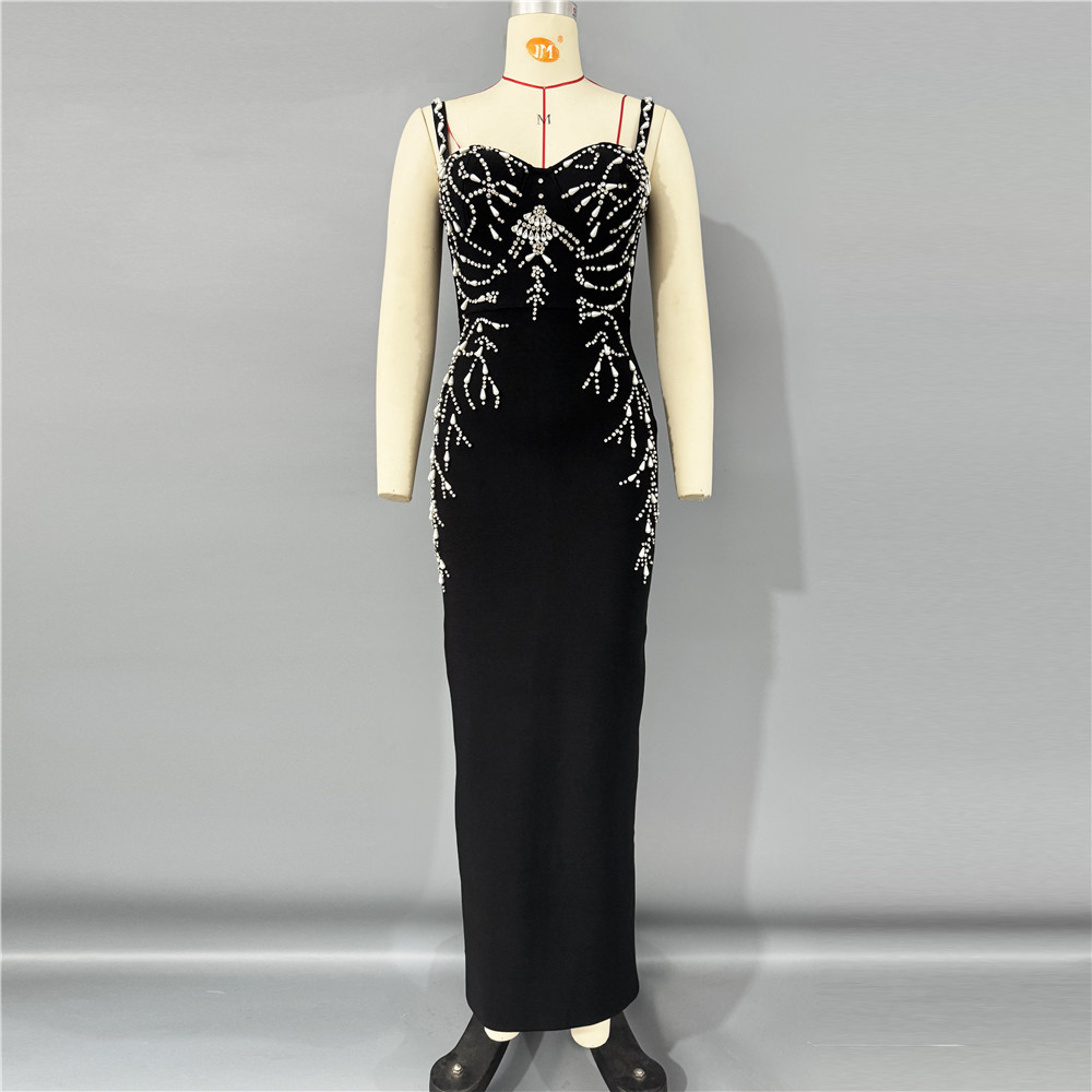 Heavy Industry Beads Diamond Strap Bandage One Piece Dress Dinner Party Party Evening Dress Maxi Dress