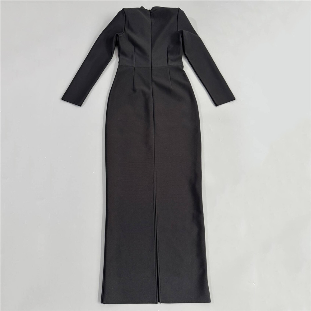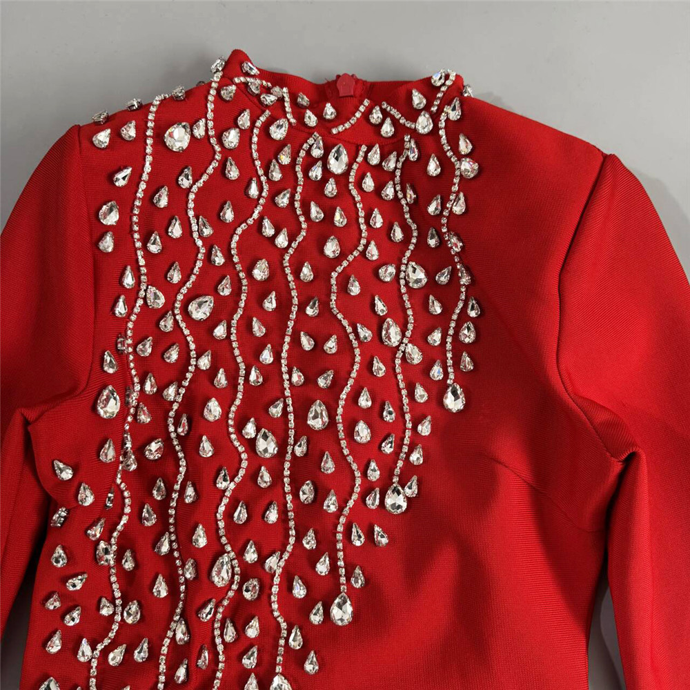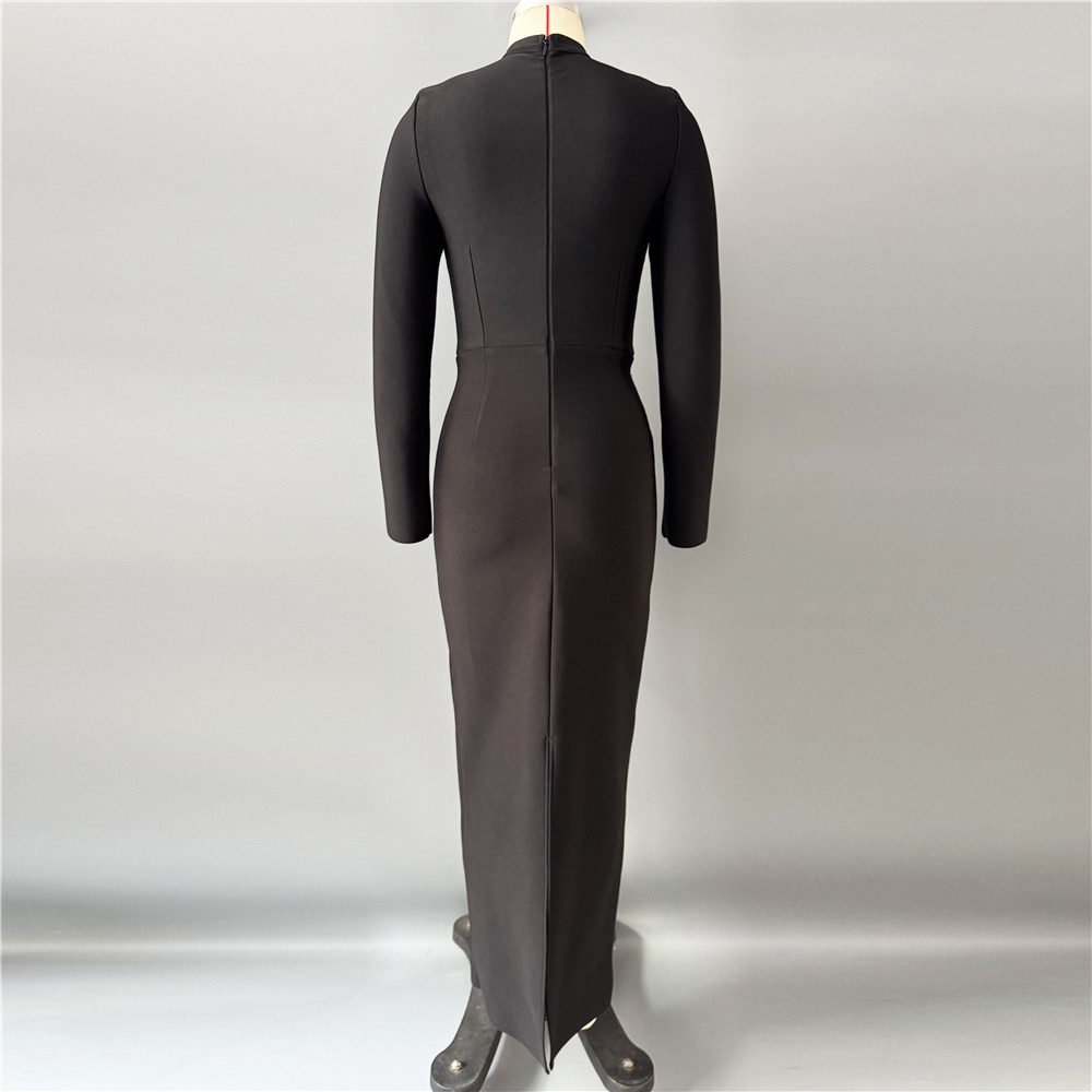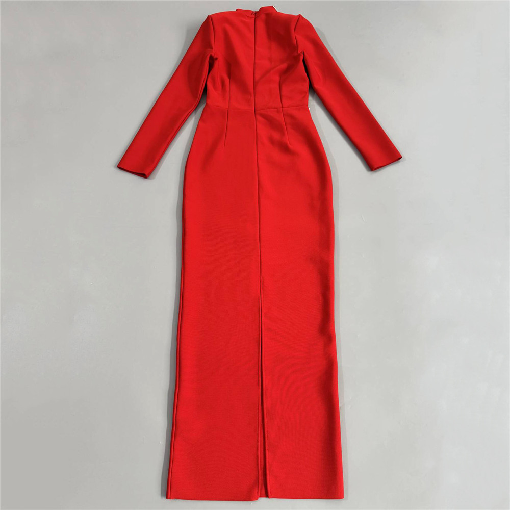Heavy Industry Manual Rhinestone Long Sleeve Bandage One Piece Dress Socialite Elegant Dress the Dinner Party Maxi Dress
