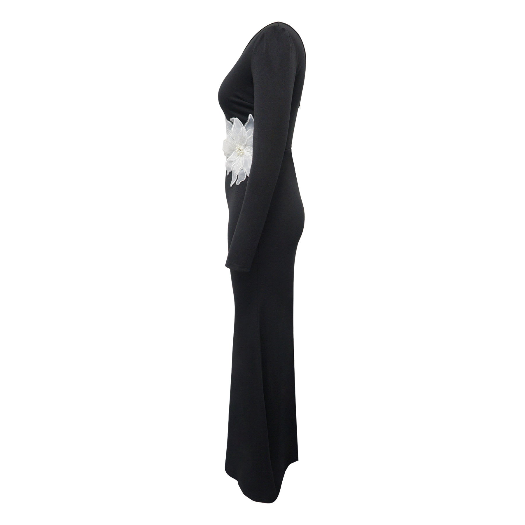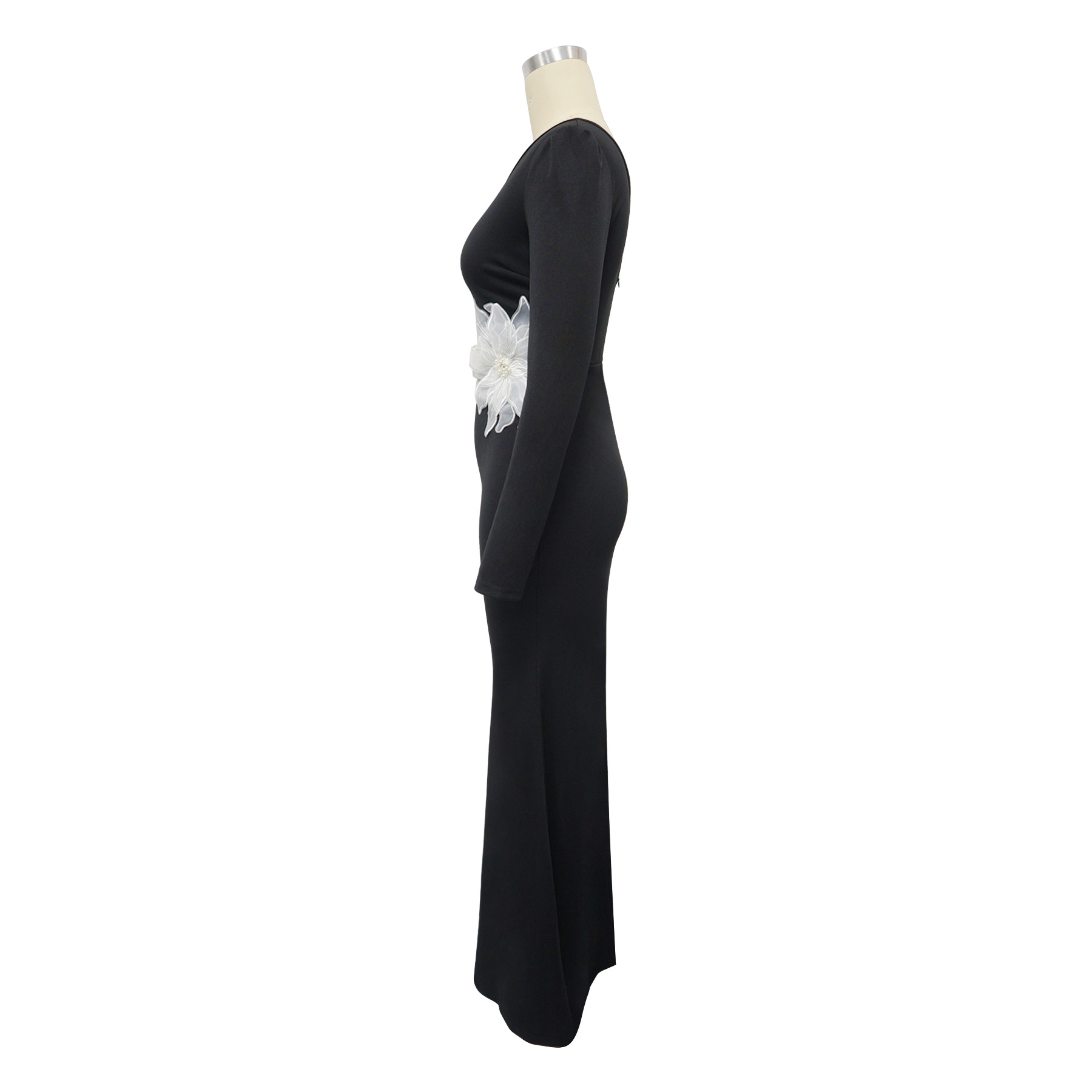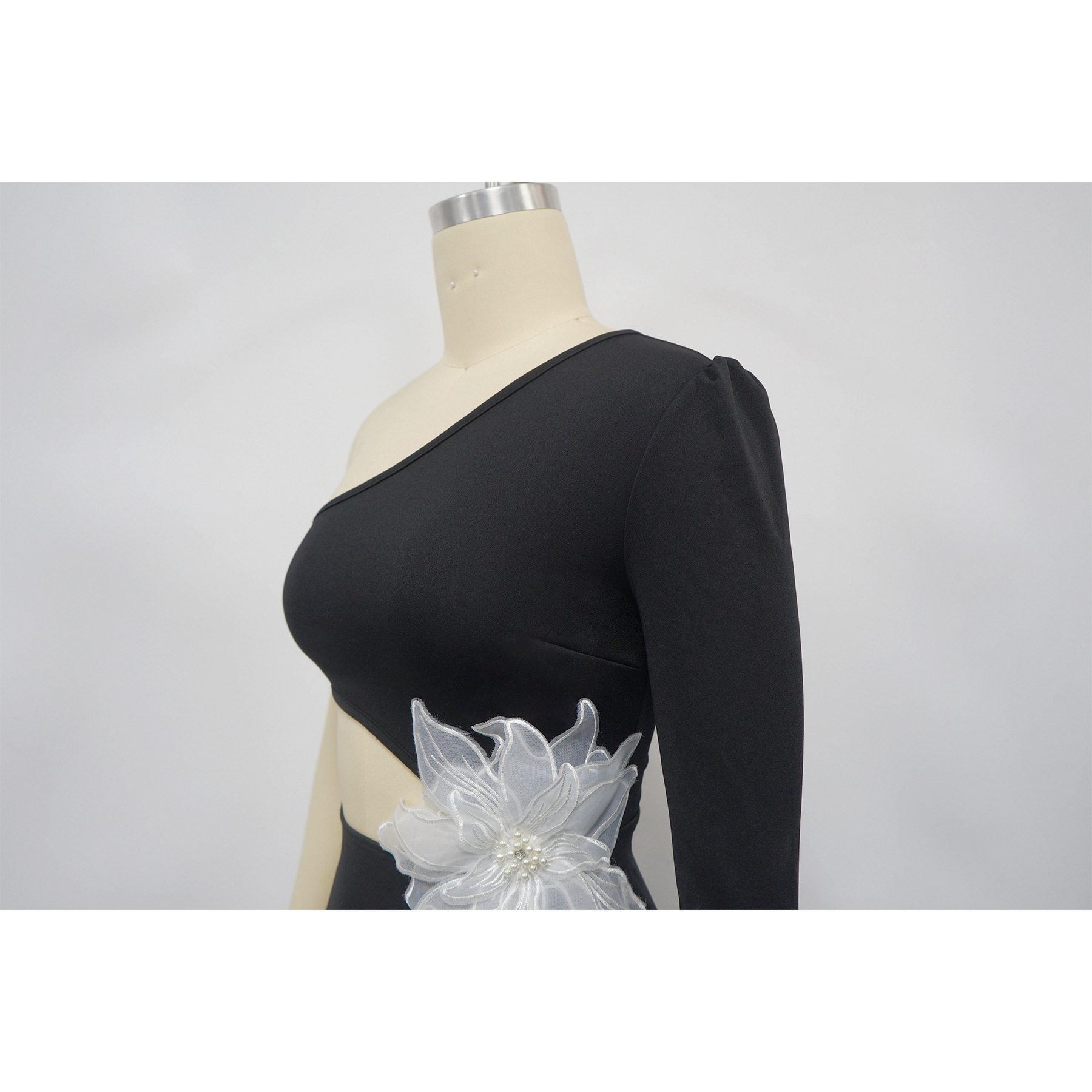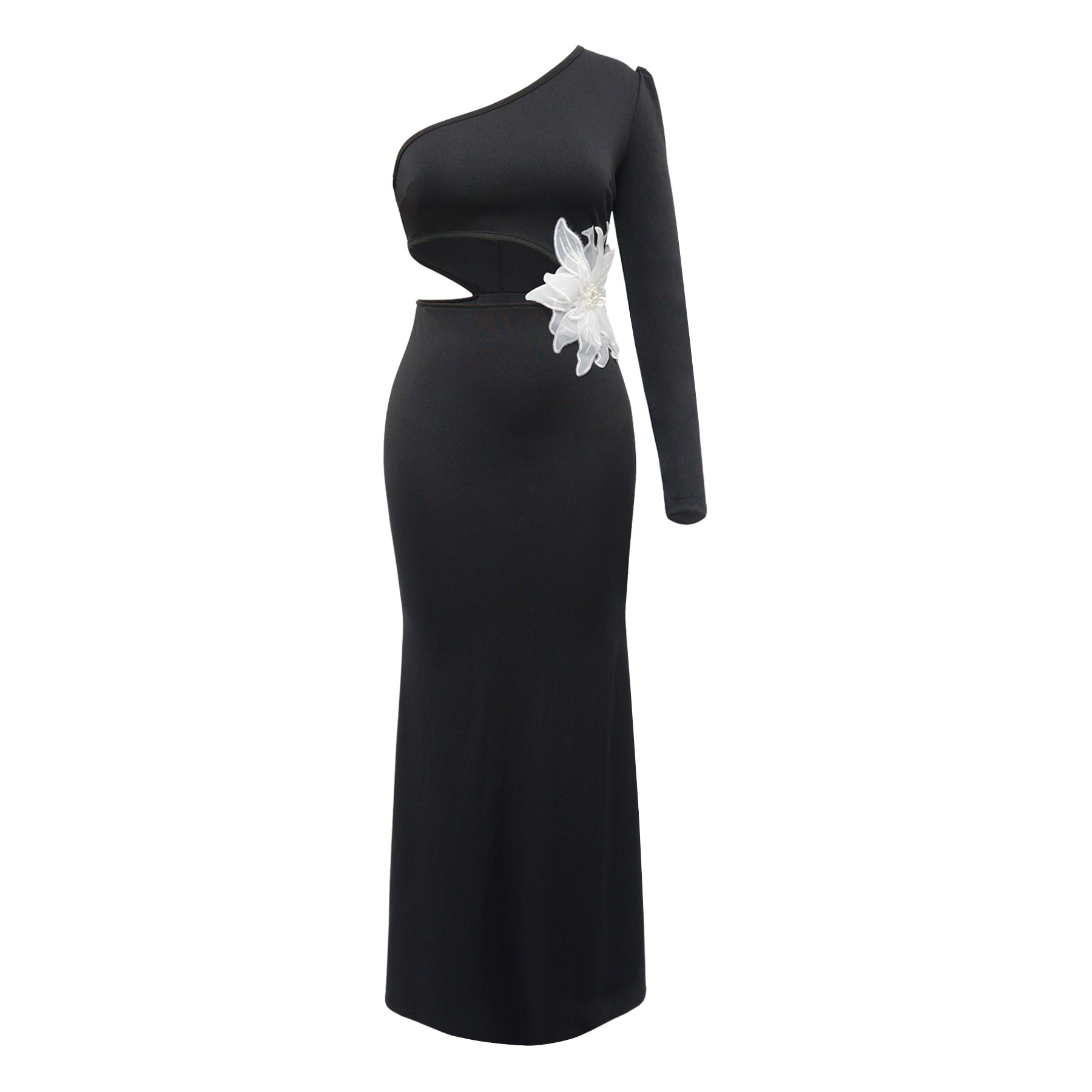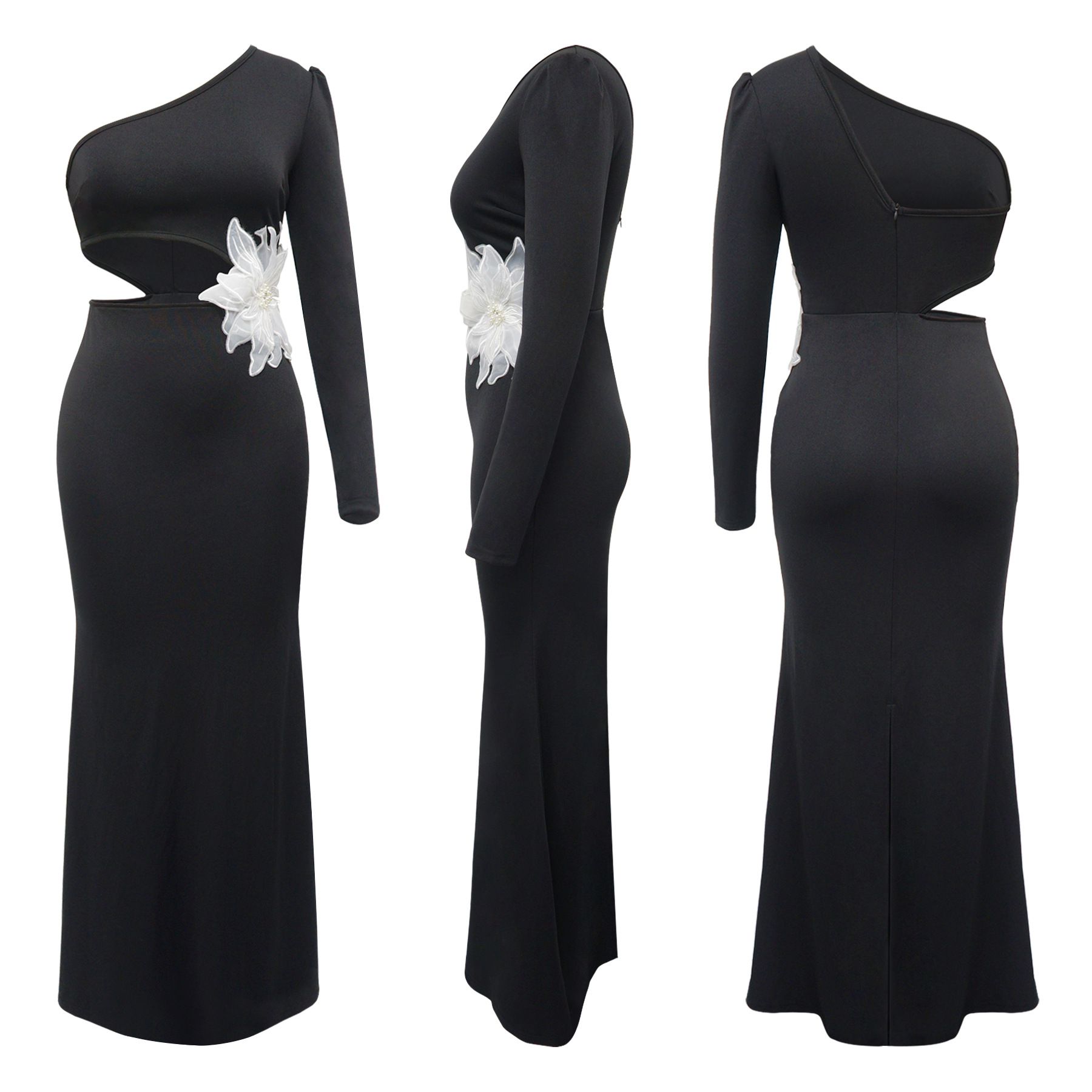 One Shoulder Long Sleeve Sexy Dress Floral Beaded Evening Dress