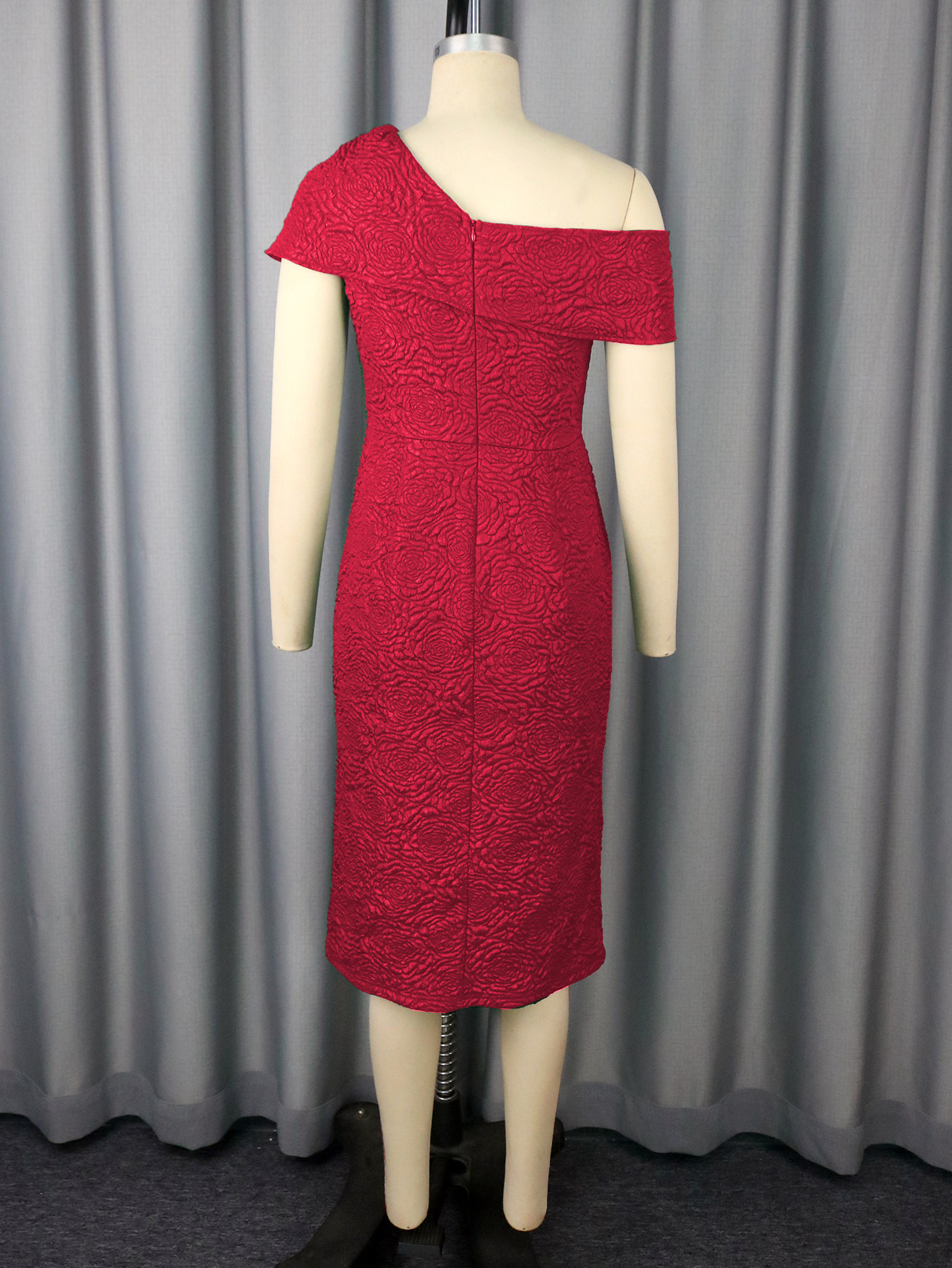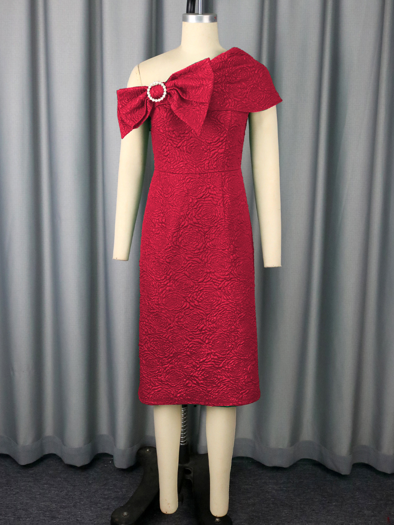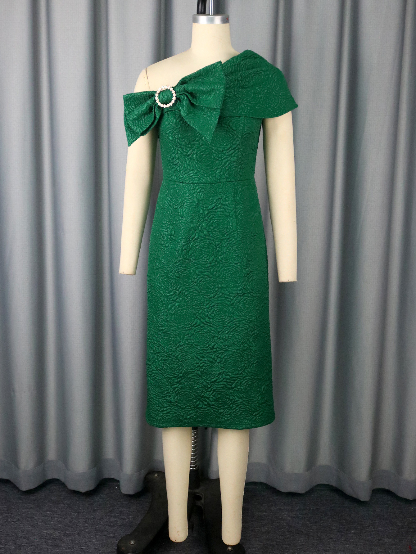 One Shoulder Sexy Bow Short Sleeved Jacquard Dress Party Elegant Retro Slim Fit Hip Dress