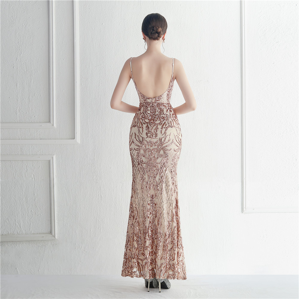Positioning Floral Sequin Sexy Strap Tube Top Nightclub Dress Dinner Star Evening Dress