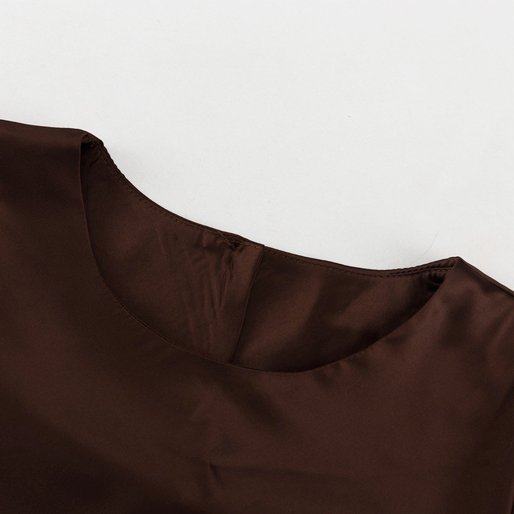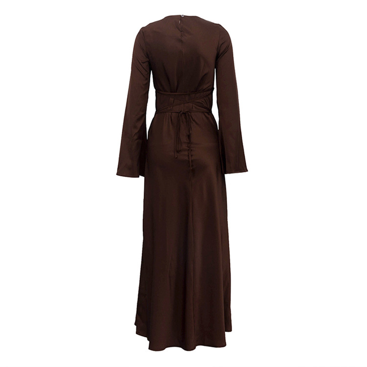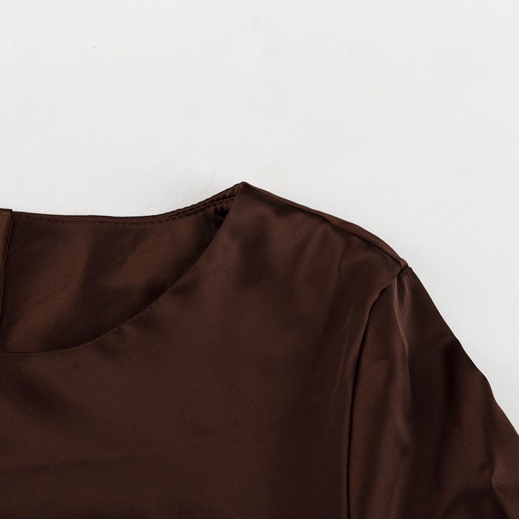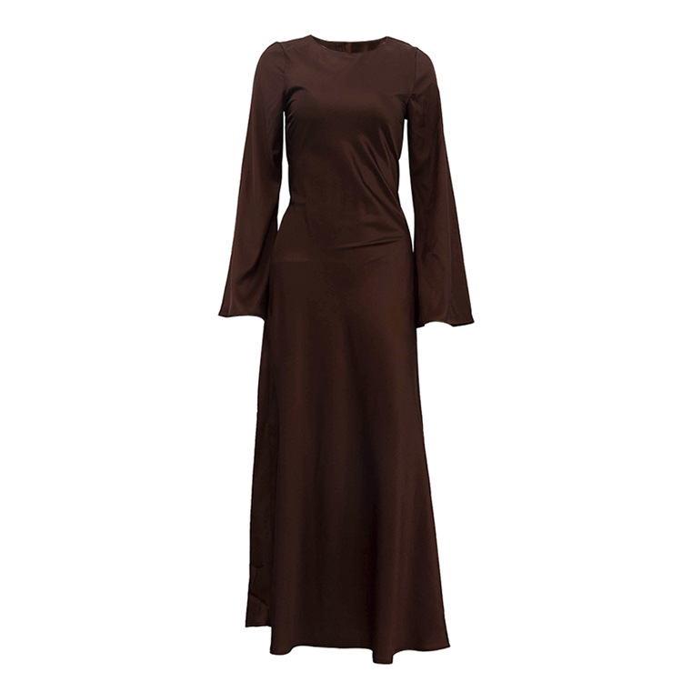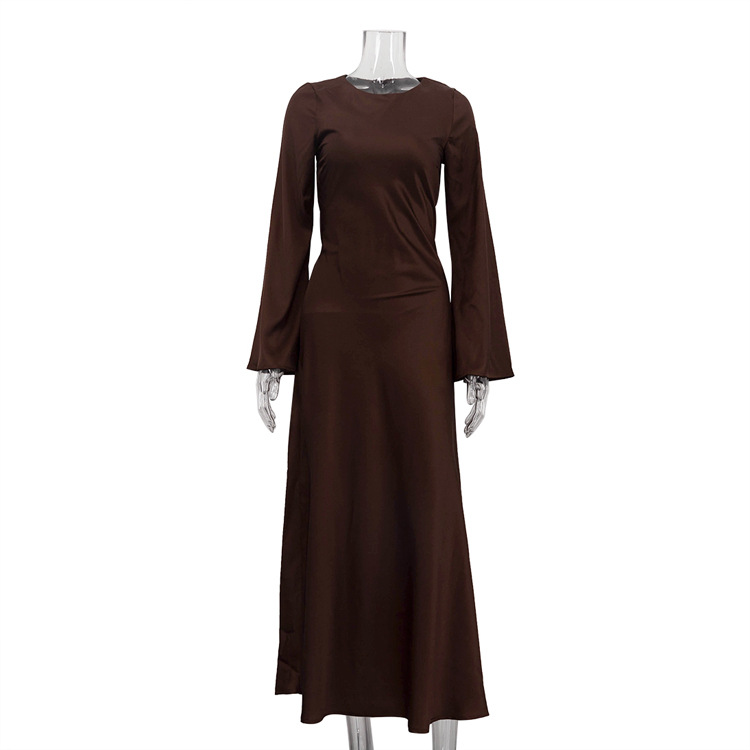Satin Round Neck Long Sleeved Dress Women Clothing Autumn Elegant Sheath Dress
