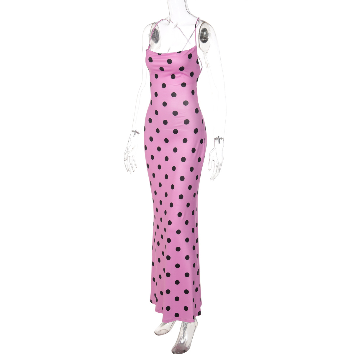 Sexy Backless Swing Collar Slim Fit Long Strap Polka Dot Dress Women
