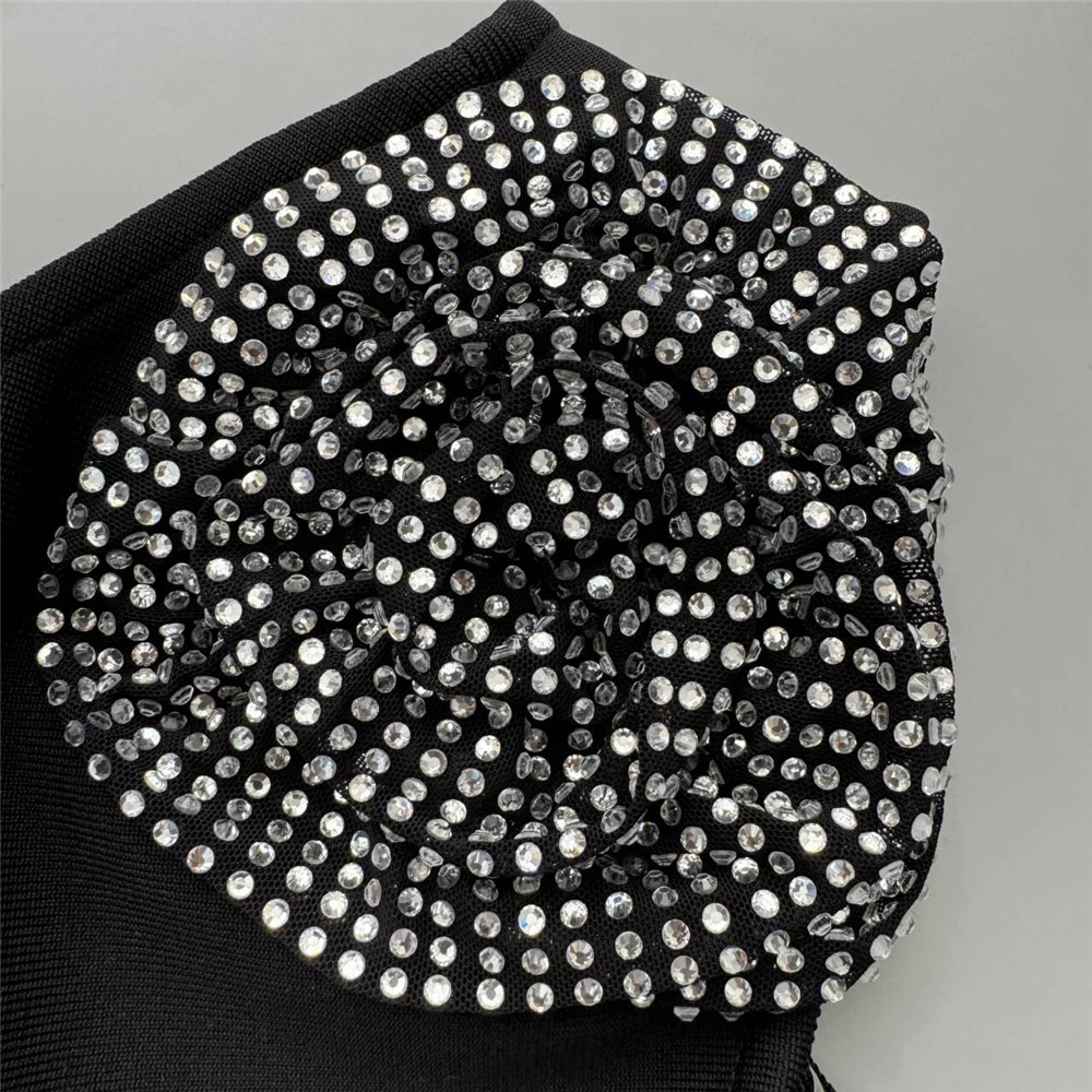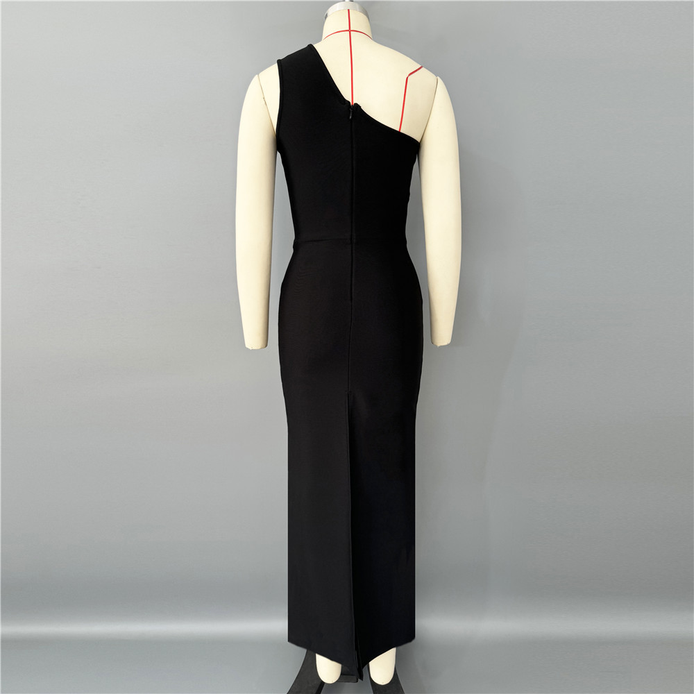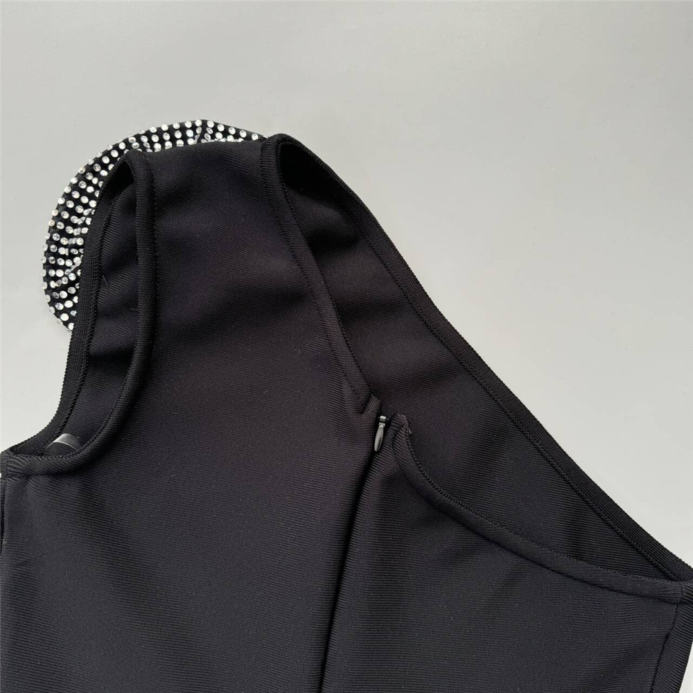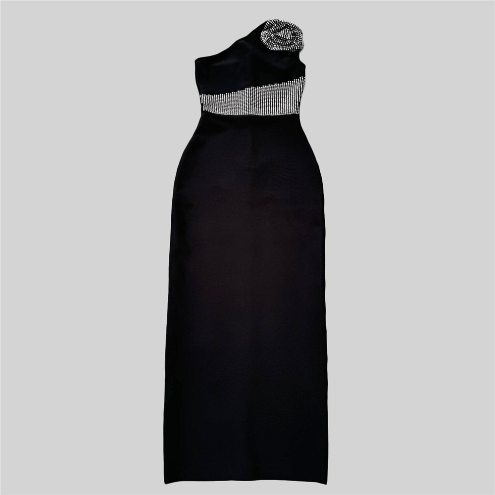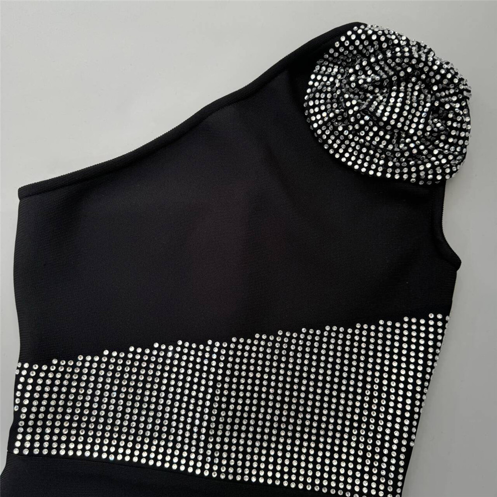 Sexy Diagonal Collar Sleeveless Rhinestone Floral Bandage One Piece Dress Party Cocktail Evening Dress