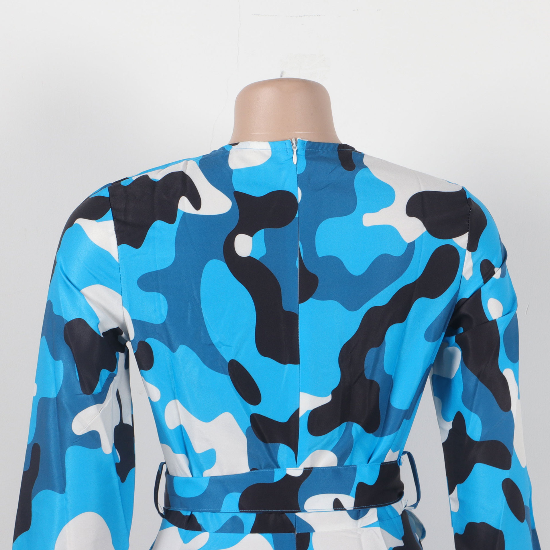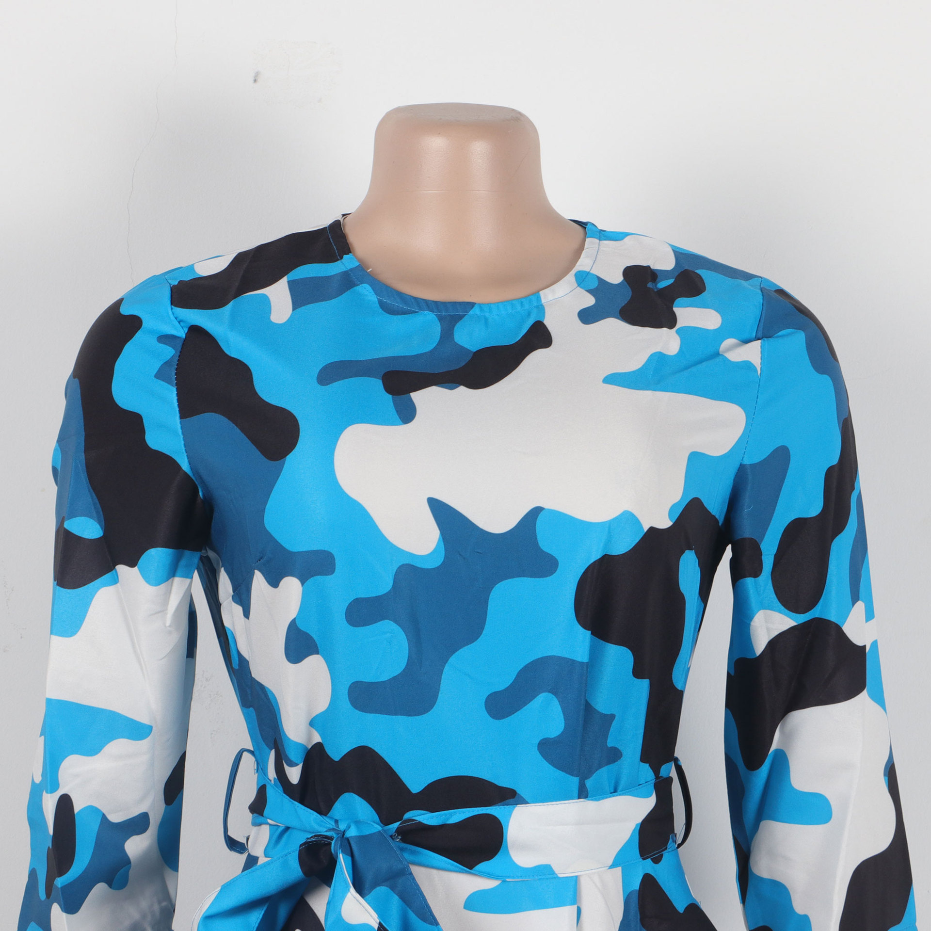 Sexy Slim Fit Camouflage Printed Large Waist Tight Lace up Dress