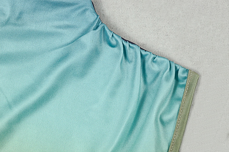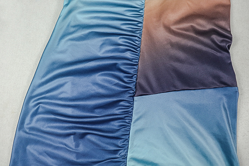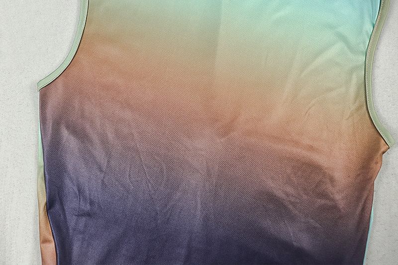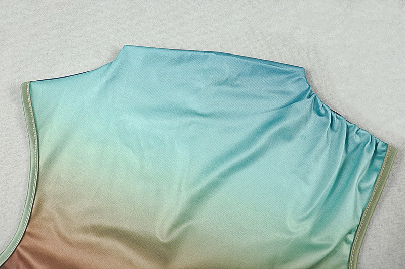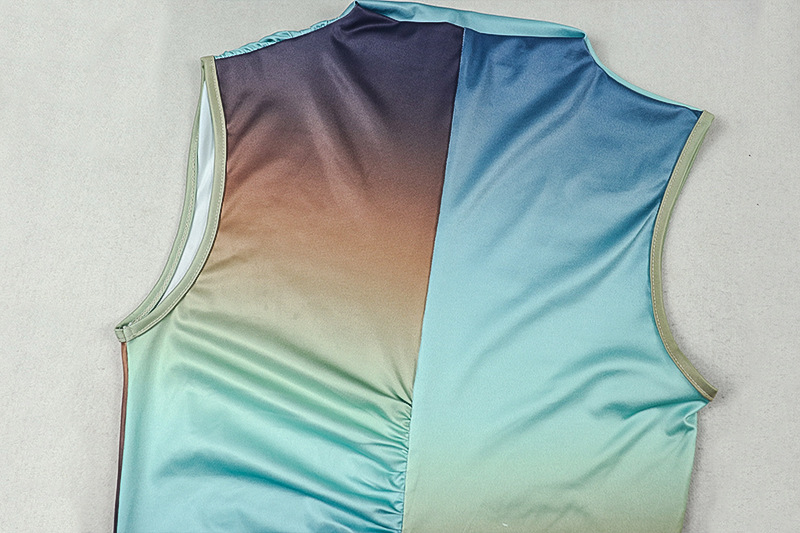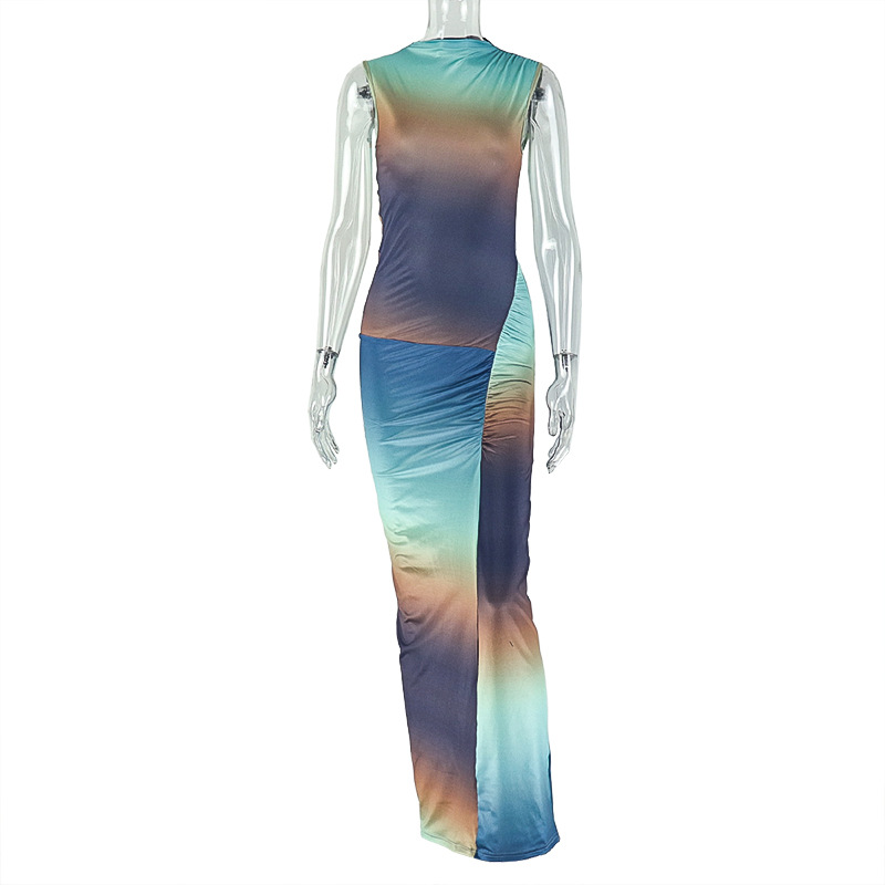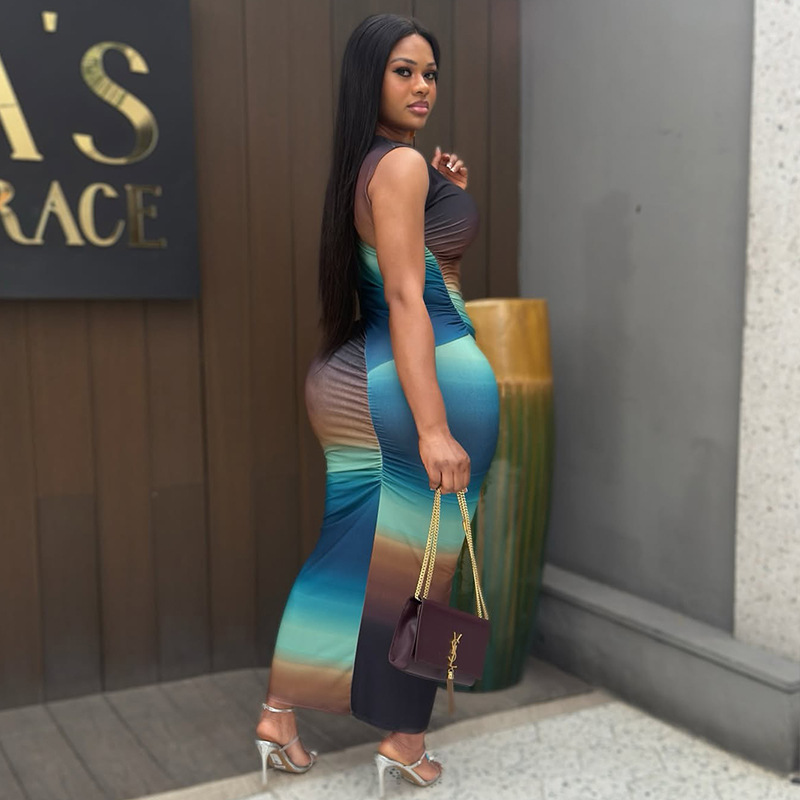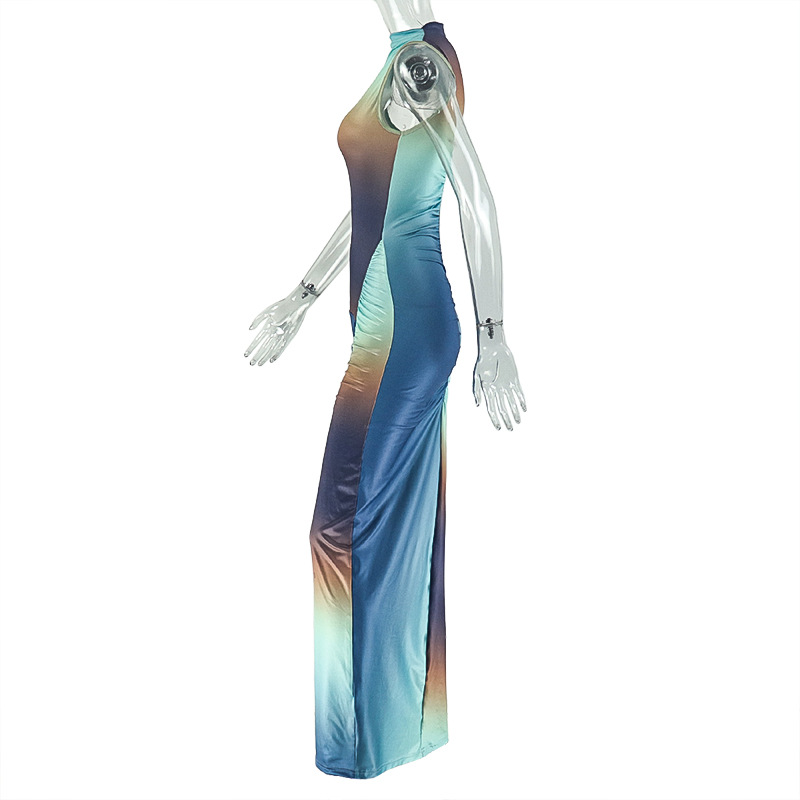 Sexy Slim Fit Fashionable Gradient Color Matching Hip Dress High Collar Sleeveless Pleated Maxi Dress Women Clothing