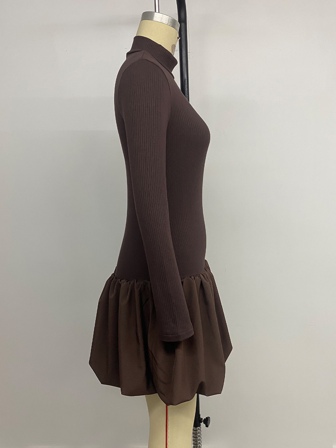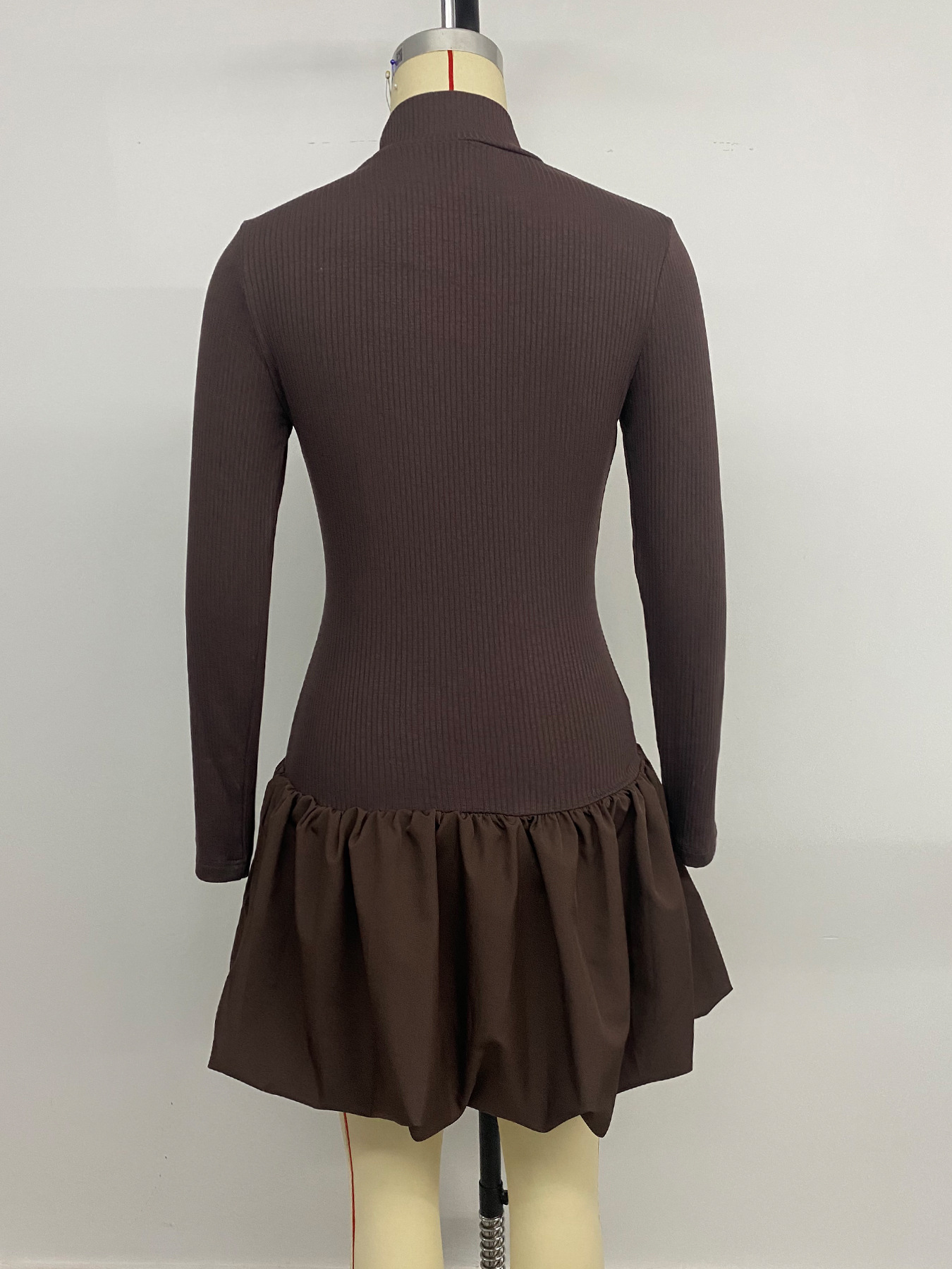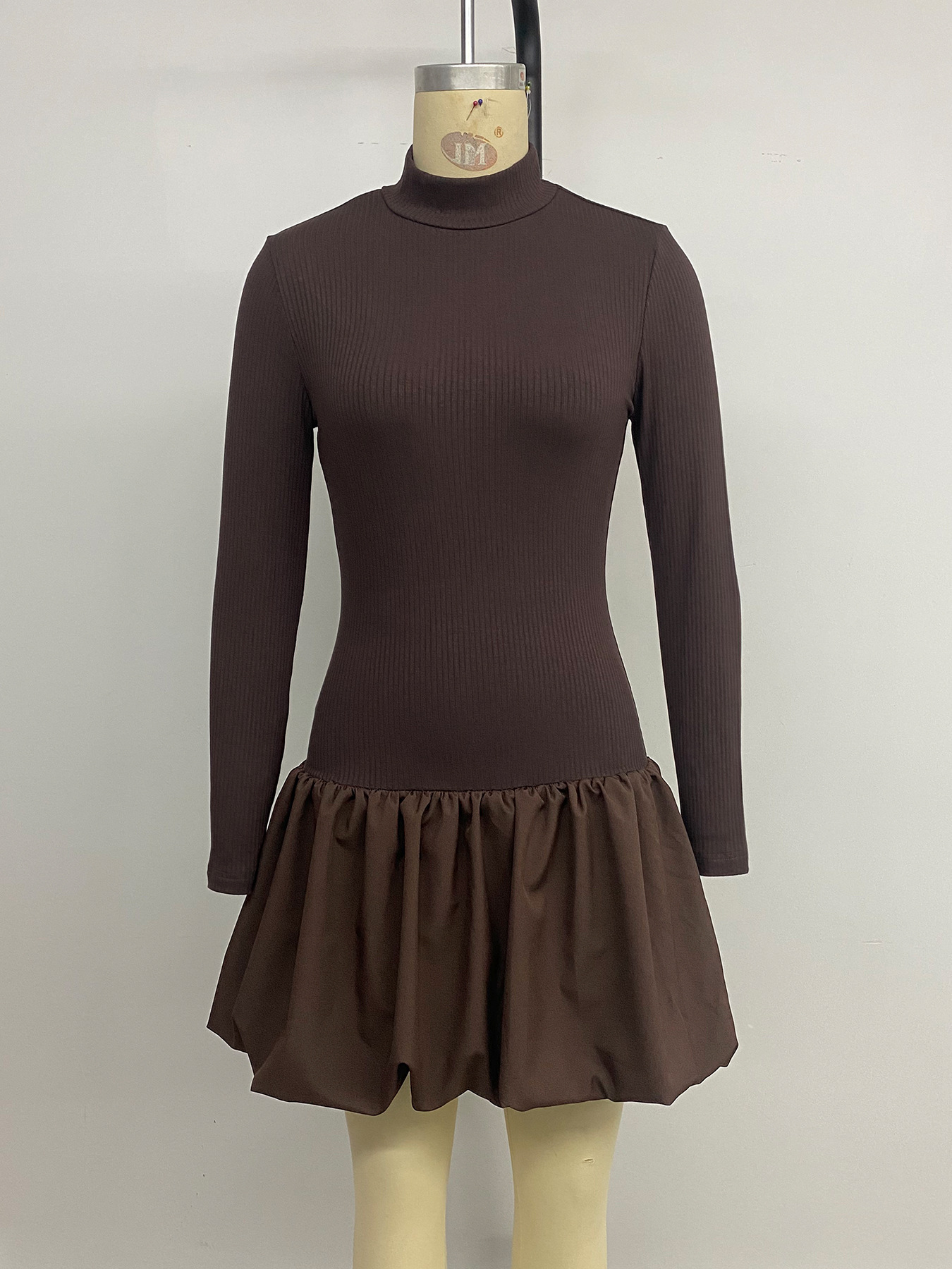 Slim Fit Pettiskirt Simple Elegant Basic Turtleneck Long Sleeve Solid Color Dress